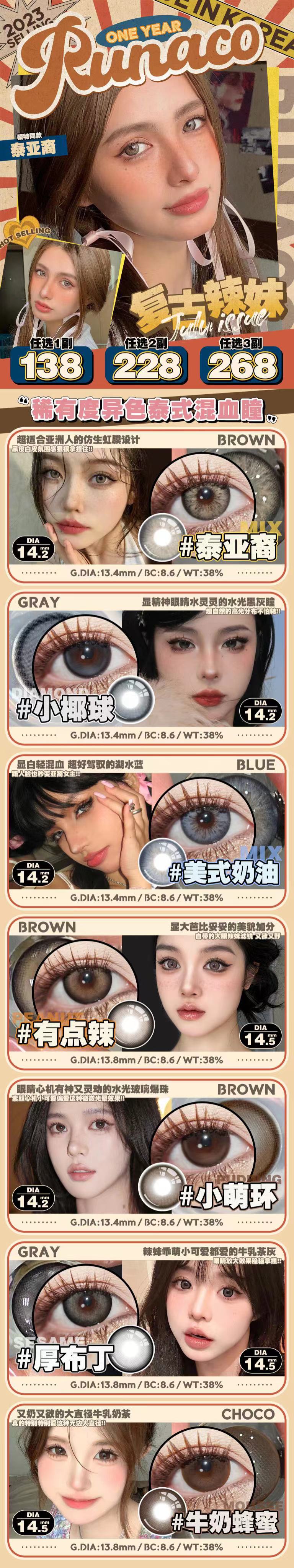 【常规-年抛活动】RuNaCo-14.5mm14.2mm14.0mm【年抛 度数0-800度 无525/575】