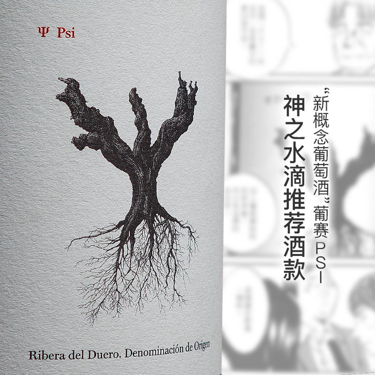 《神之水滴》 (即《神之雫》,雫nǎ) 这部日本漫画在亚洲葡萄酒行业颇具影响力,直接或间接地让其中出现的酒款水涨船高。漫画中这样描述Psi:这种复杂而诱人的香气,想必是树龄达到某种年岁的葡萄吧! 这是一款能够喝出来的老藤。不同于西班牙酒给人的热情印象,此酒喝下去却让人感到一种宁静,这是在古典与现代之间的夹缝流淌的巨大河流。