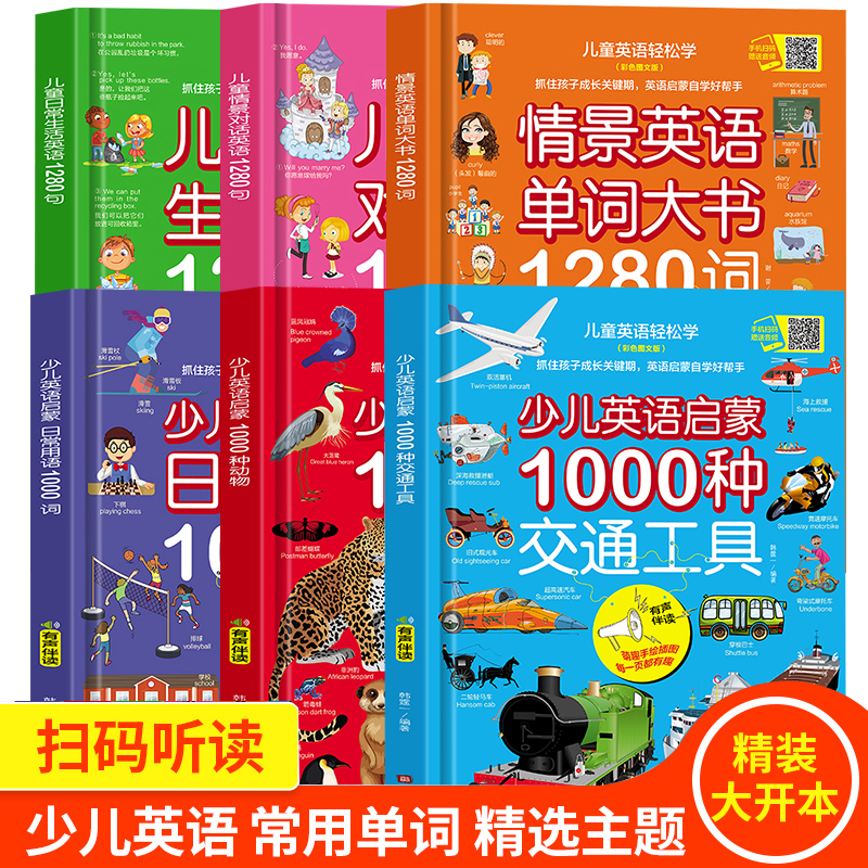 【有声阅读】全6册儿童情景英语单词大书英语绘本分级阅读自然拼读教材有声书彩色儿童英语轻松读英语入门自然拼读学零基础自学书