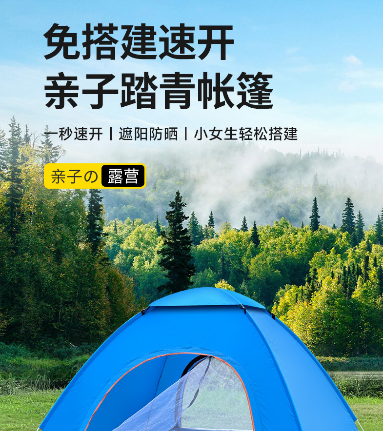 帐篷户外3-4人全自动账蓬 2人单双折叠野外露营便携式帐篷