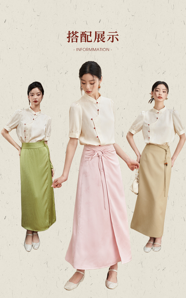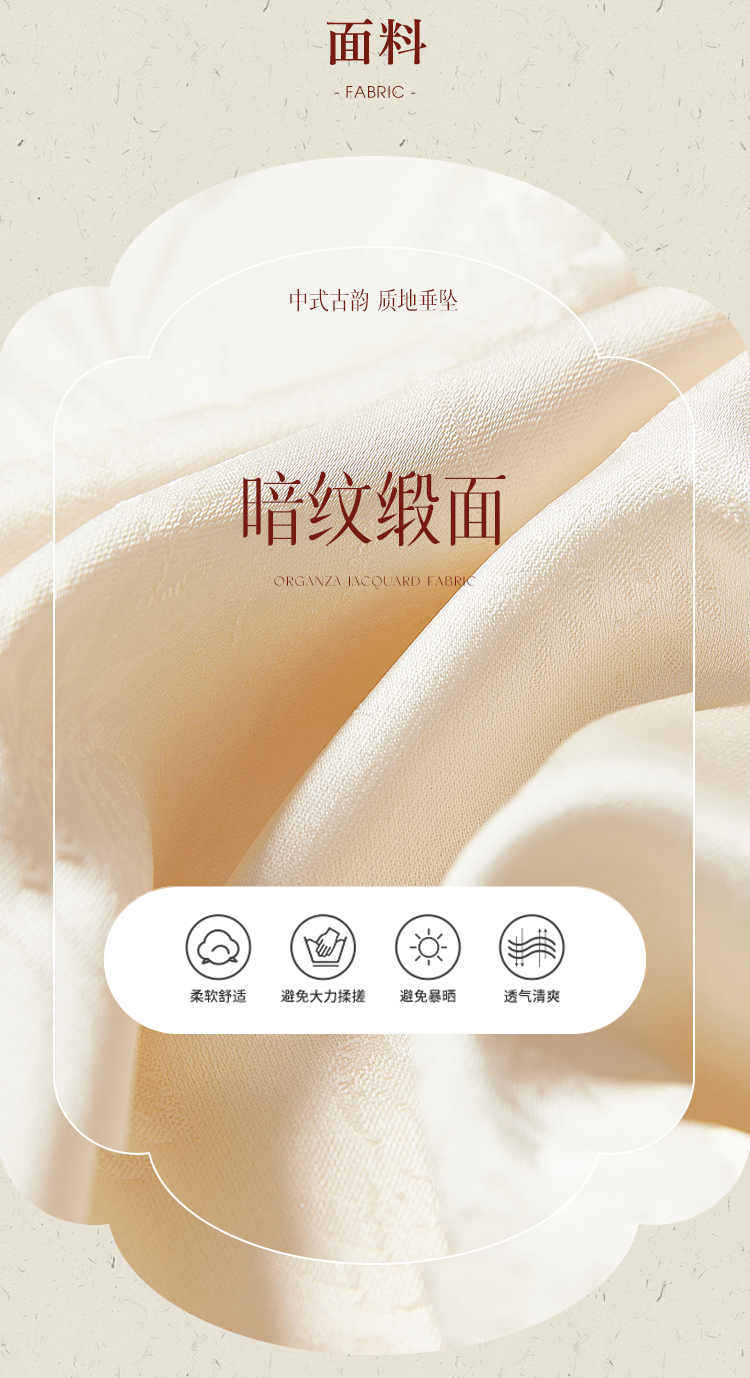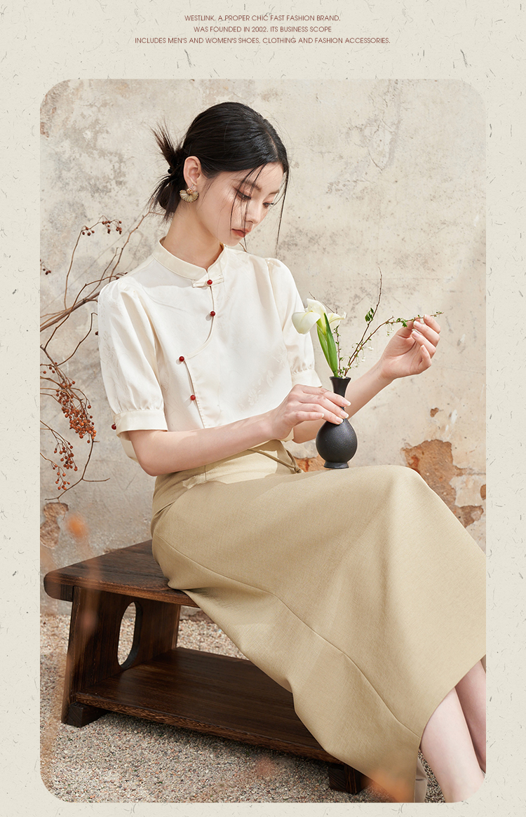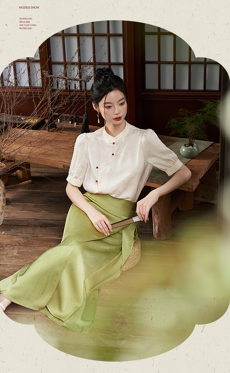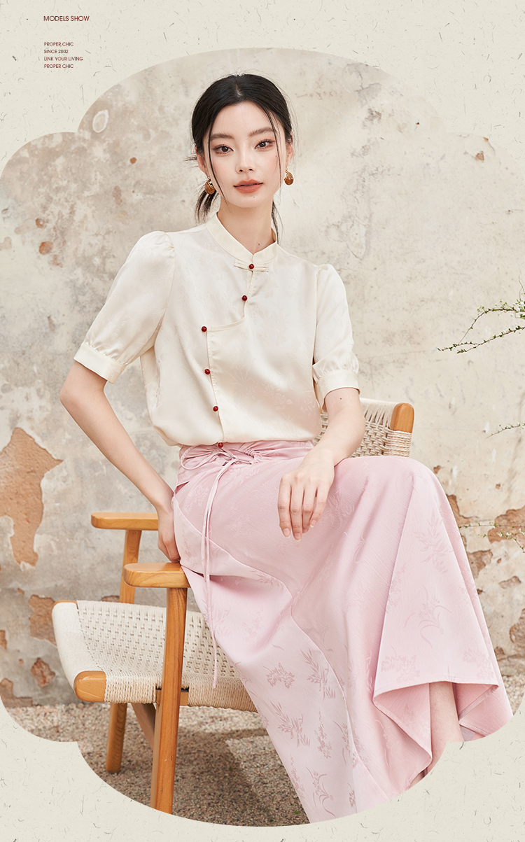 暗纹缎面新中式小立领吊珠盘扣衬衫女春夏季古韵端庄衬衣V1140881