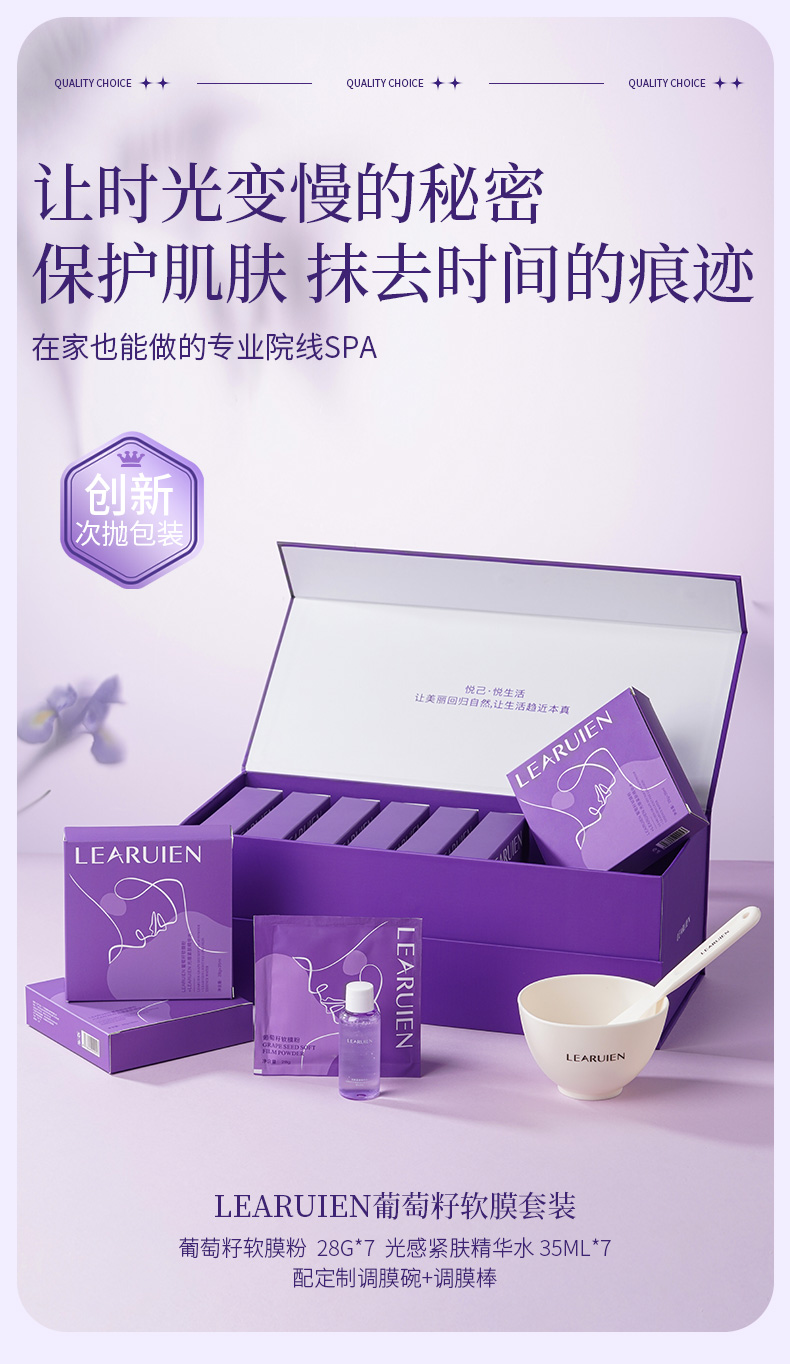 LEARUIEN黎芮恩葡萄籽软膜粉+光感紧肤精华水 全套工具