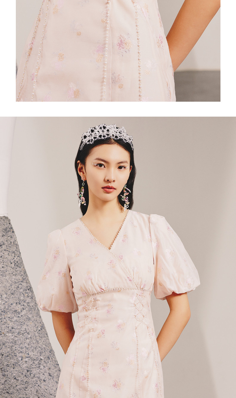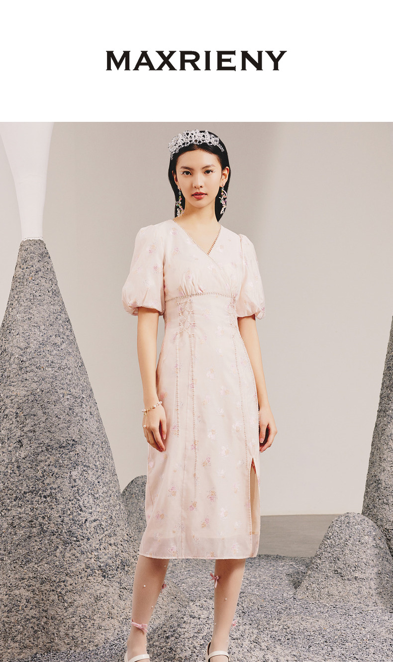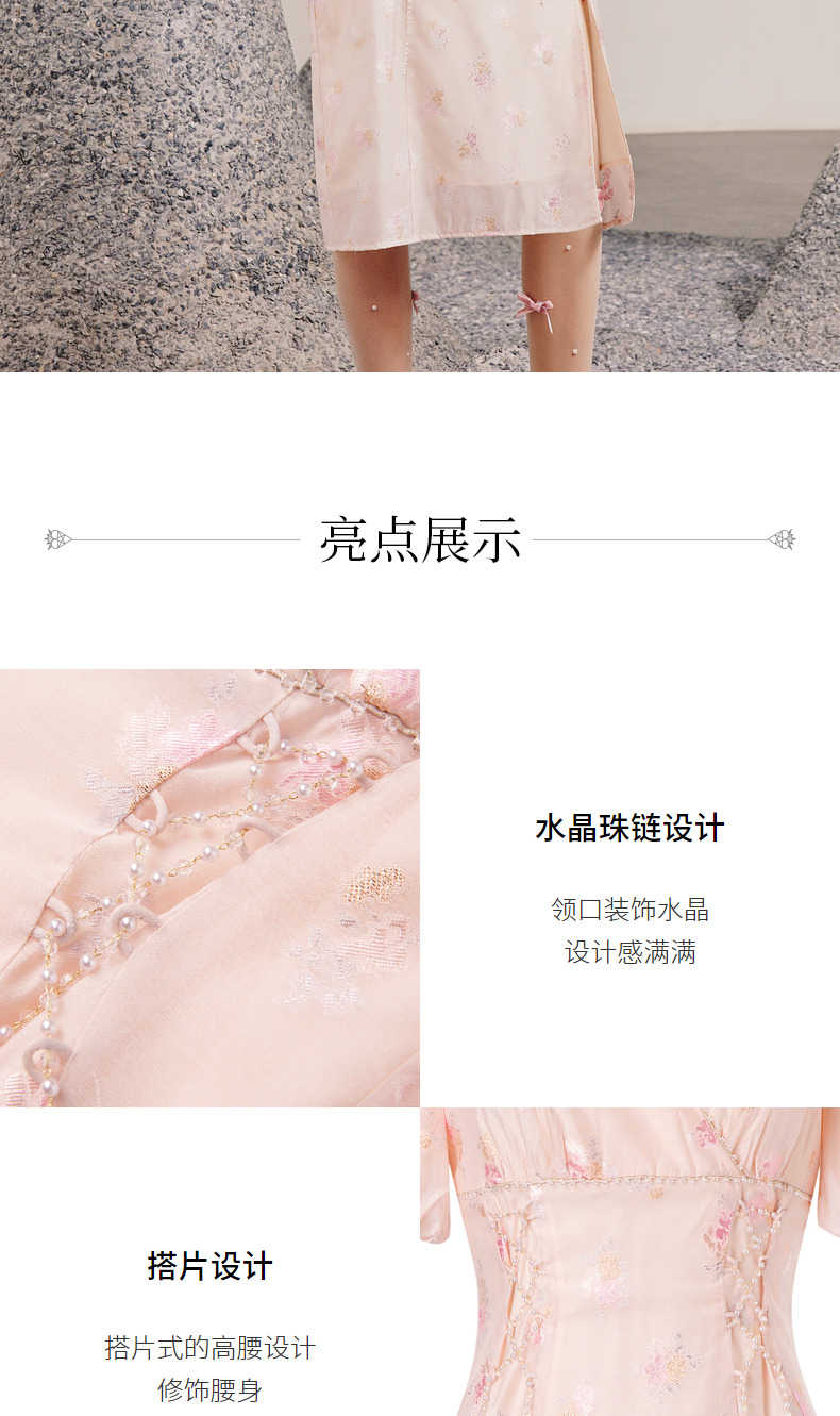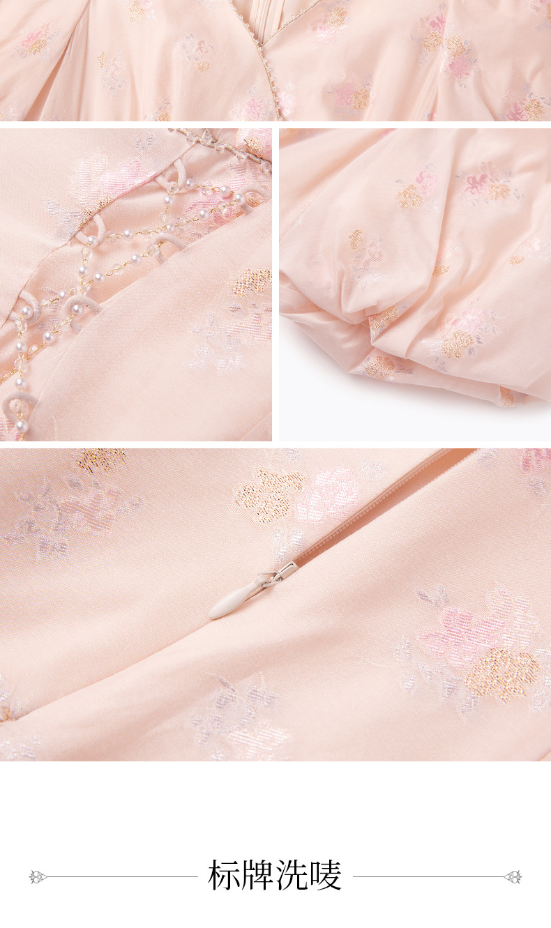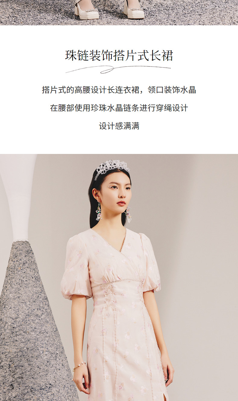 玛克门店发货:MAXRIENY春日温柔感珠链搭片连衣裙(货号:MC88DR077)