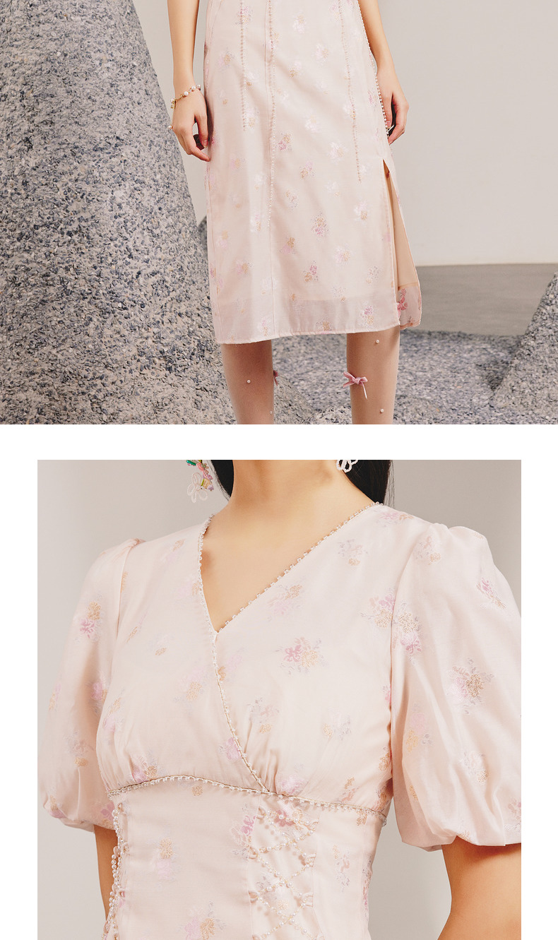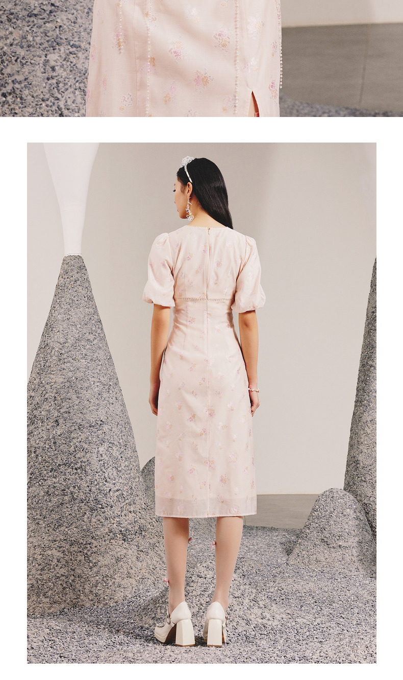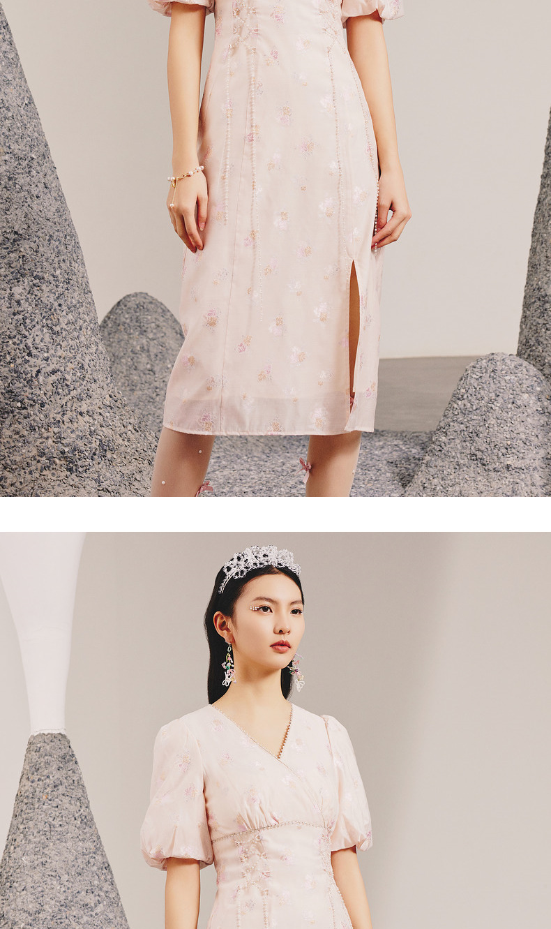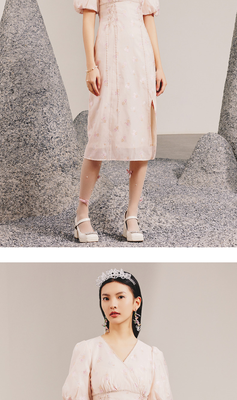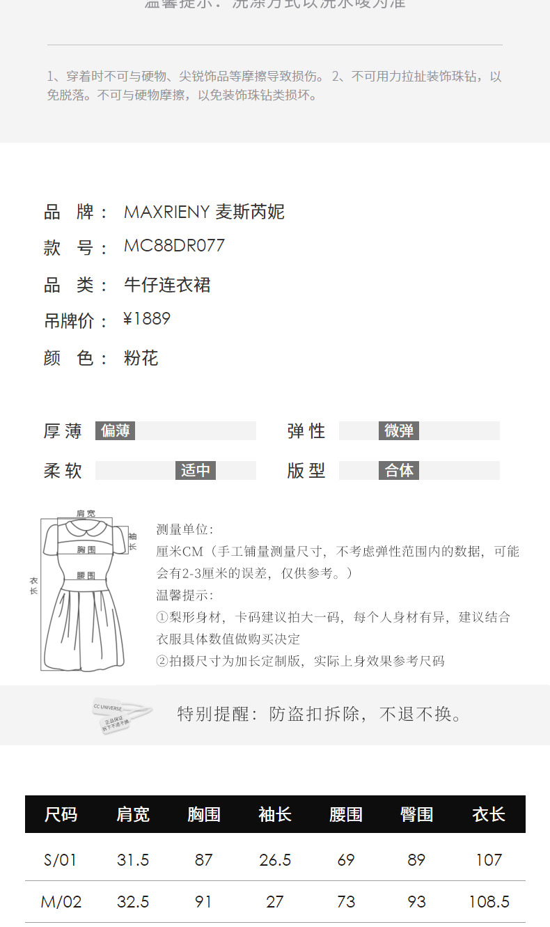 玛克门店发货:MAXRIENY春日温柔感珠链搭片连衣裙(货号:MC88DR077)