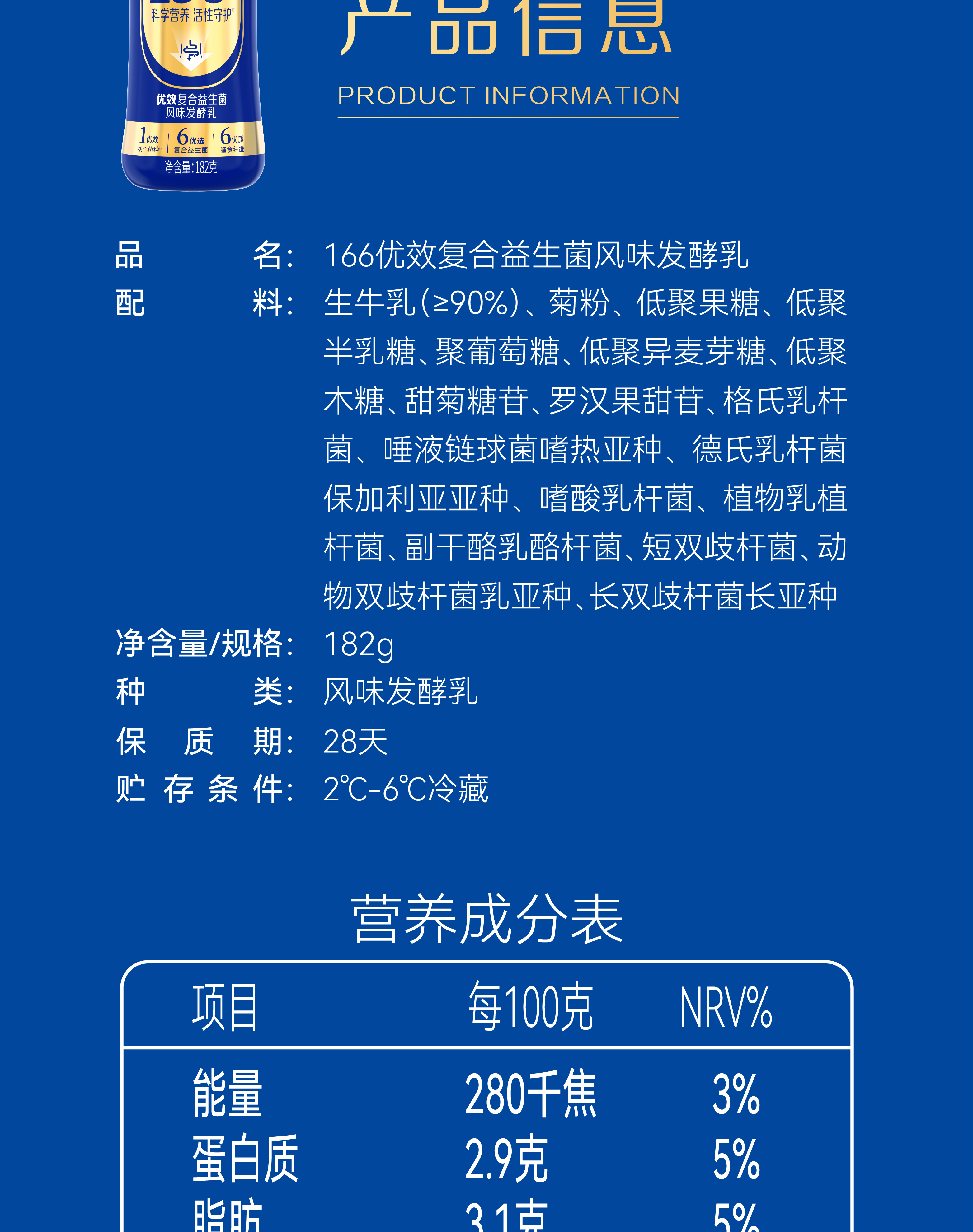 【自提-低温】三元166优效复合益生菌风味发酵乳182g