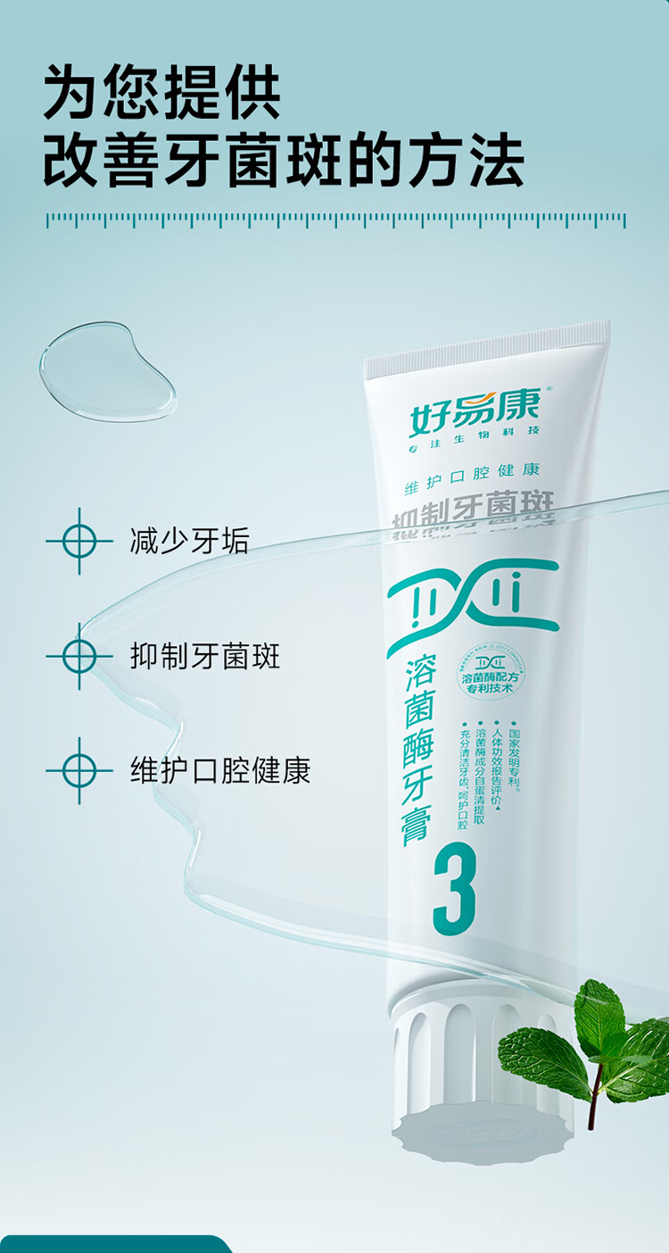 好易康 抑制牙菌斑溶菌酶牙膏(3号)120g