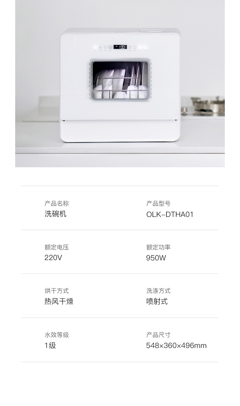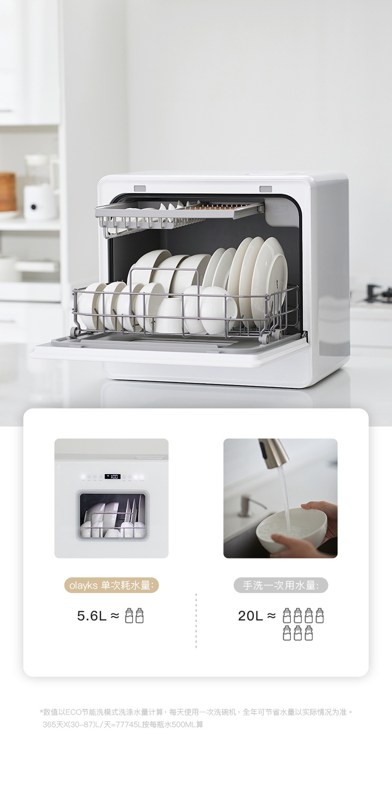 olayks立时欧莱克洗碗机52L全自动家用台式智能消毒热烘干免安装 心选到家