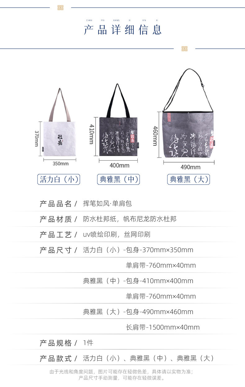 【售完无补】西安碑林博物馆【单肩托特包大容量创意杜邦纸包防水包】生日礼物