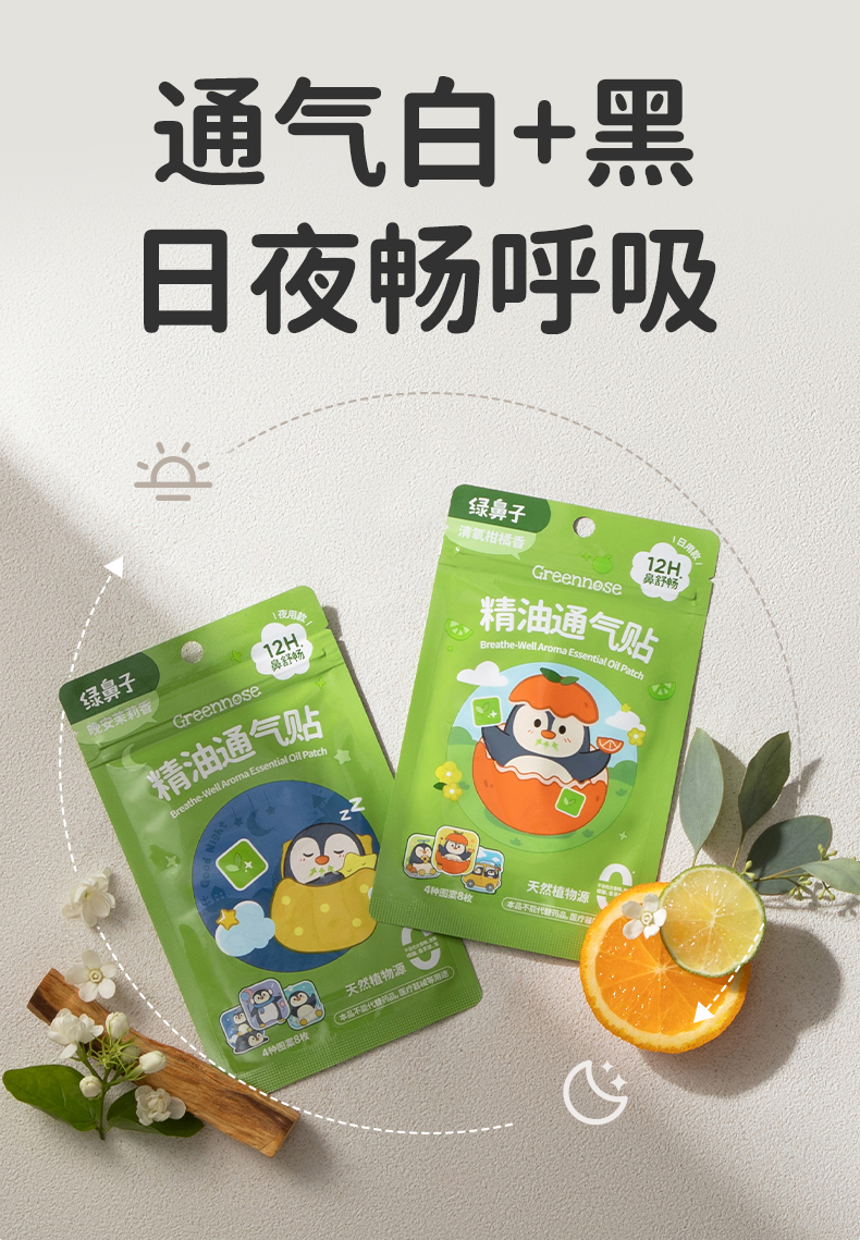 绿鼻子儿童通鼻贴宝宝植物精油缓解婴儿鼻塞小儿鼻通贴成人鼻舒贴