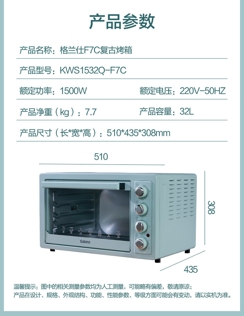 Galanz/格兰仕 KWS1532Q-F7C复古家用电烤箱上下独立控温旋钮F7C