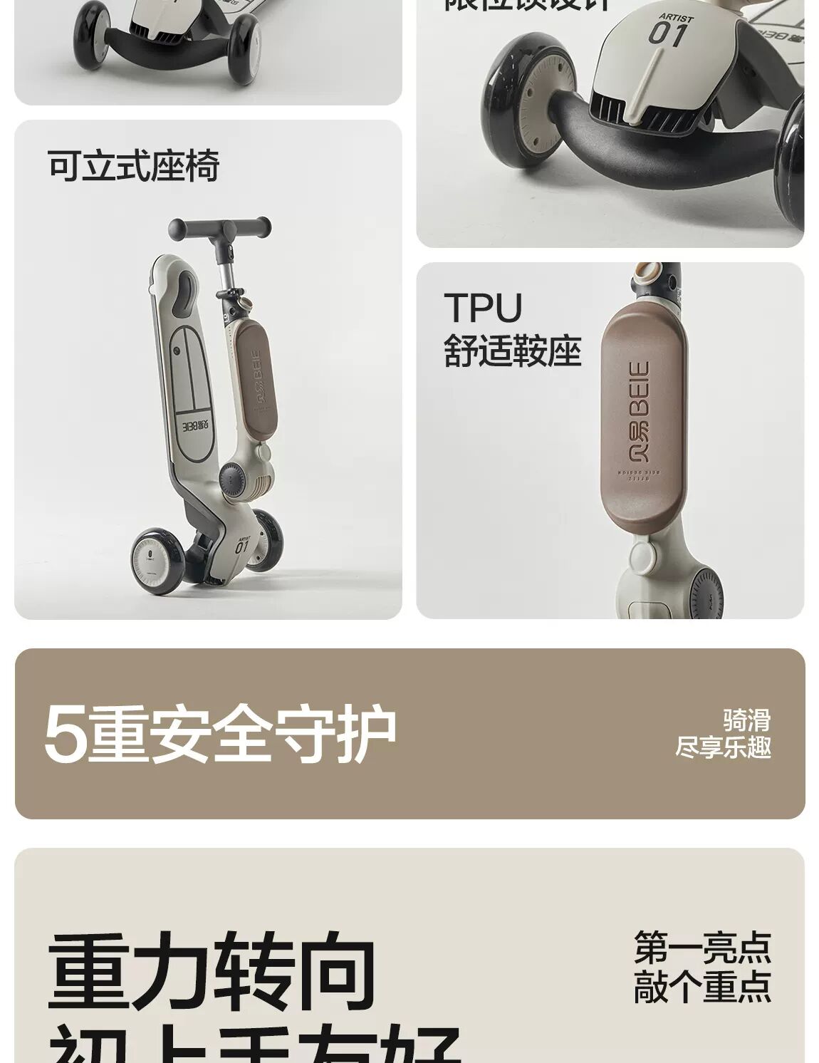 【新品‼️】贝易艺术家儿童滑板车三合一1到3岁6岁可折叠宝宝滑滑溜娃神器【满568元送宇航员头盔】