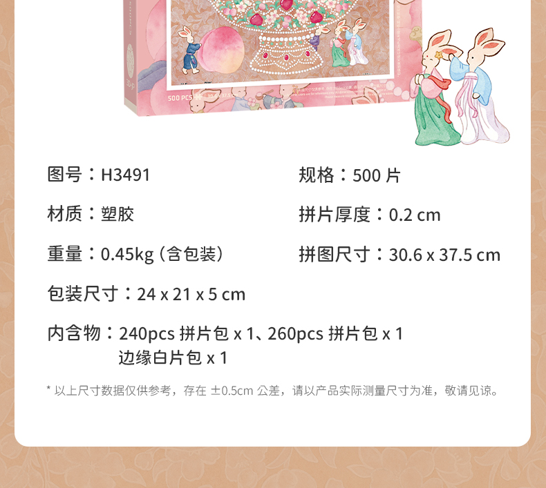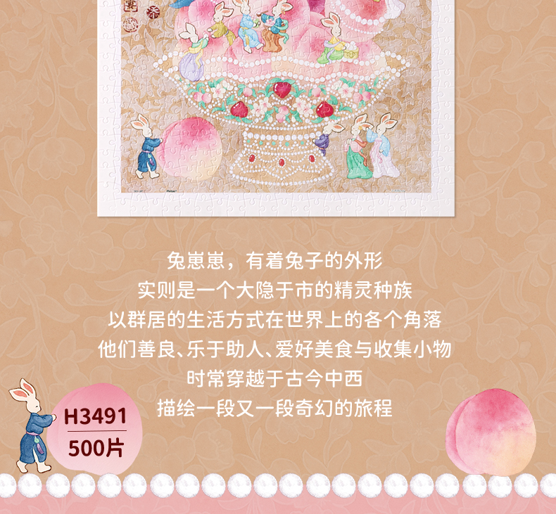 500片 平面塑料拼图 H3491 添添Emily-兔崽崽系列-仙桃宴