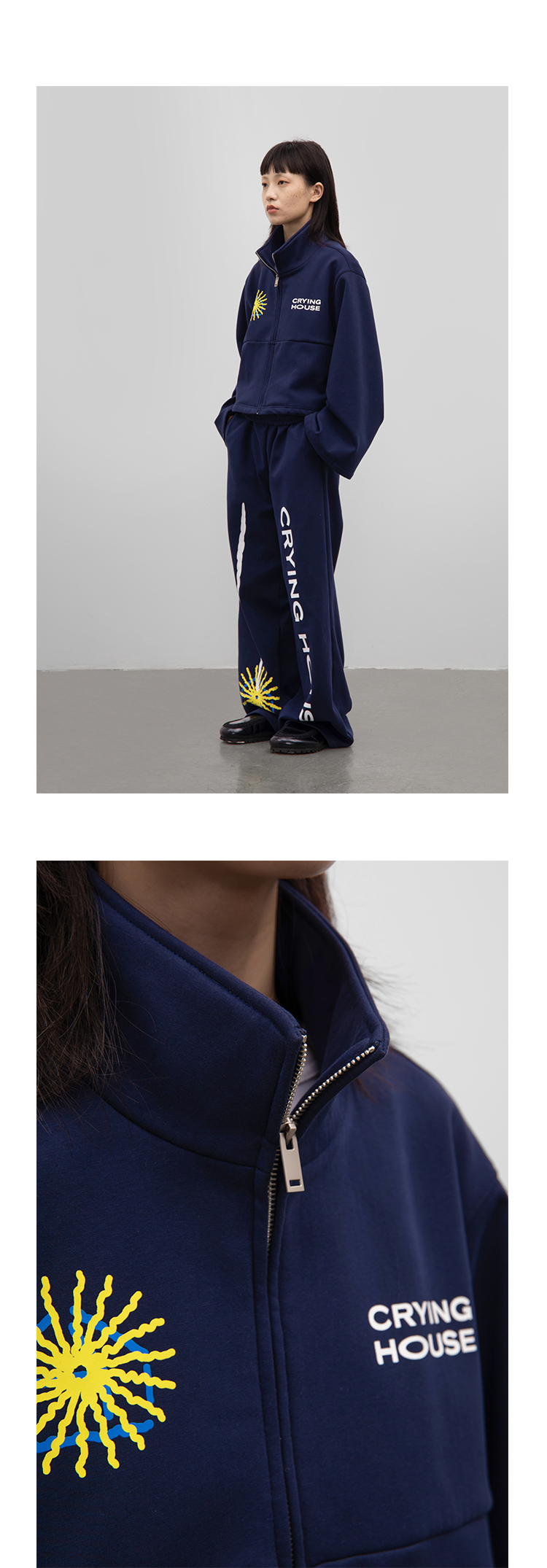 CryingCenter 泪屋系列 屋主套装 制服蓝薄绒卫衣套装立挺面料