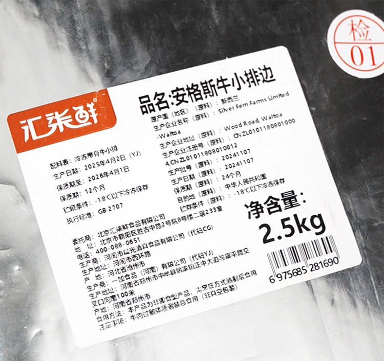 汇柒鲜牛小排边2.5kg 进口安格斯牛小排