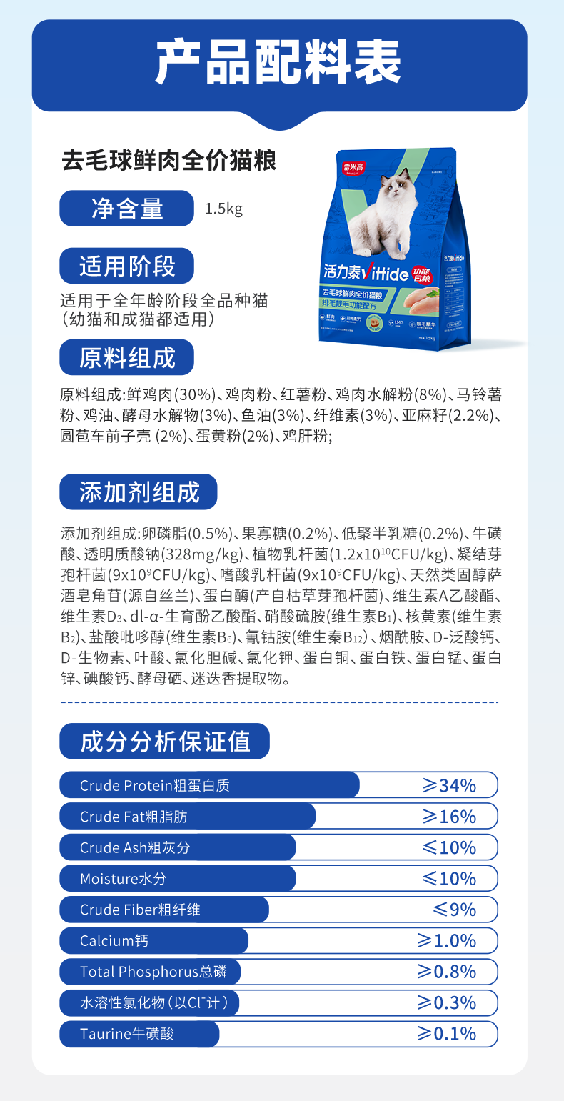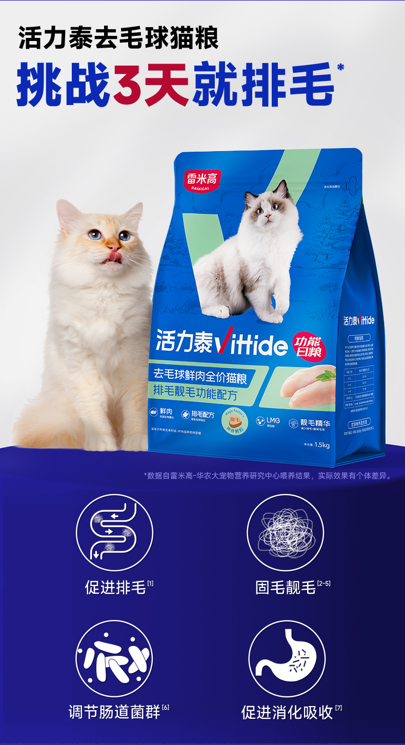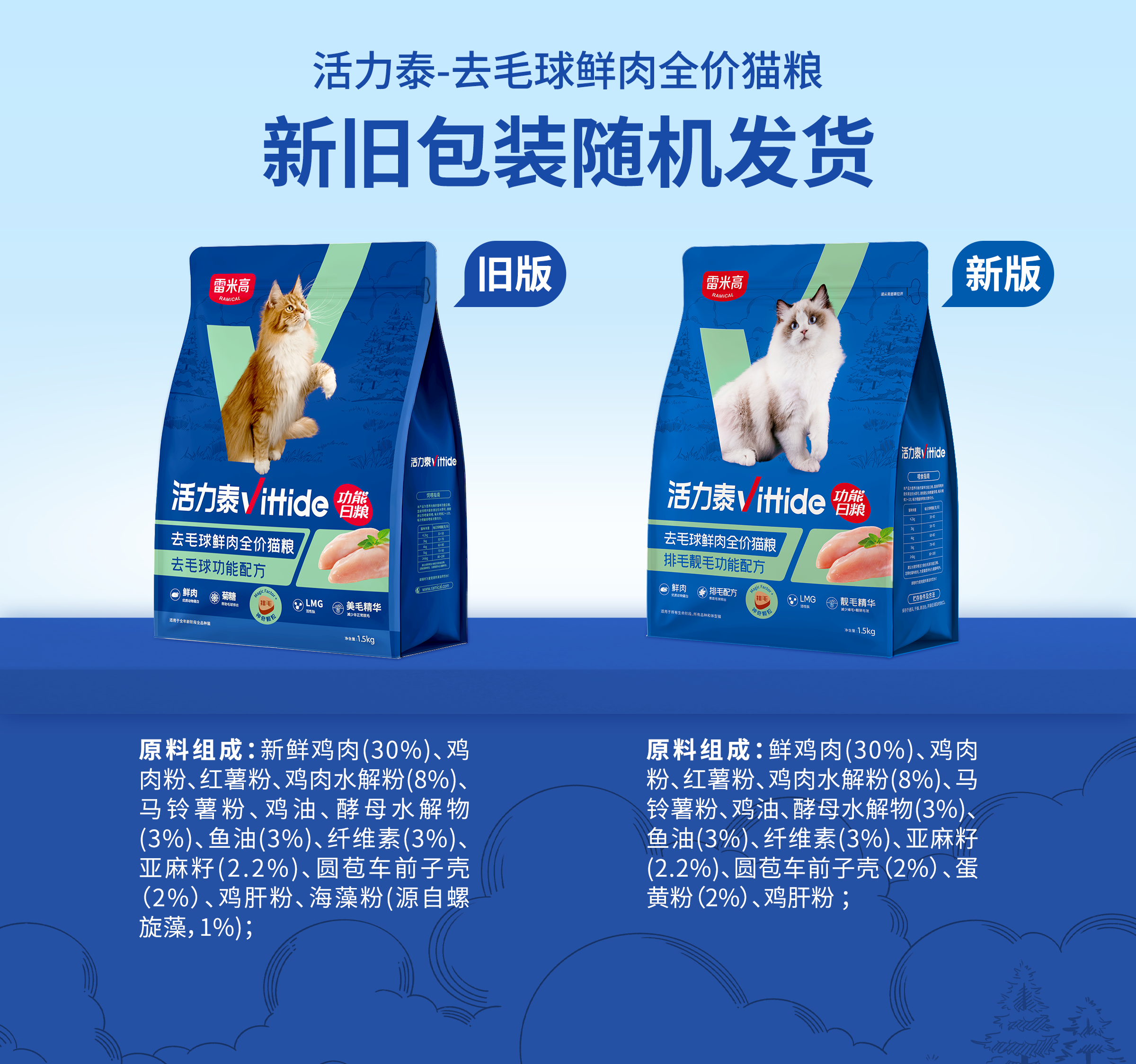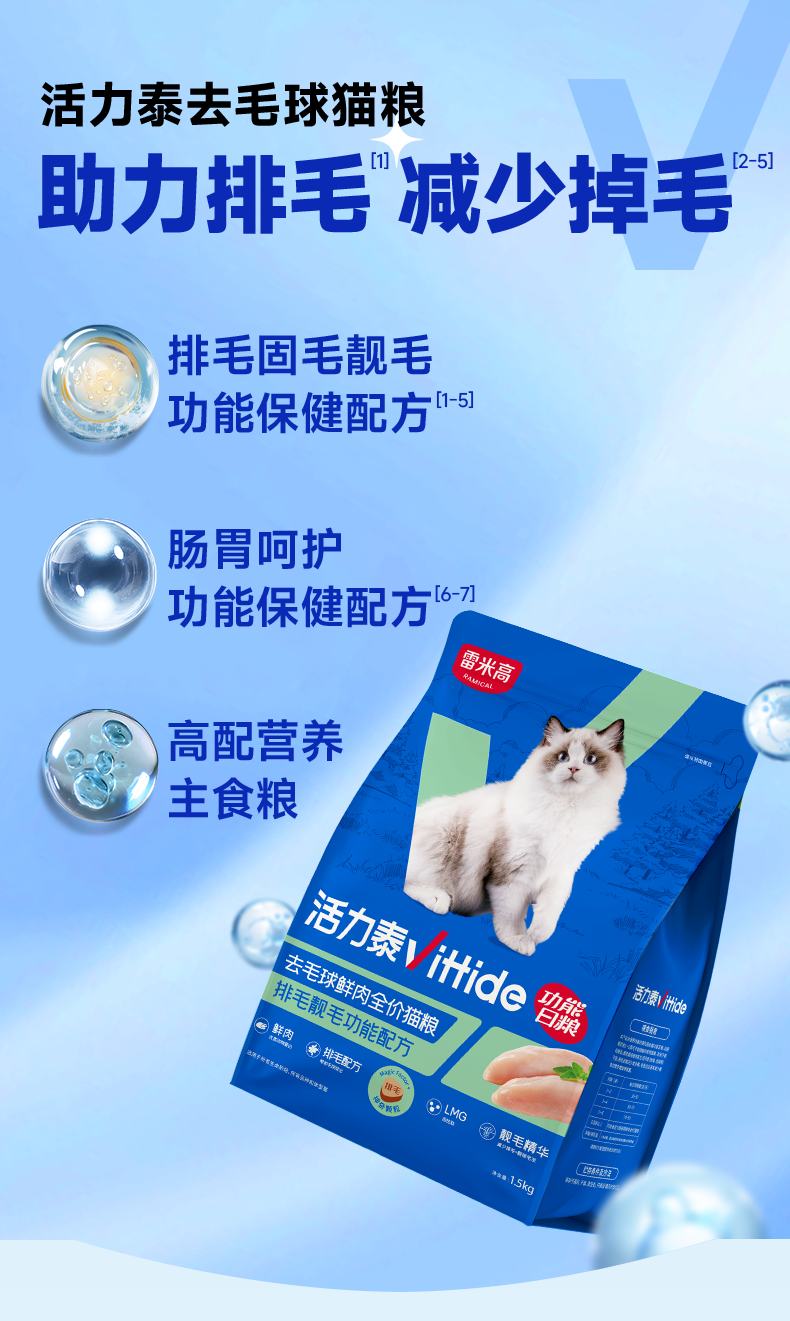 【雷米高】活力泰鲜肉系列功能日粮去毛球鲜肉全期全价猫粮1.5kg