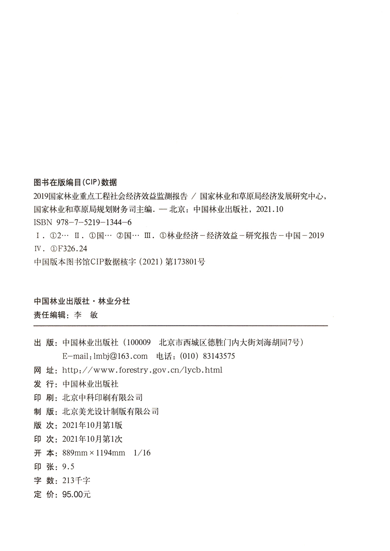 国家林业重点工程社会经济效益监测报告(2019) 国家林业和草原局经济发展研究中心 林业和草原局规划财务司 1344 中国林业出版社
