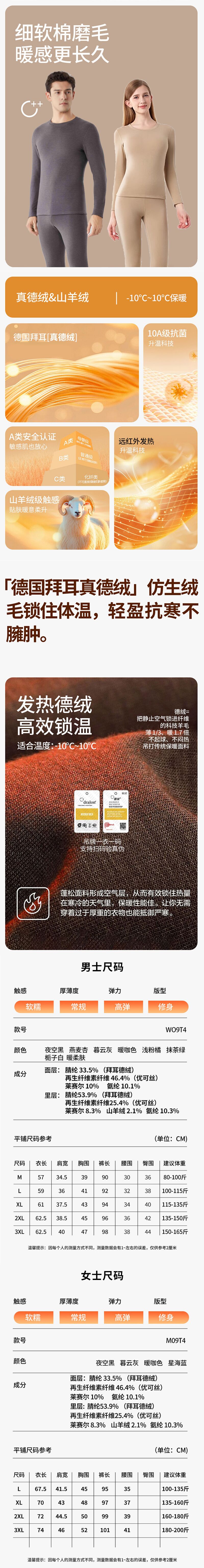 【拜耳真德绒保暖内衣套装】柔软亲肤 透气吸汗 锁温超保暖