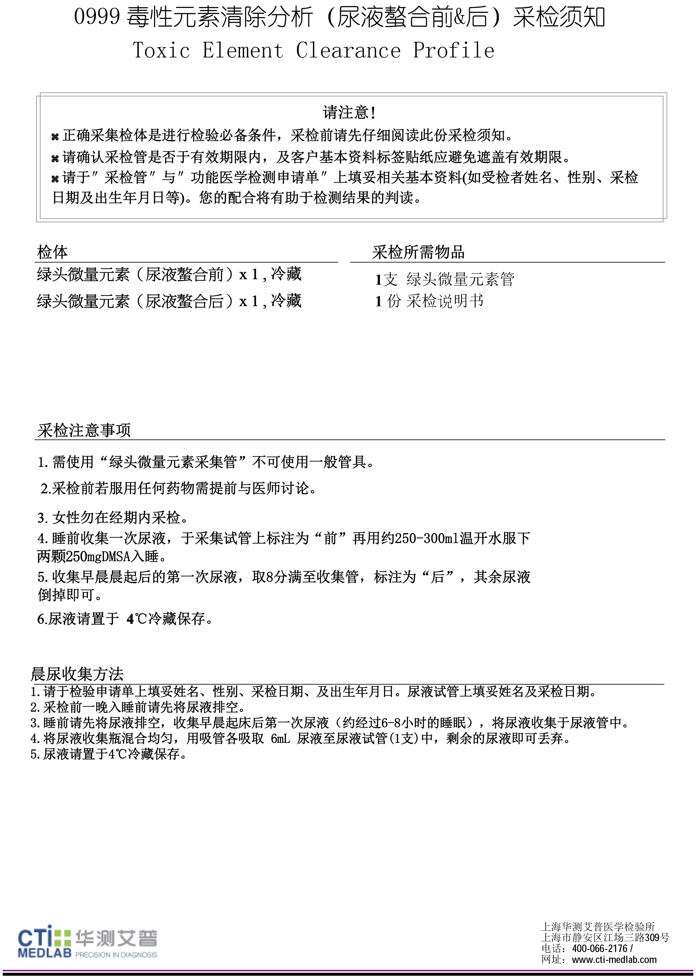 华测 毒性元素清除分析(尿液螯合重金属) 0999