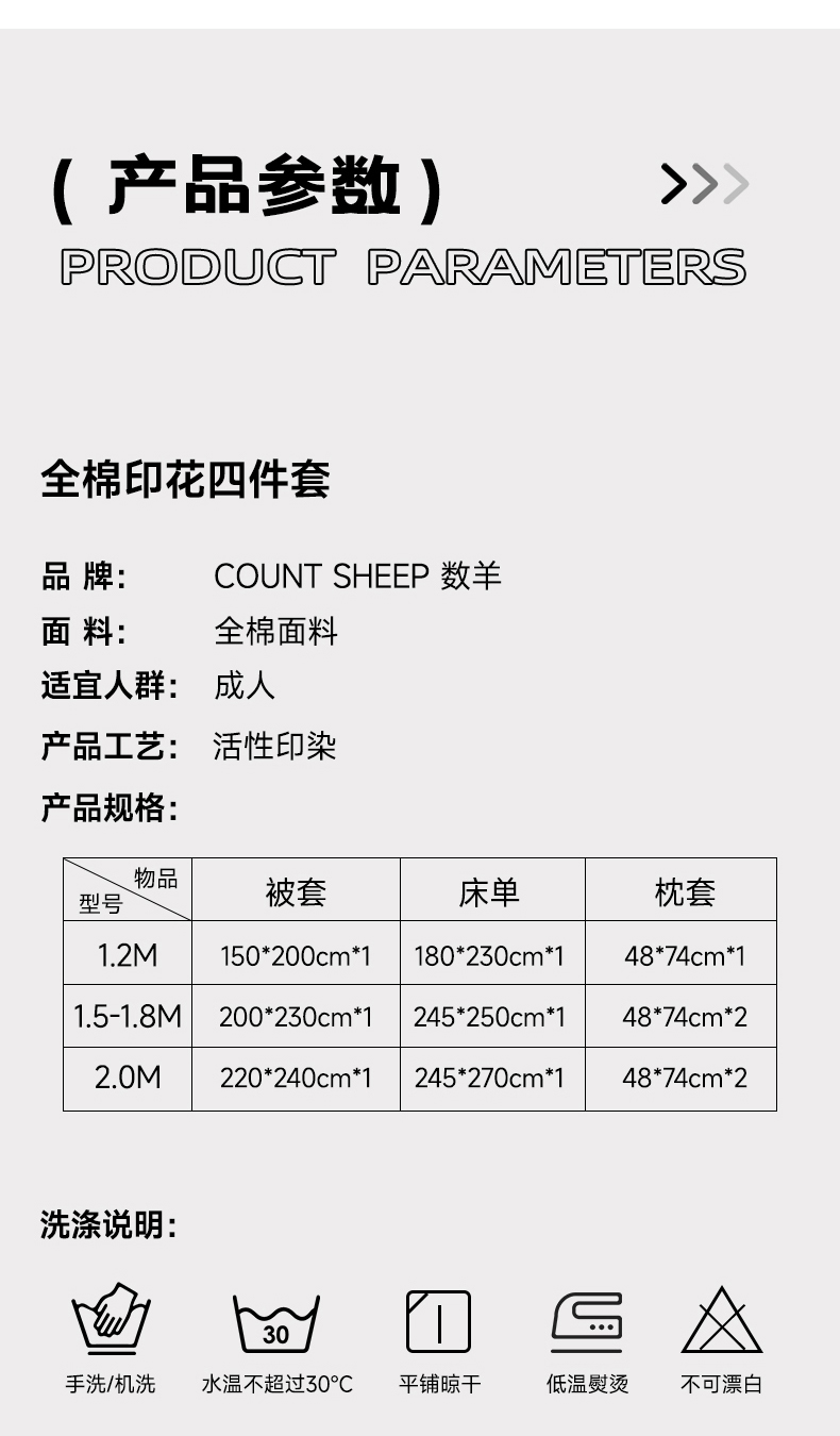 COUNTSHEEP数羊 40支100%全棉四件套(常规款)200*230cm
