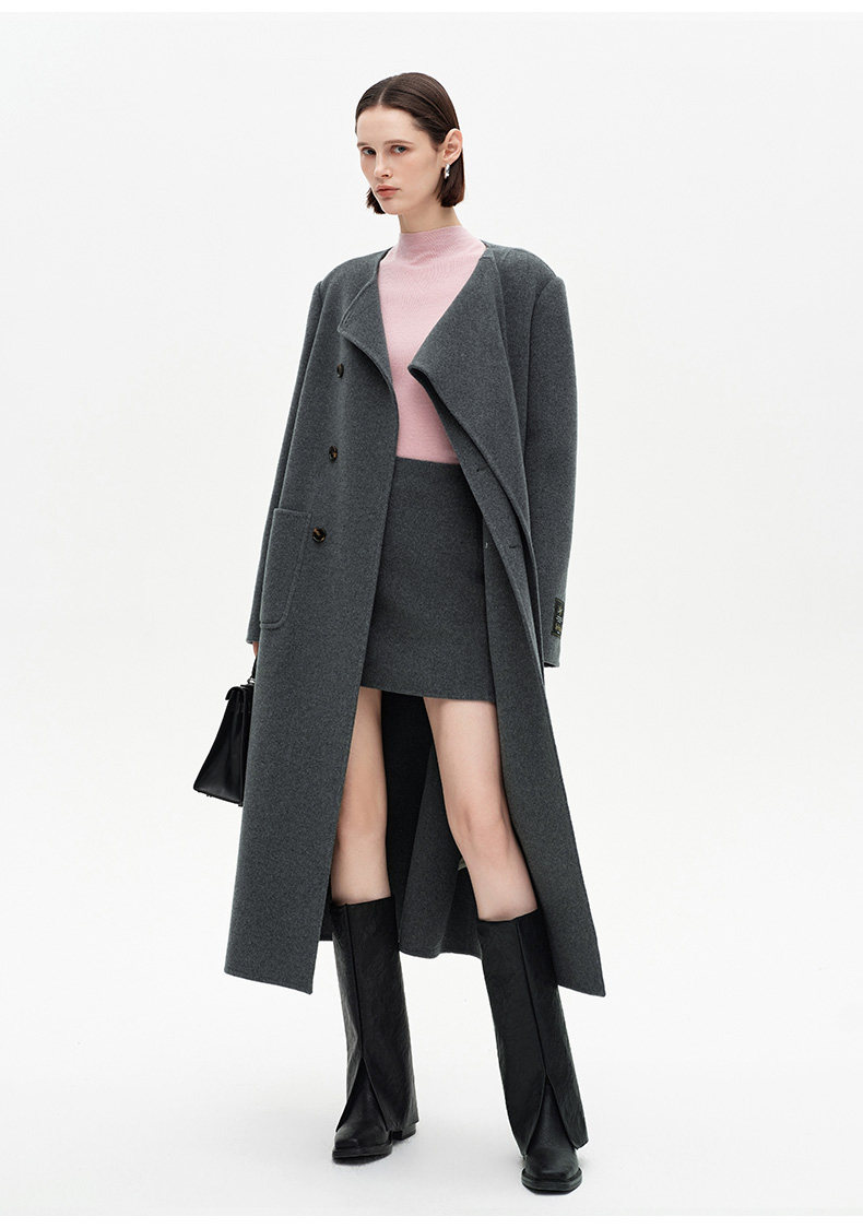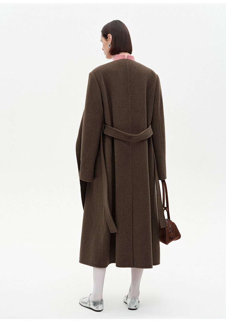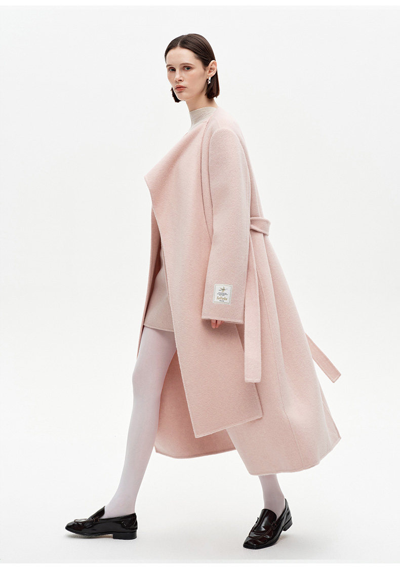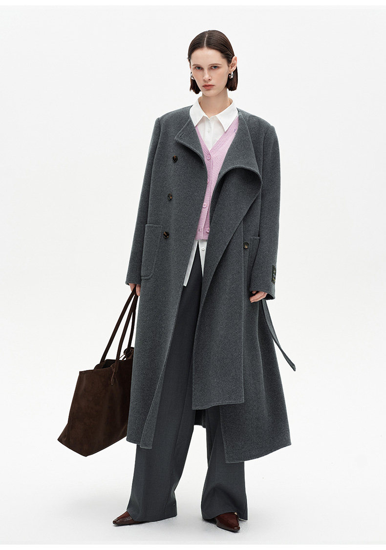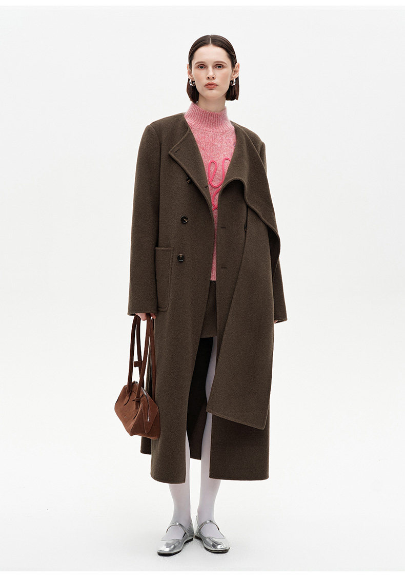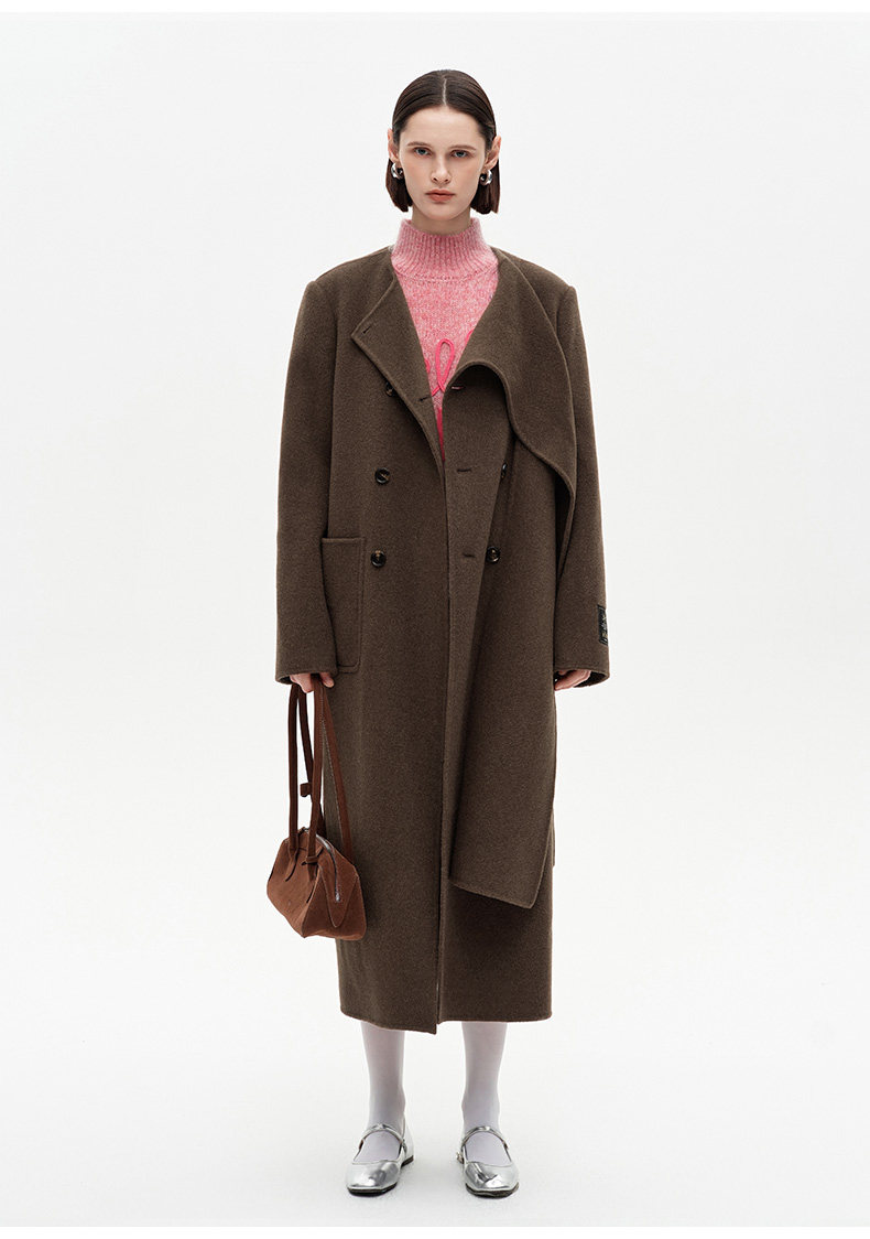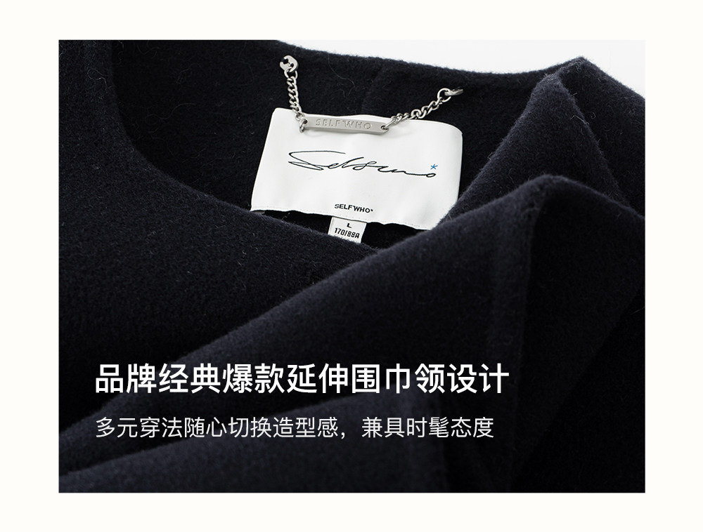 [赵今麦同款]SELFWHO绵羊毛围巾领毛呢外套女冬装新款100高支大衣