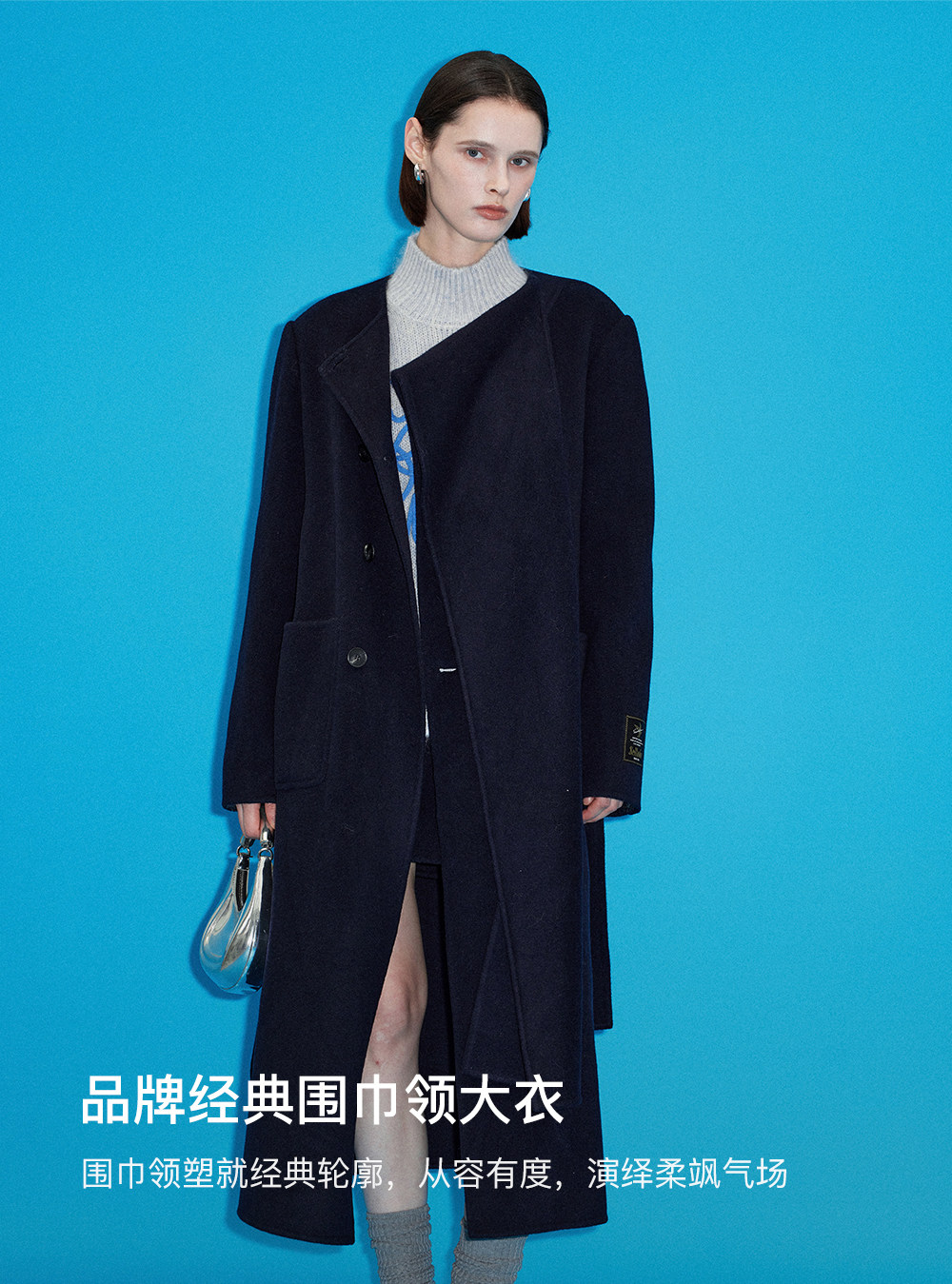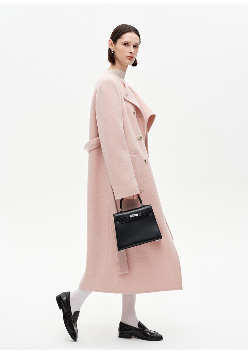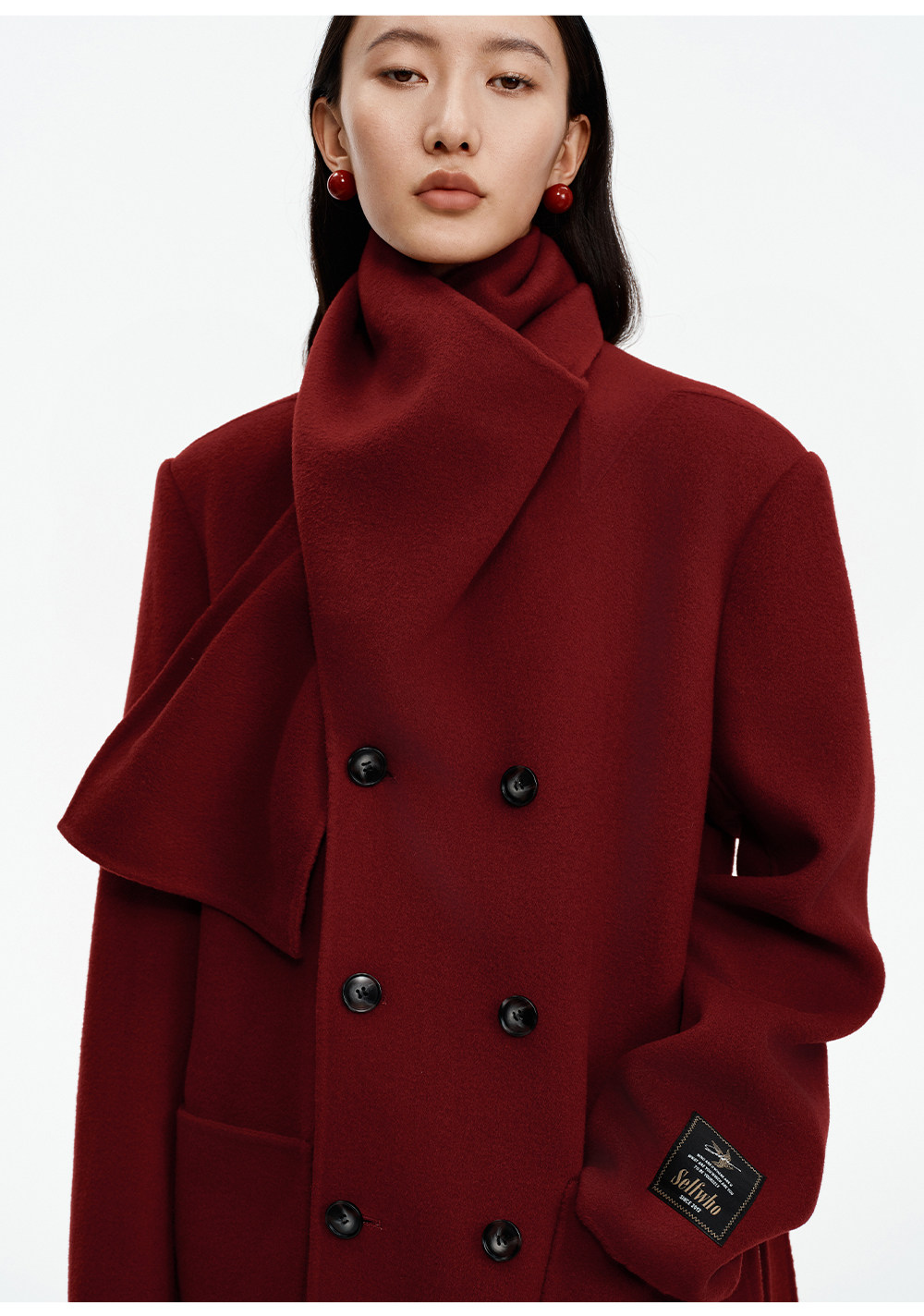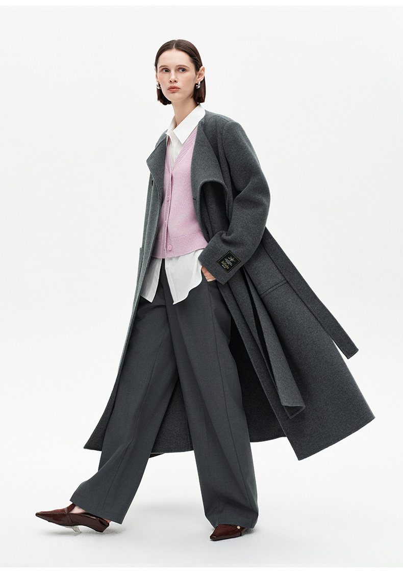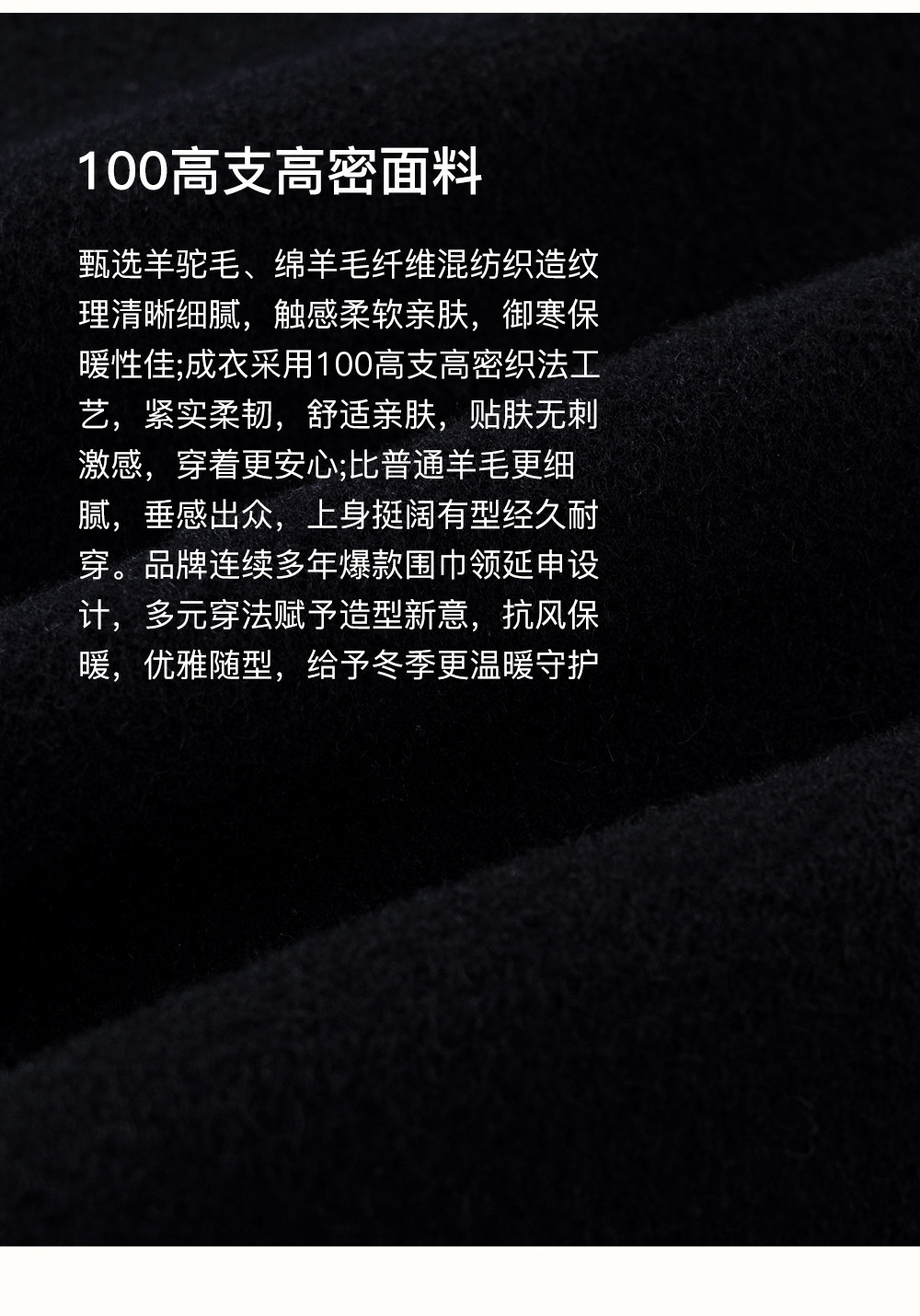 [赵今麦同款]SELFWHO绵羊毛围巾领毛呢外套女冬装新款100高支大衣