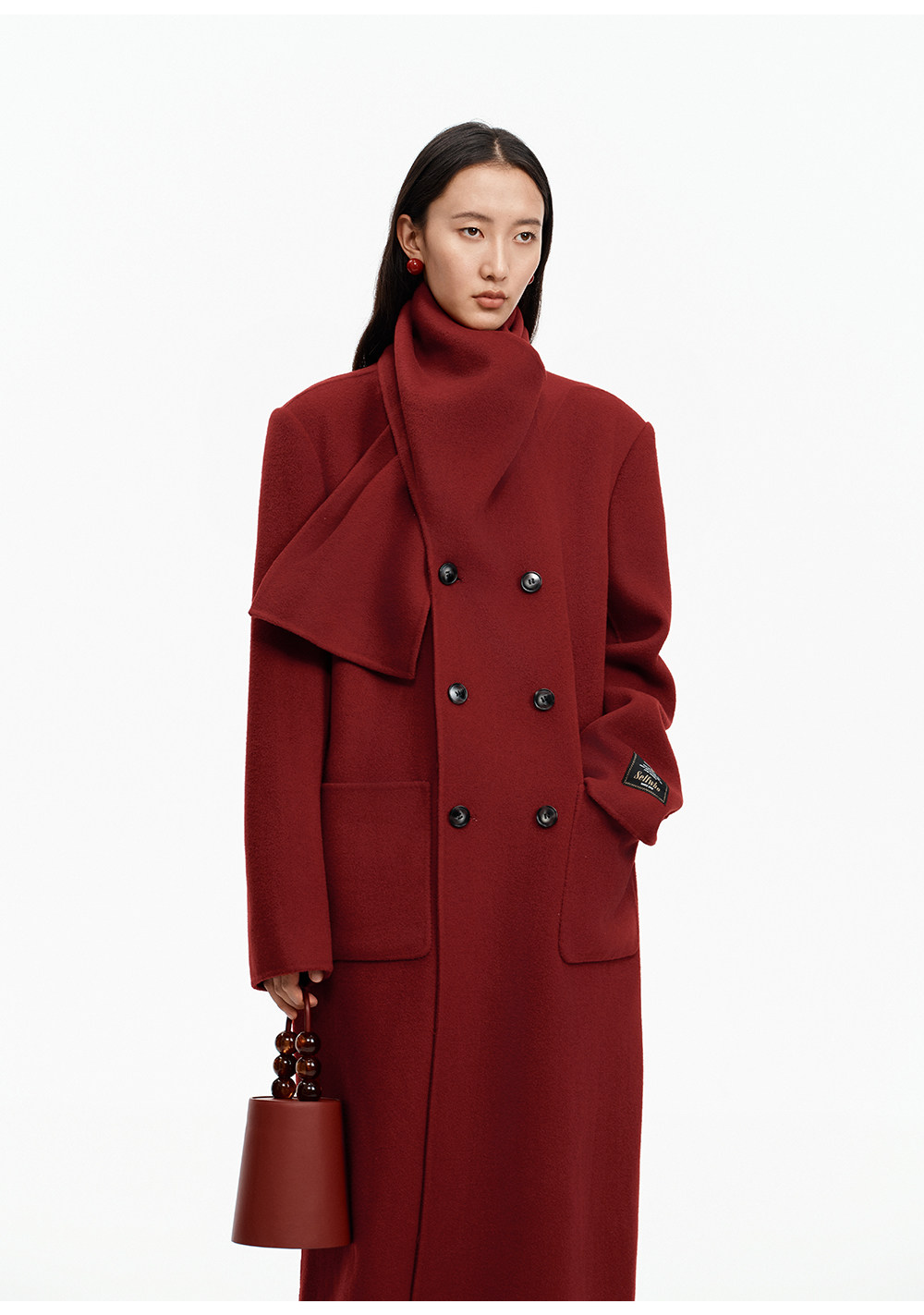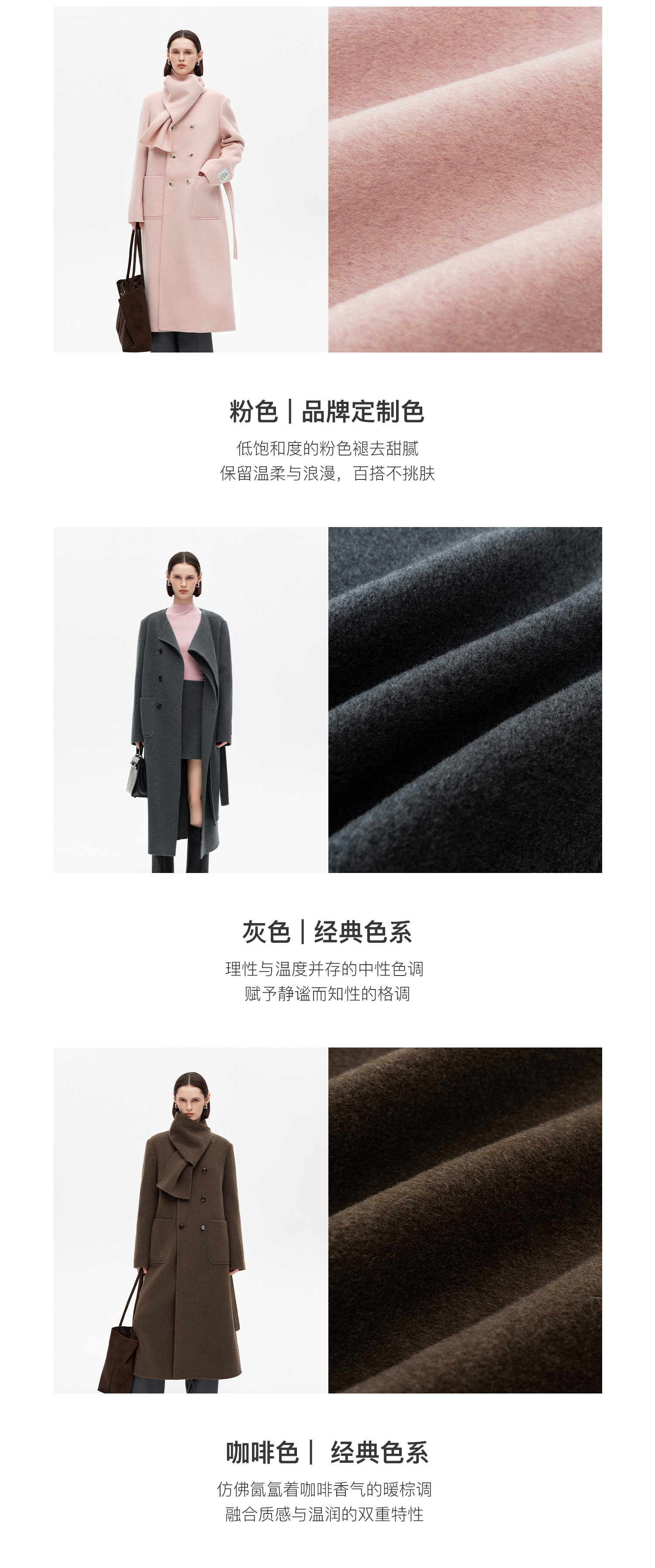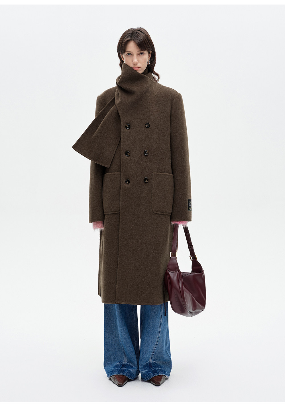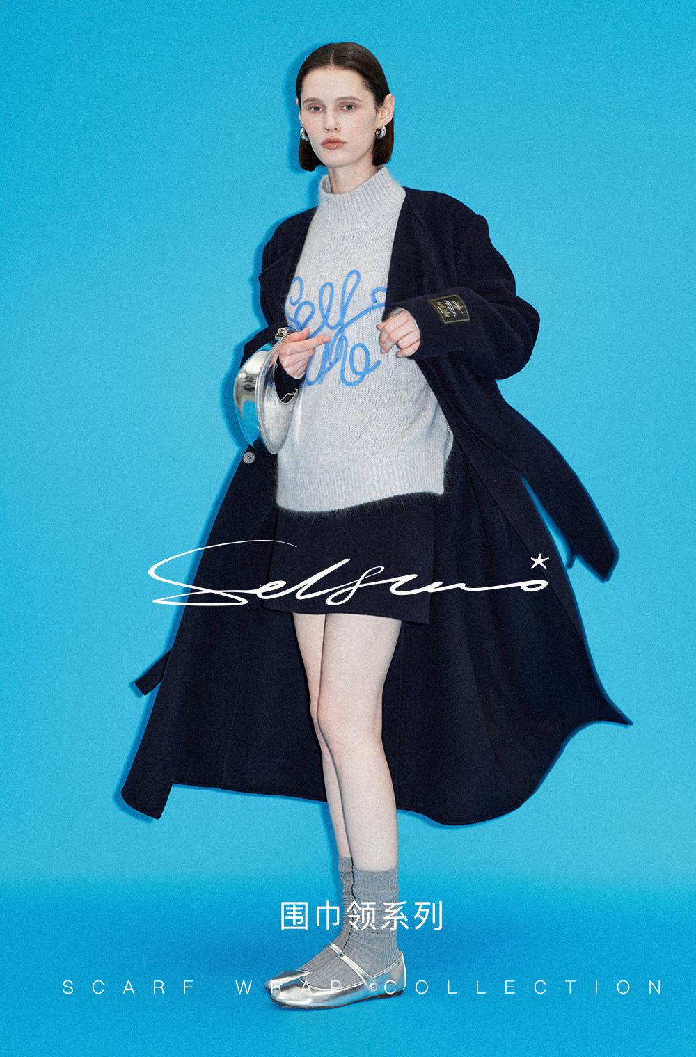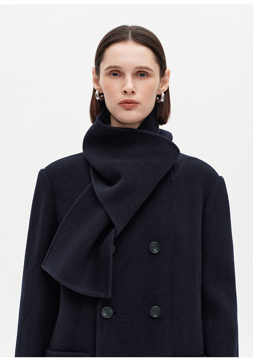 [赵今麦同款]SELFWHO绵羊毛围巾领毛呢外套女冬装新款100高支大衣