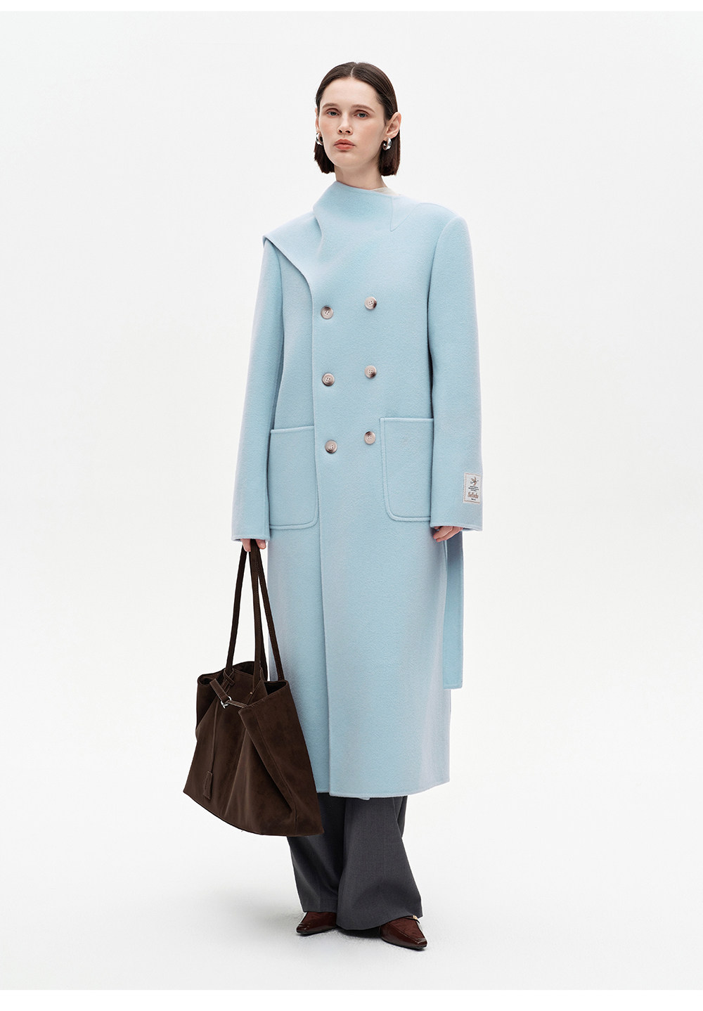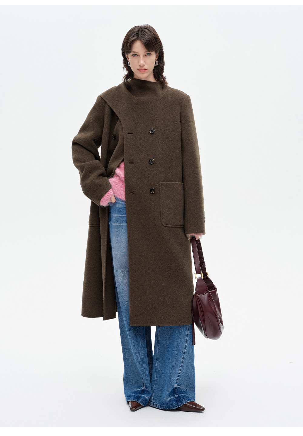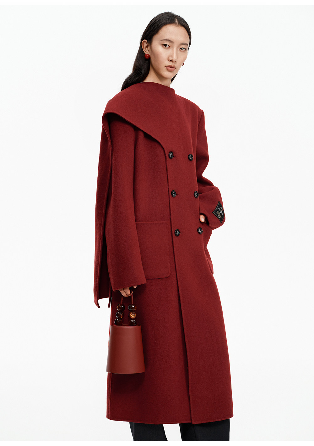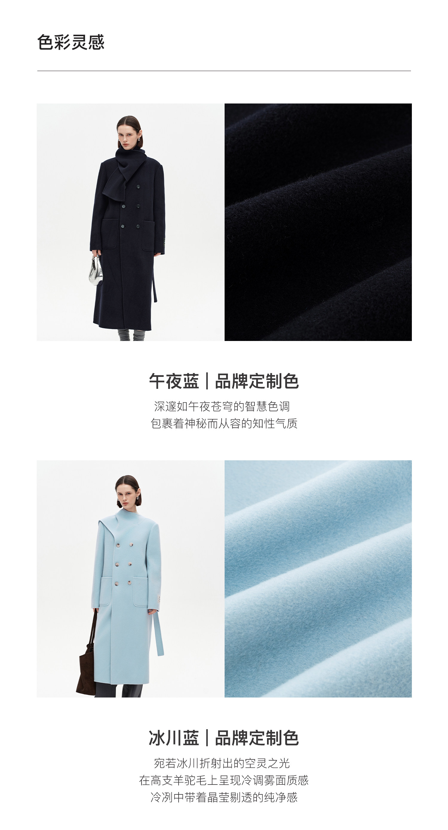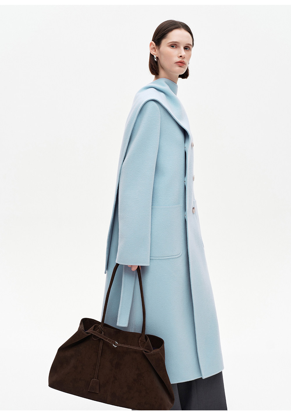 [赵今麦同款]SELFWHO绵羊毛围巾领毛呢外套女冬装新款100高支大衣