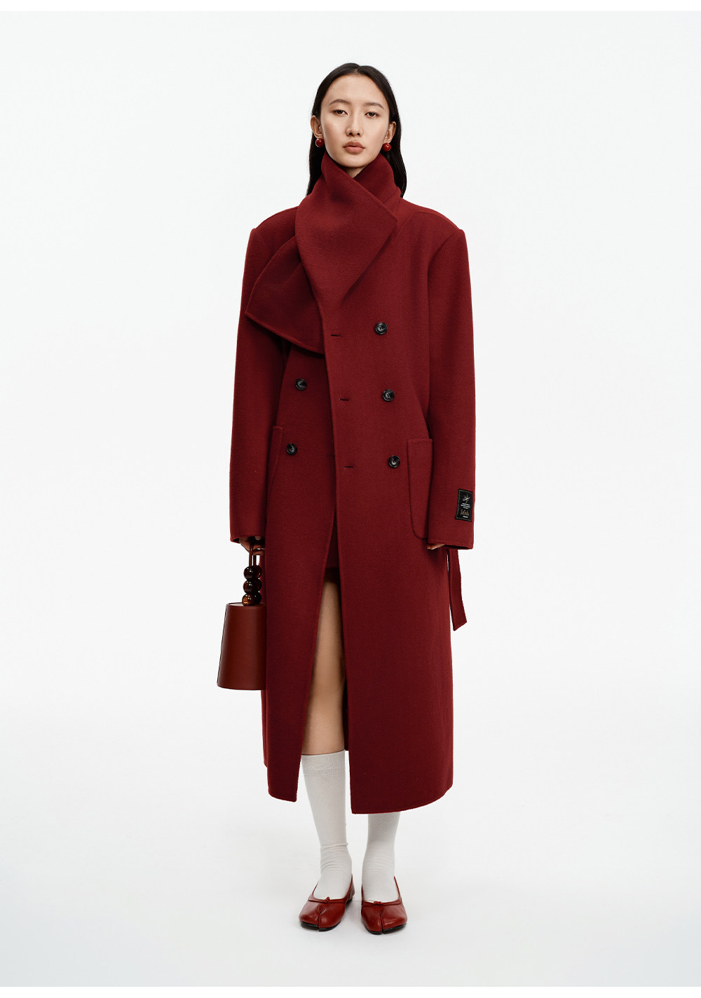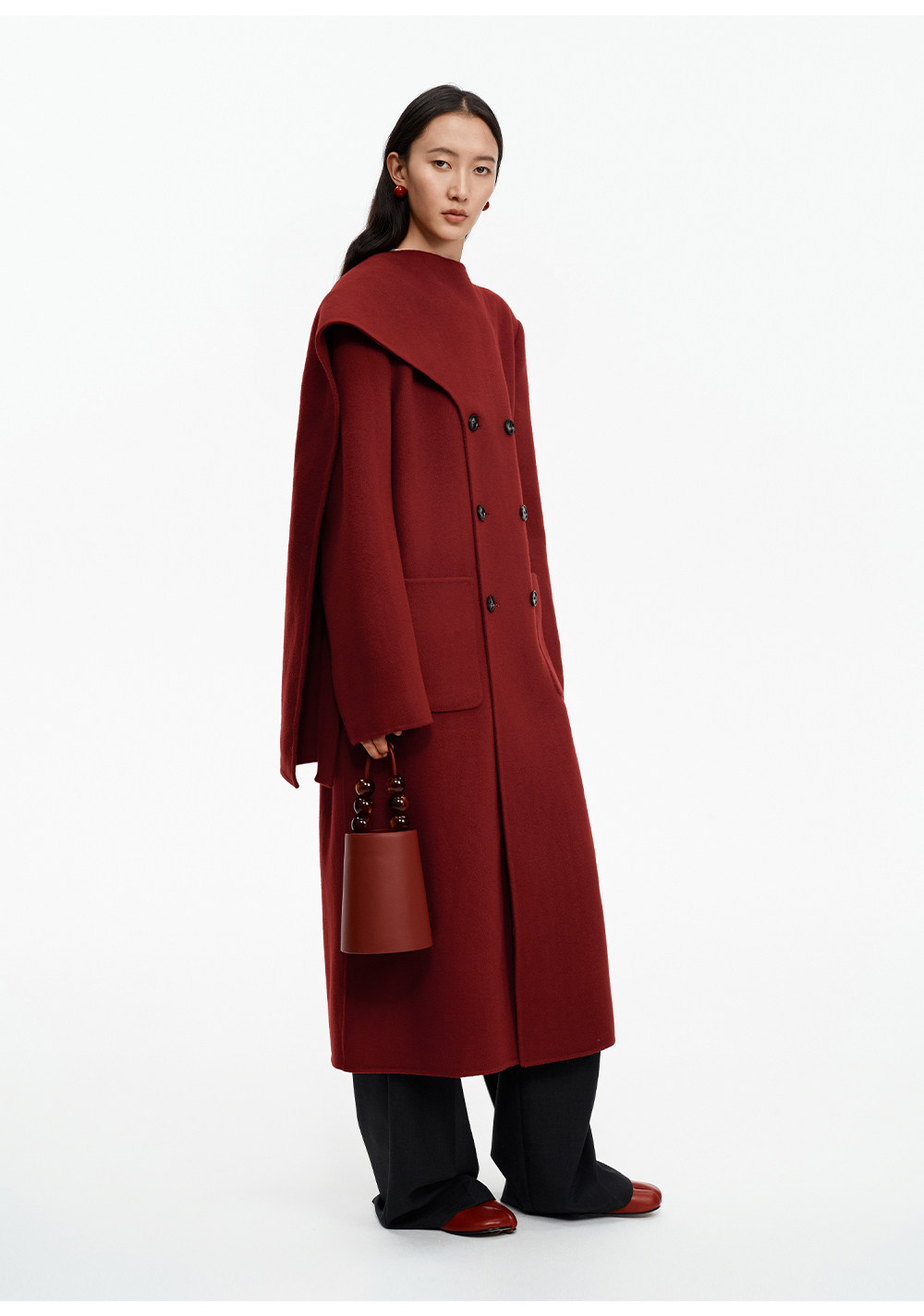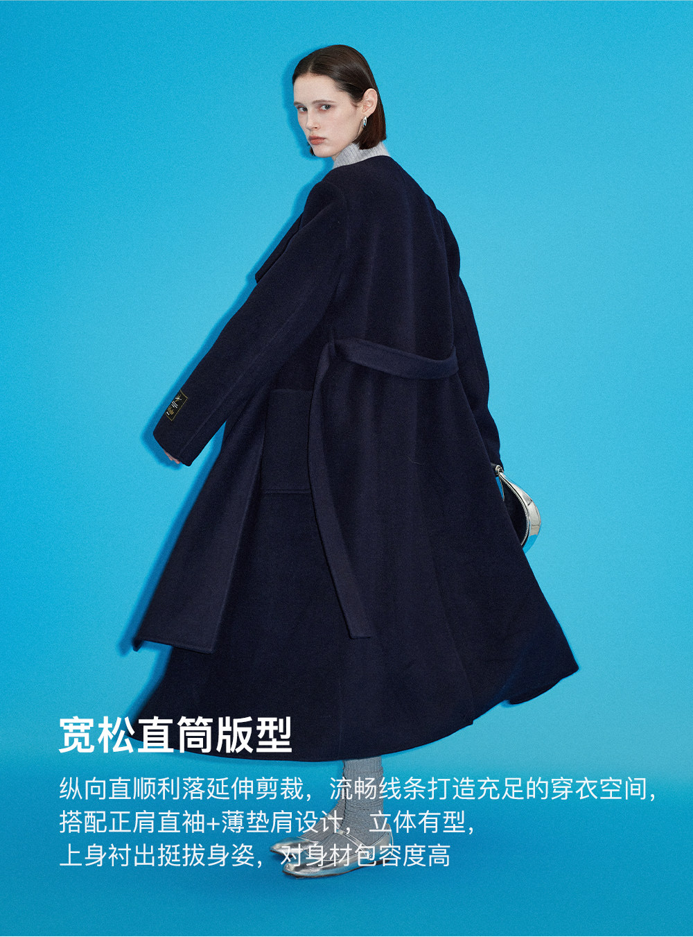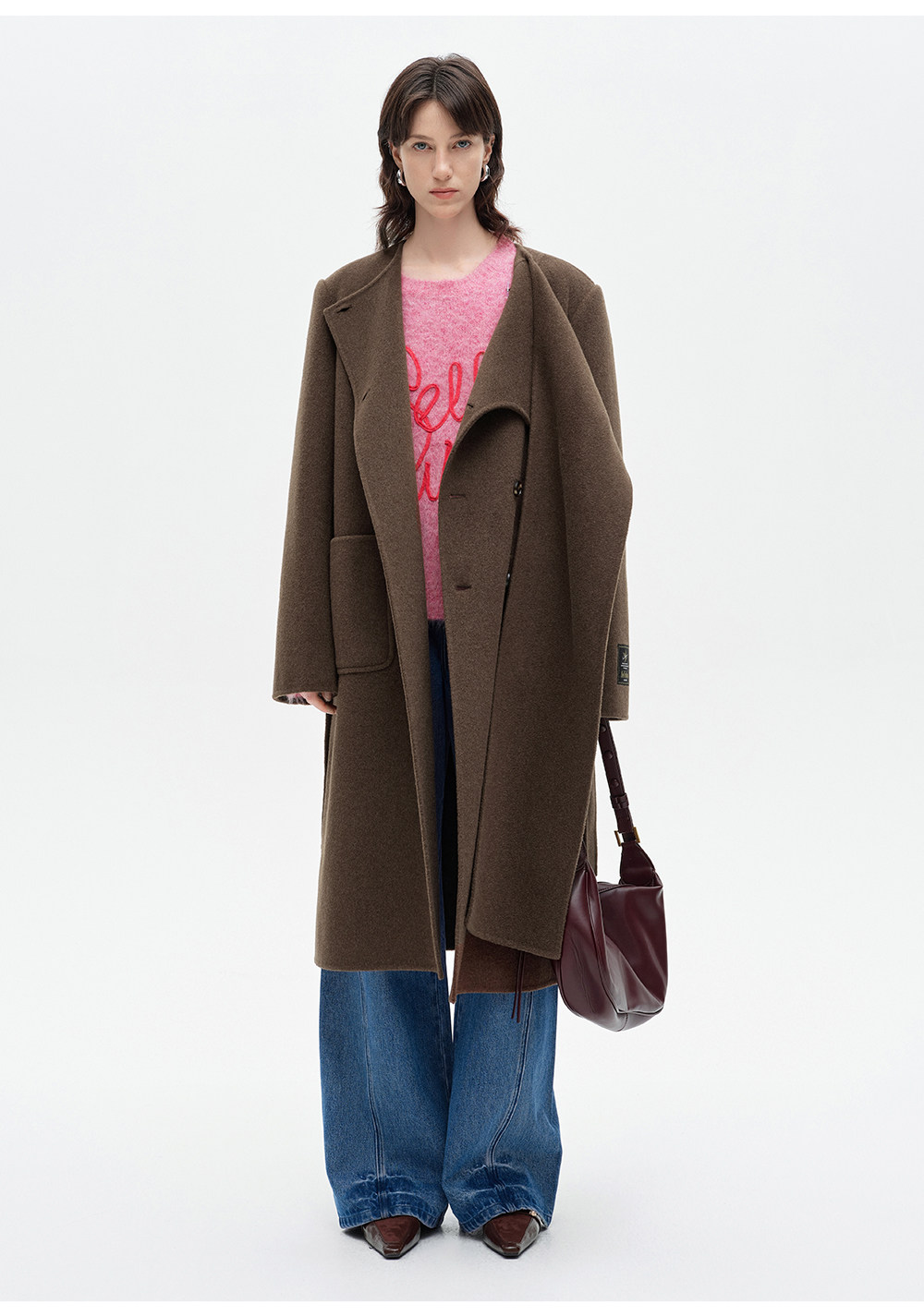 [赵今麦同款]SELFWHO绵羊毛围巾领毛呢外套女冬装新款100高支大衣