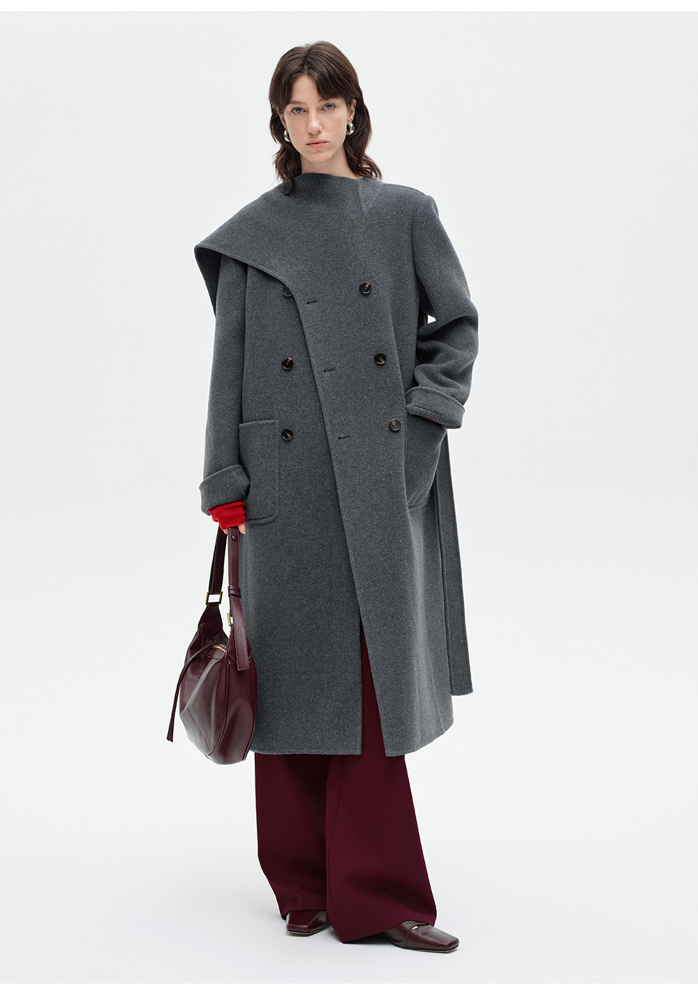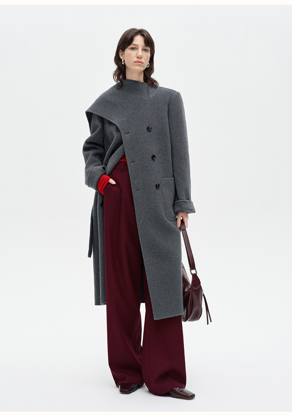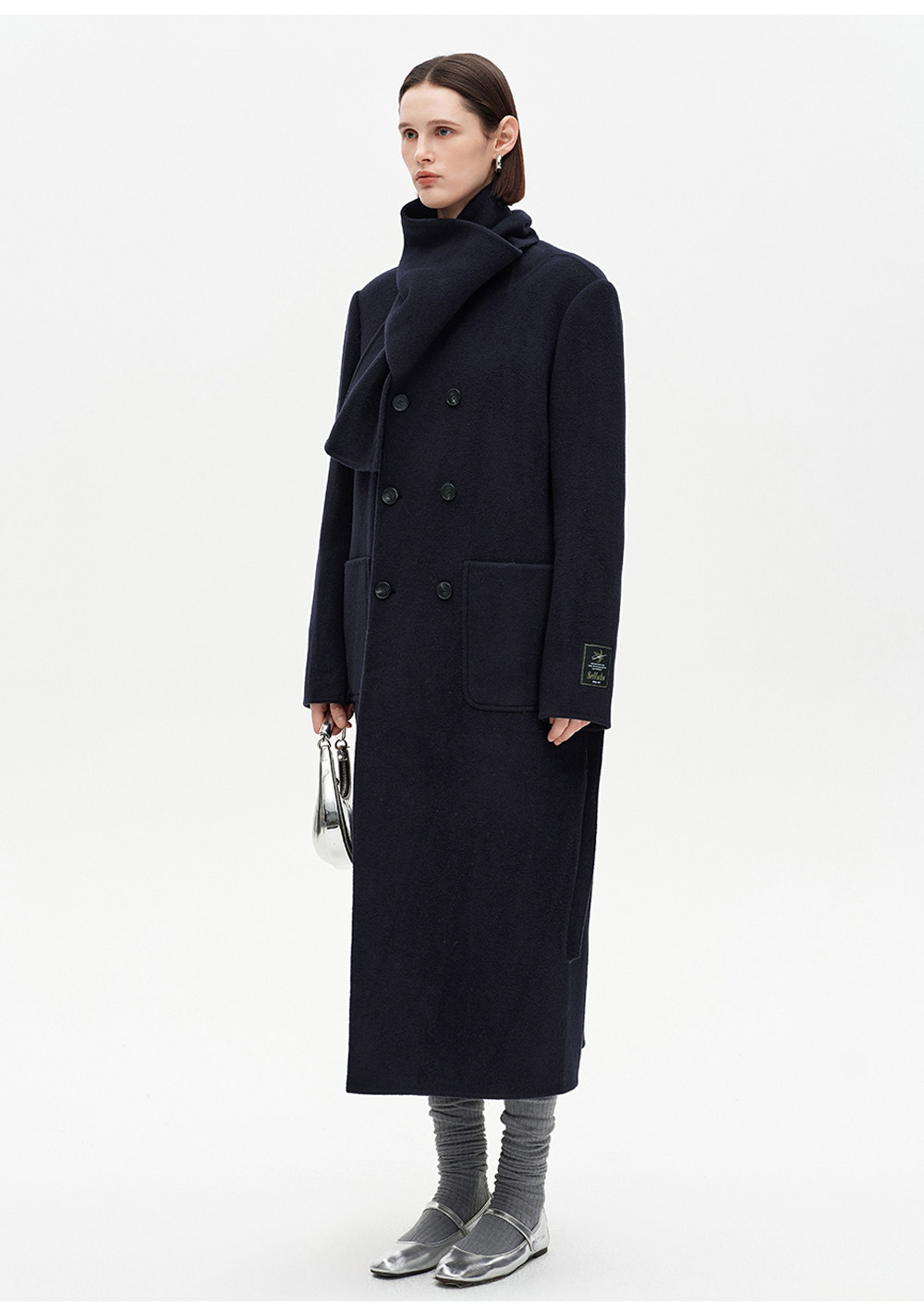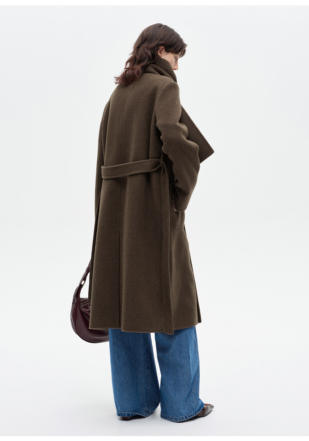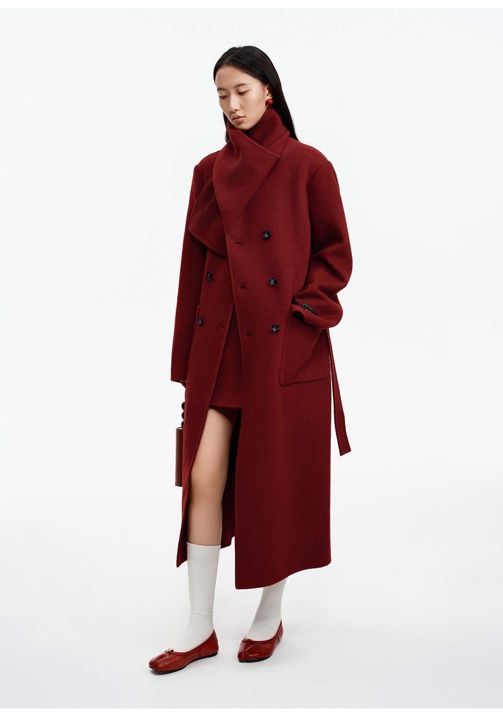 [赵今麦同款]SELFWHO绵羊毛围巾领毛呢外套女冬装新款100高支大衣