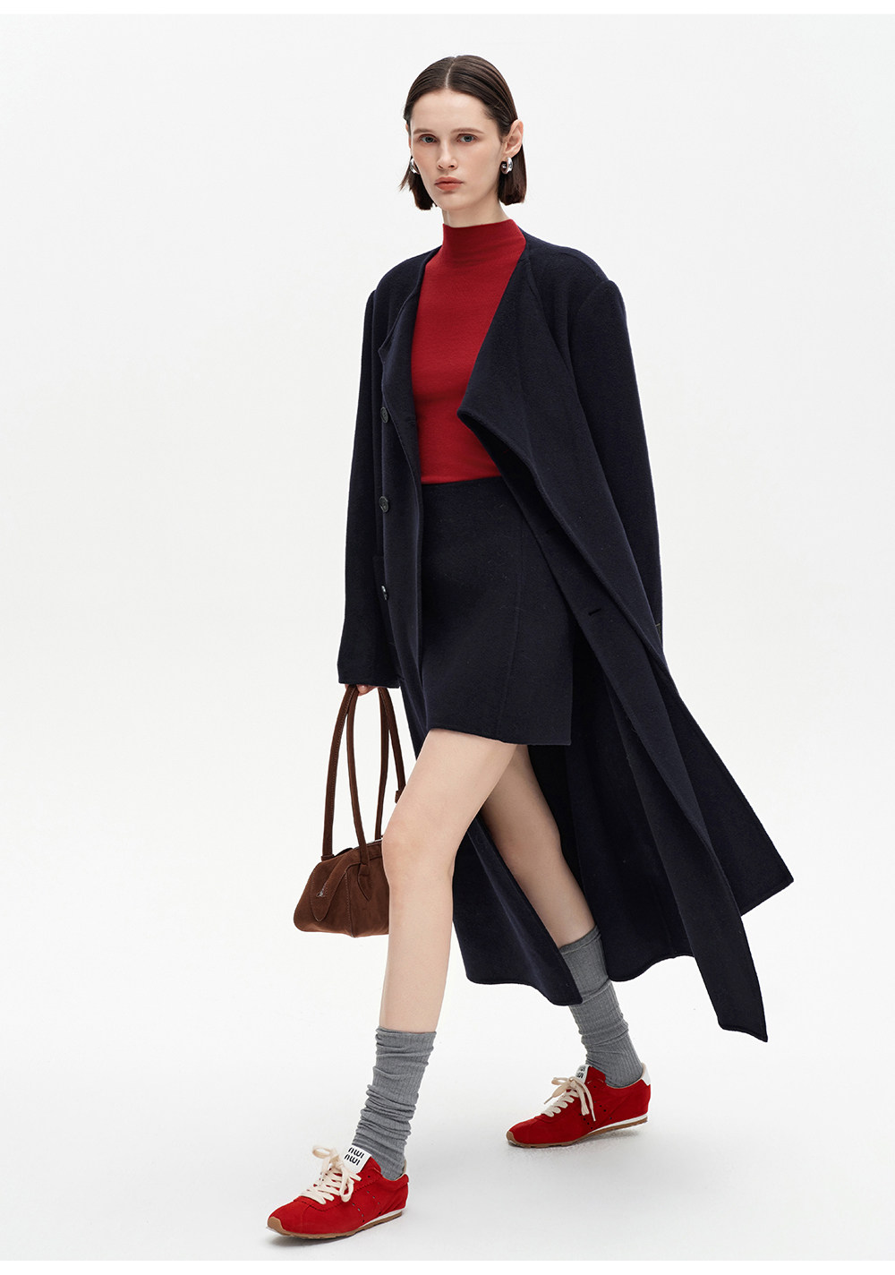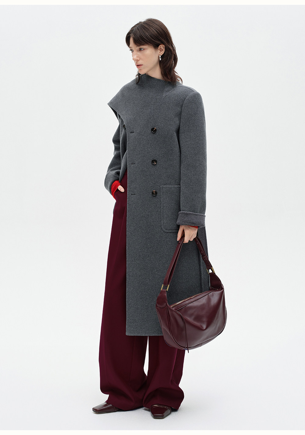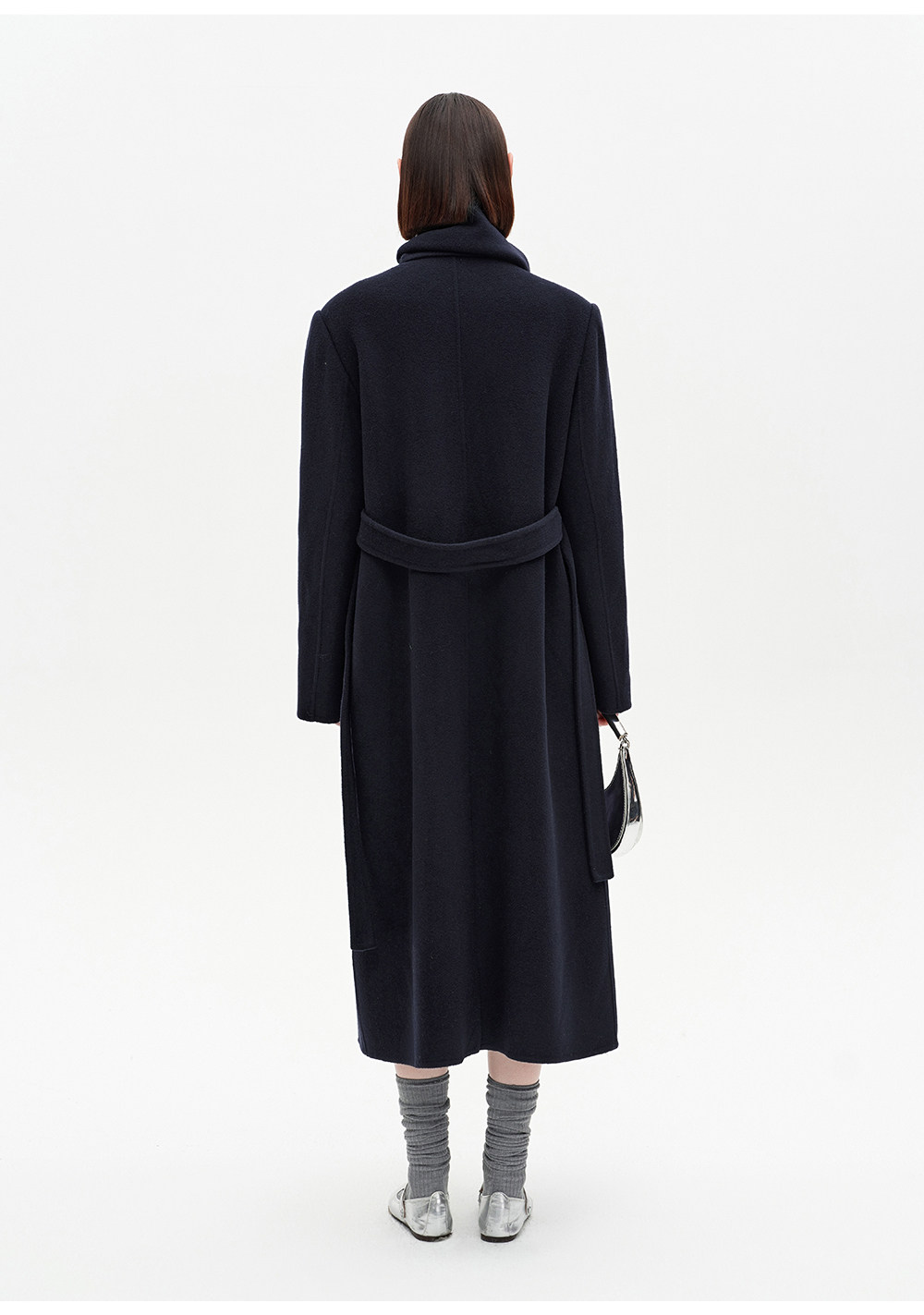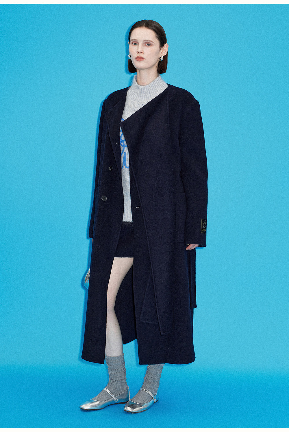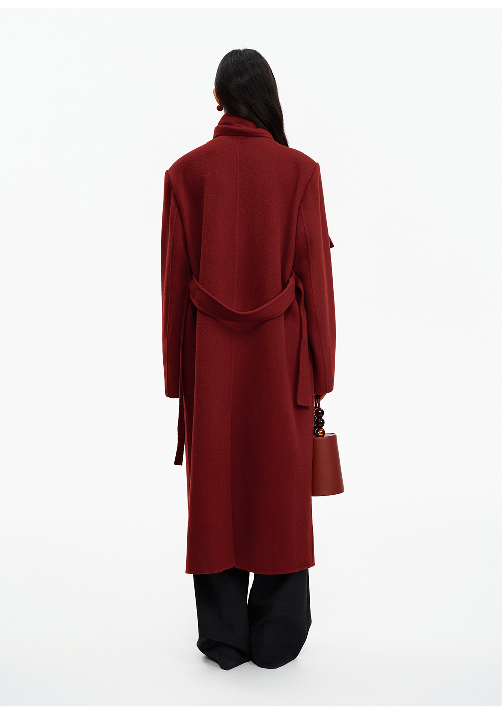 [赵今麦同款]SELFWHO绵羊毛围巾领毛呢外套女冬装新款100高支大衣