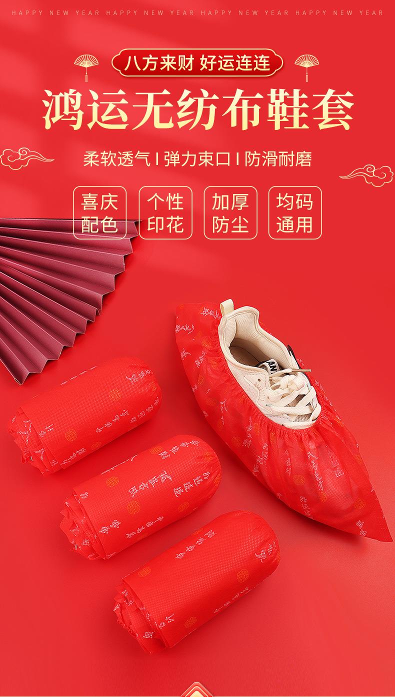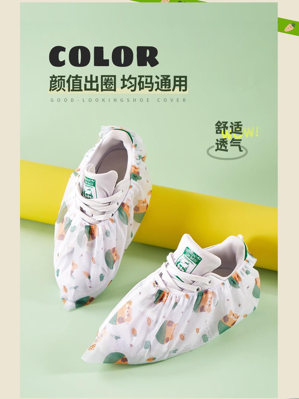 【100只仅19.9!】一次性印花卡通鞋套无纺布加厚家用防滑室内机房耐磨脚套