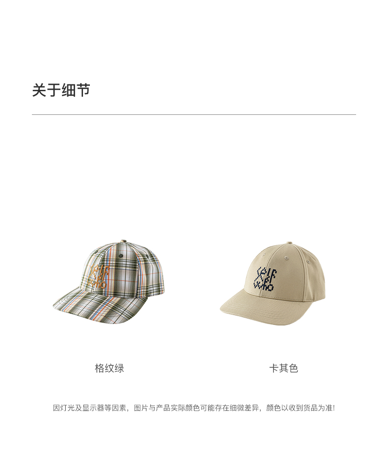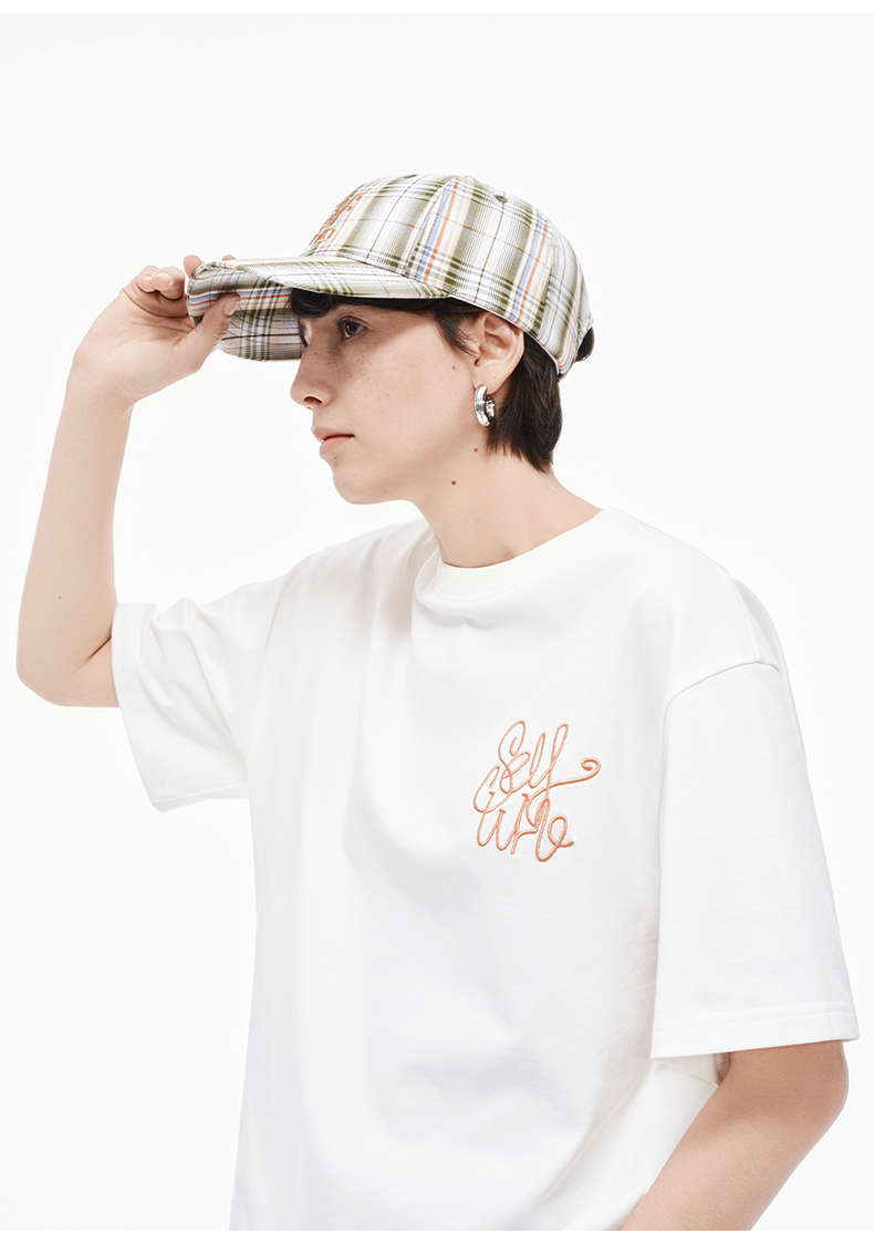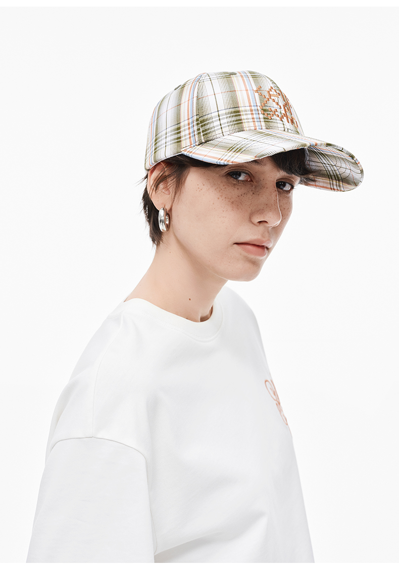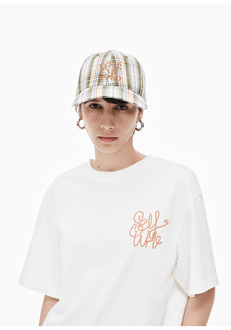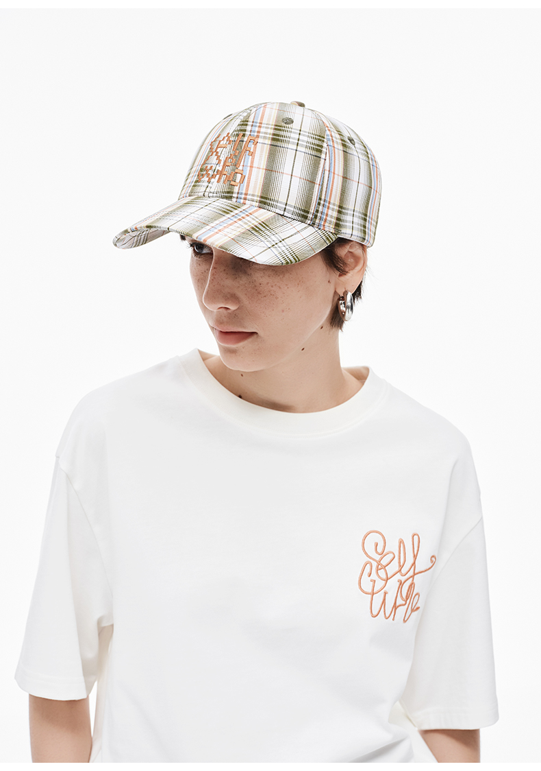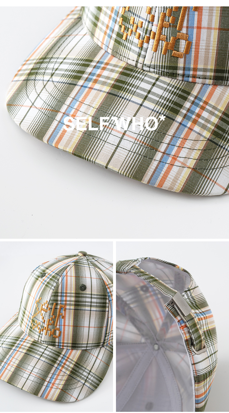 SELFWHO纯棉撞色格子刺绣棒球帽女2025夏新款户外休闲百搭鸭舌帽