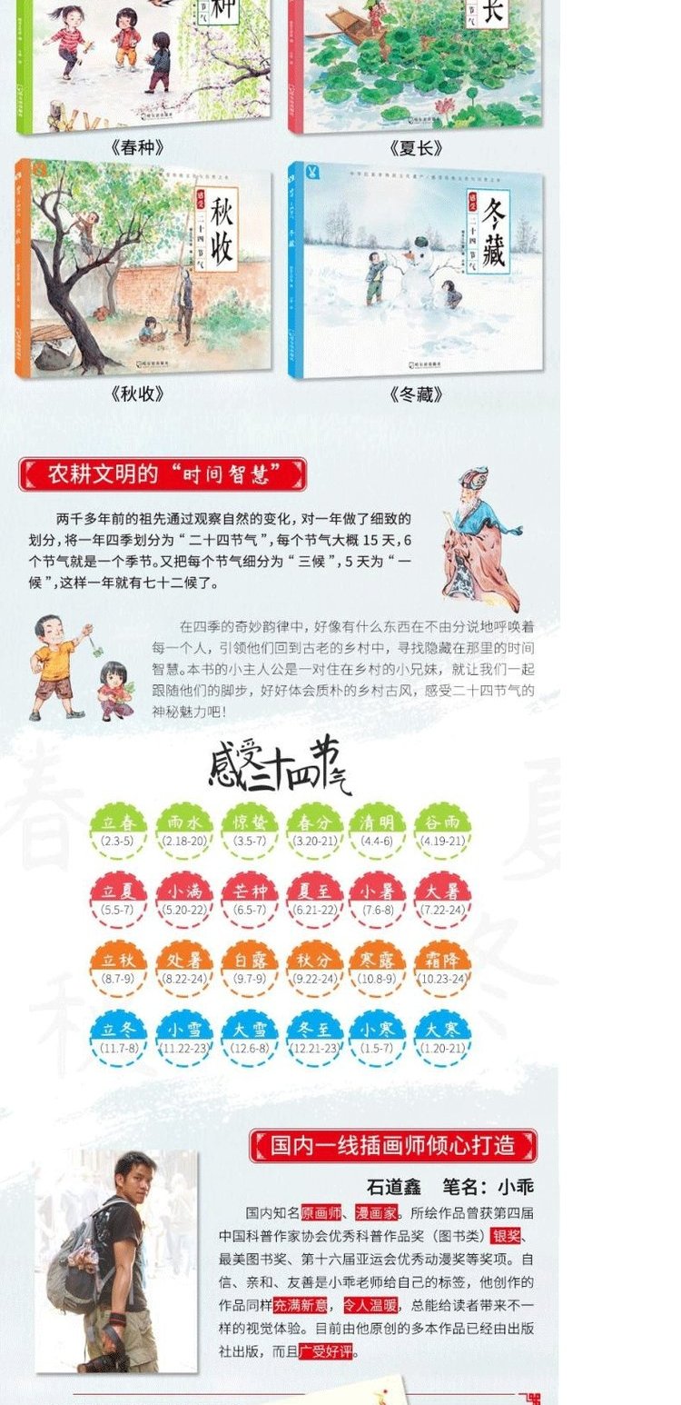感受二十四节气全4册 6-8-10岁儿童读物绘本童书 中国传统故事小学生一二三年级课外书百科全书大自然主题儿童绘本 科普图画TLSTLS