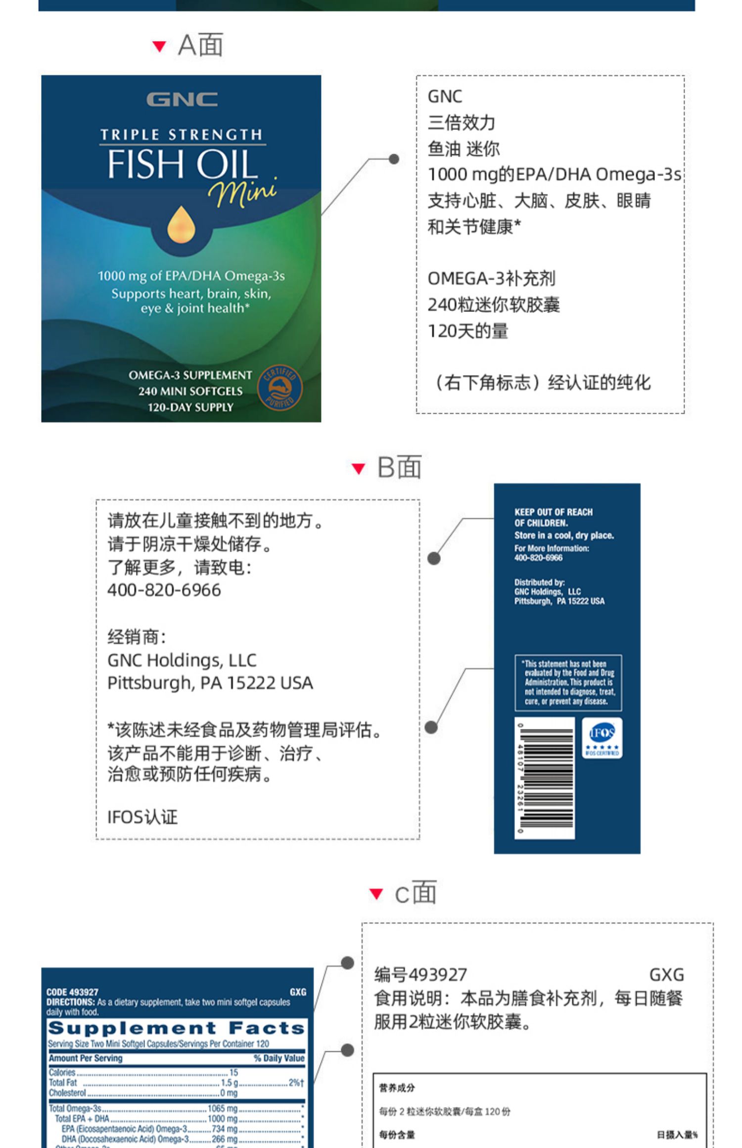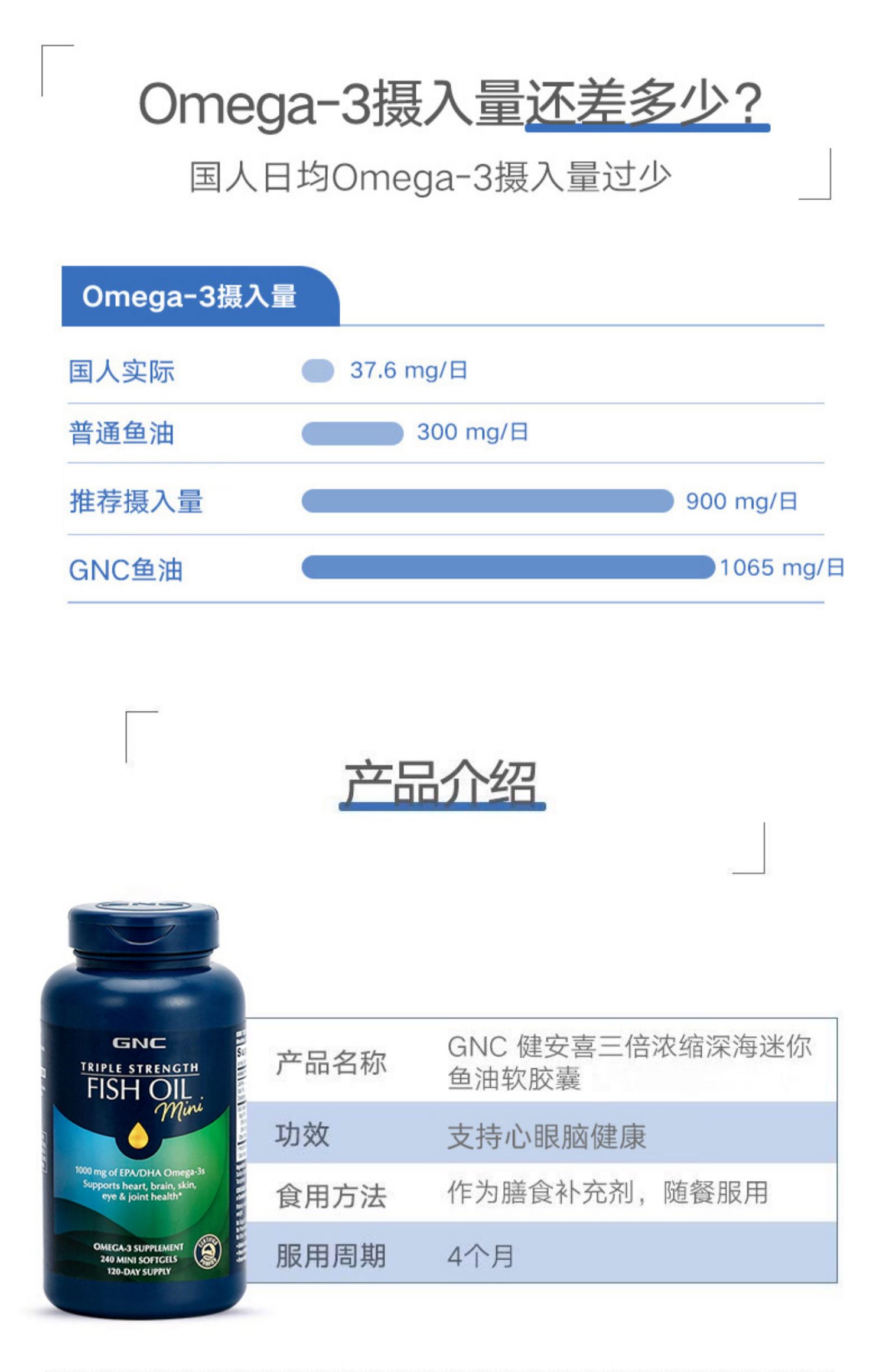 【保税仓】GNC健安喜三倍鱼油迷你软胶囊120粒韩国版