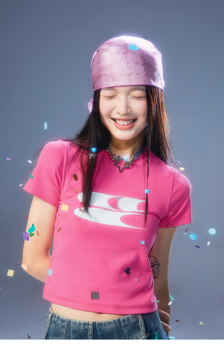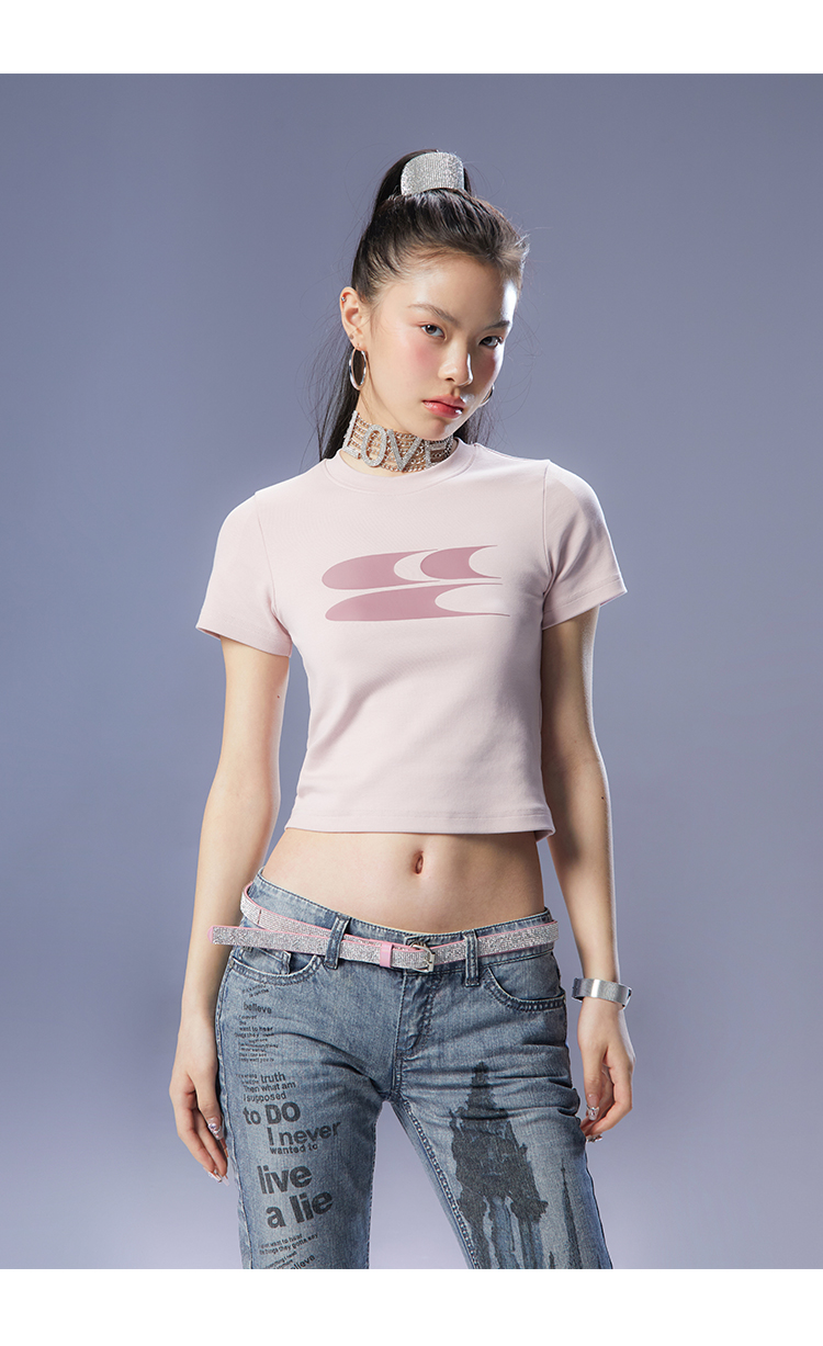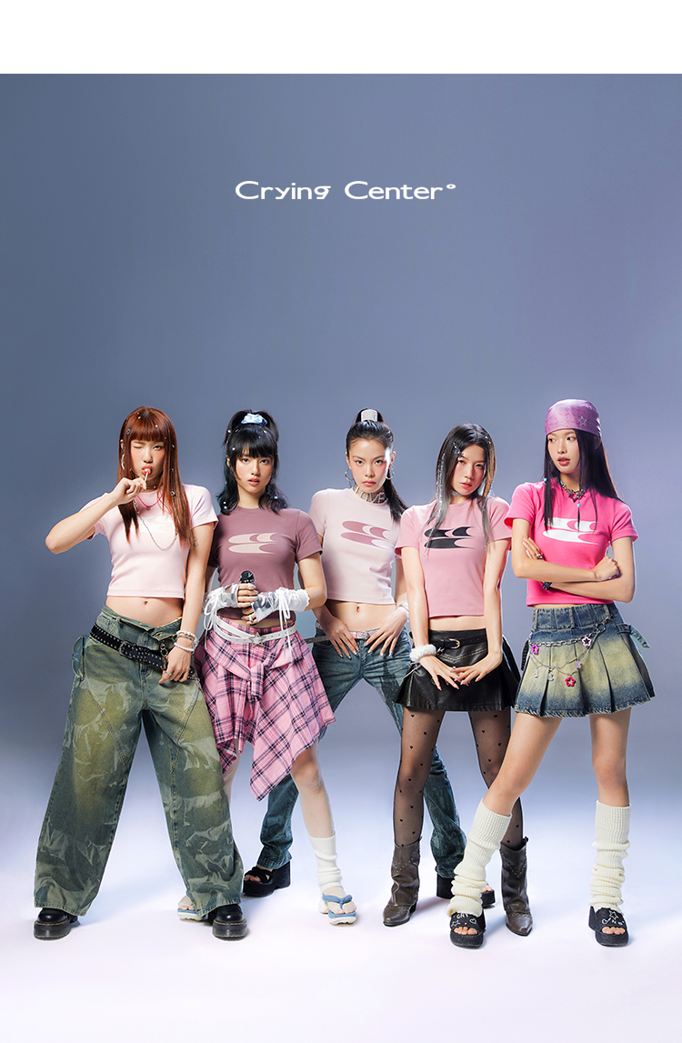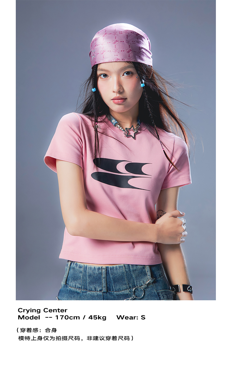 CryingCenter y2k千禧辣妹粉色美式复古圆领修身T恤 爵士街舞短t