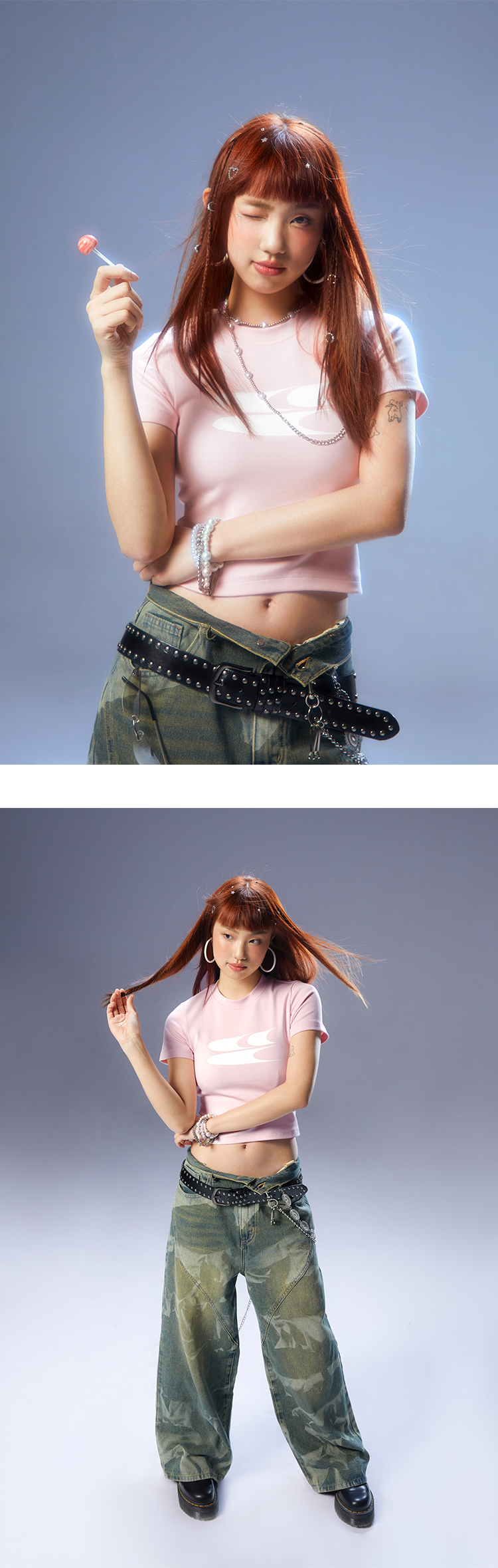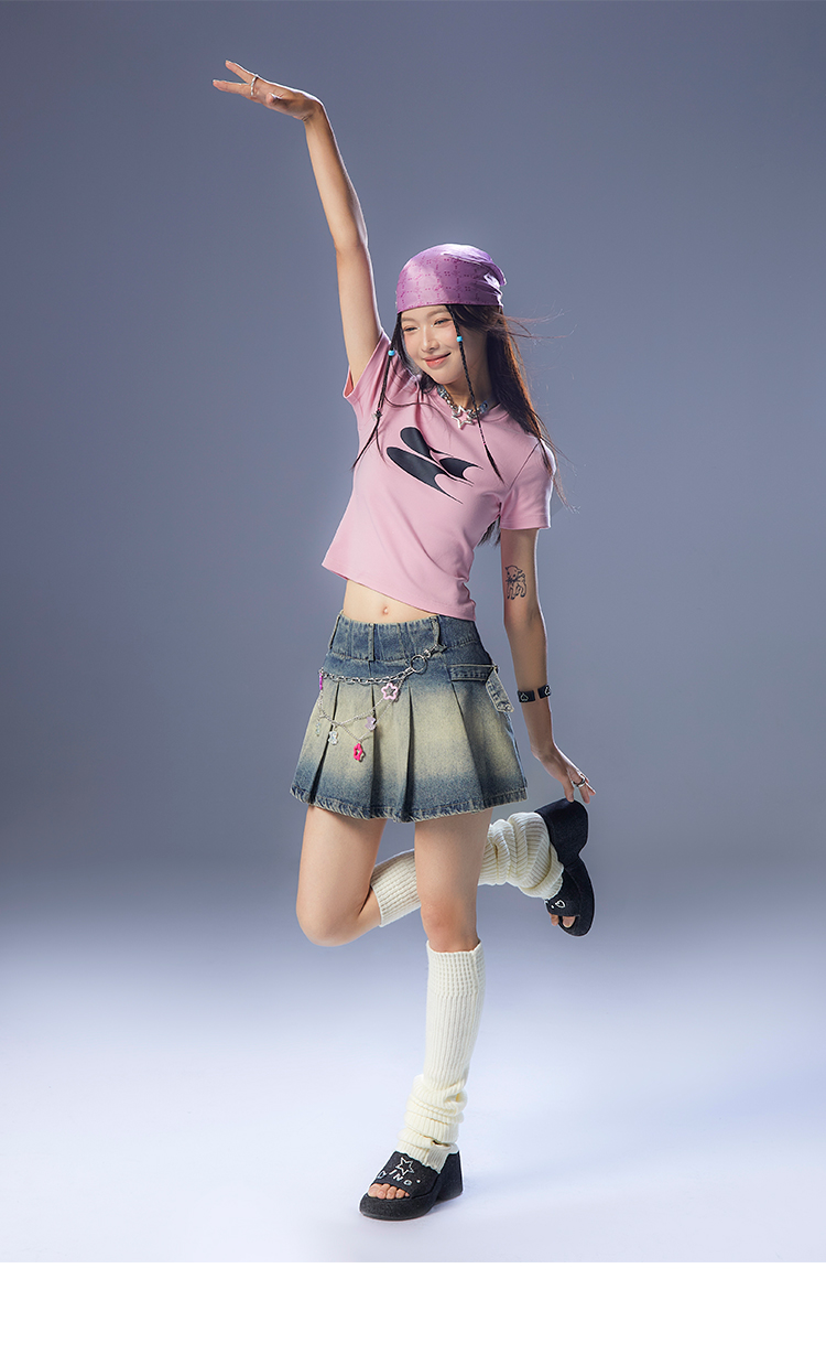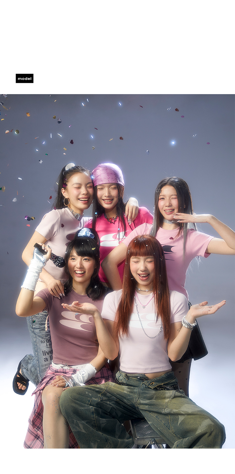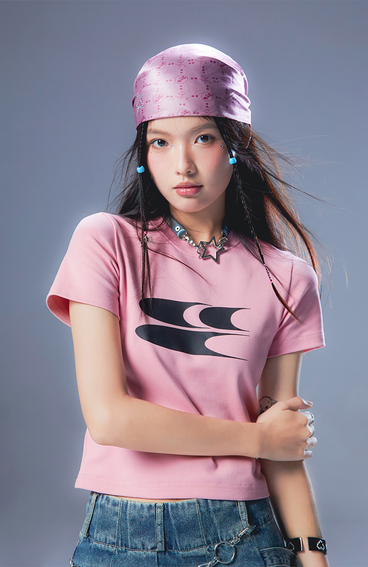 CryingCenter y2k千禧辣妹粉色美式复古圆领修身T恤 爵士街舞短t