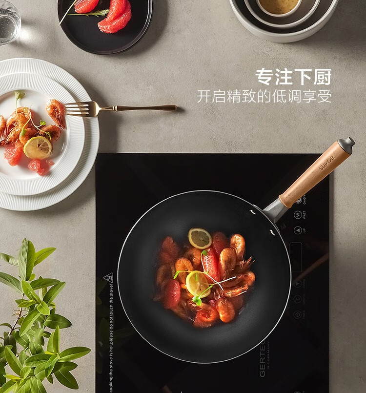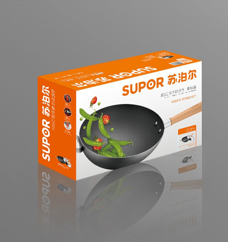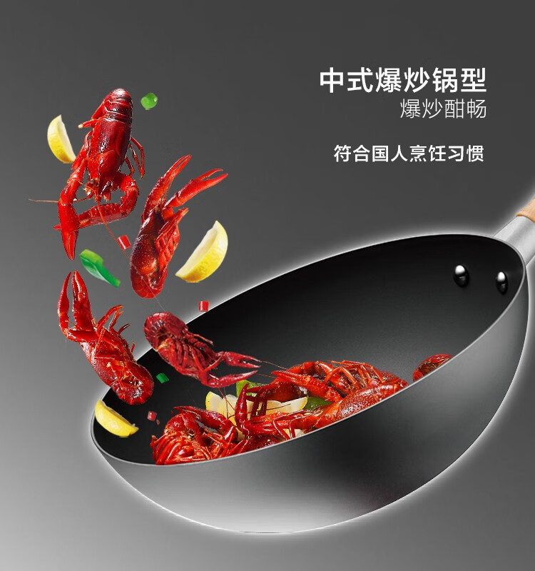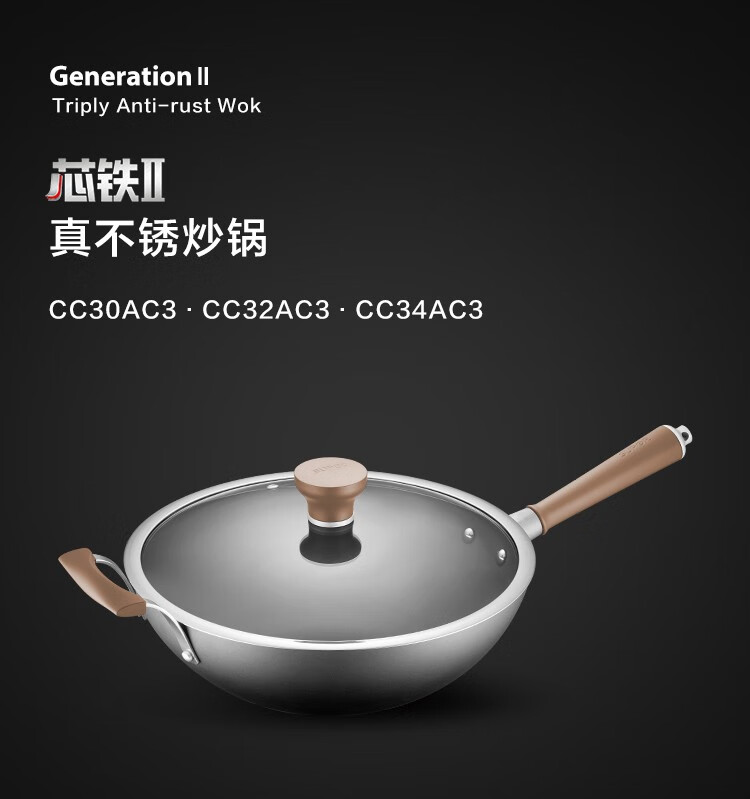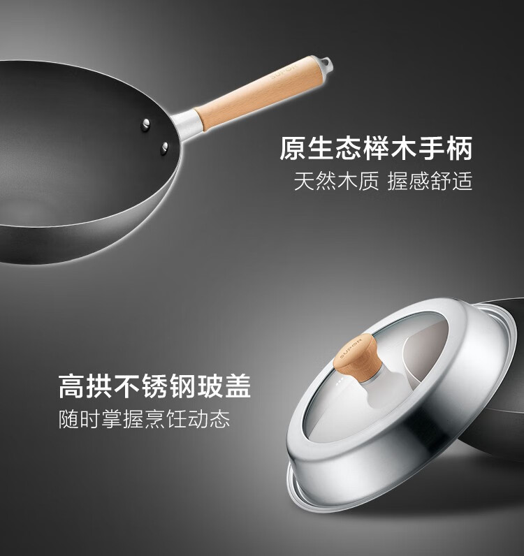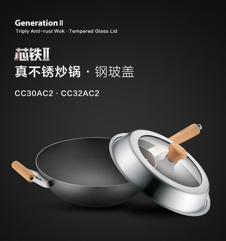 苏泊尔(SUPOR)真不锈芯铁Ⅱ代家用老式铁锅 燃气明火通用 少油烟炒菜锅 玻璃盖 32cm CC32AC3