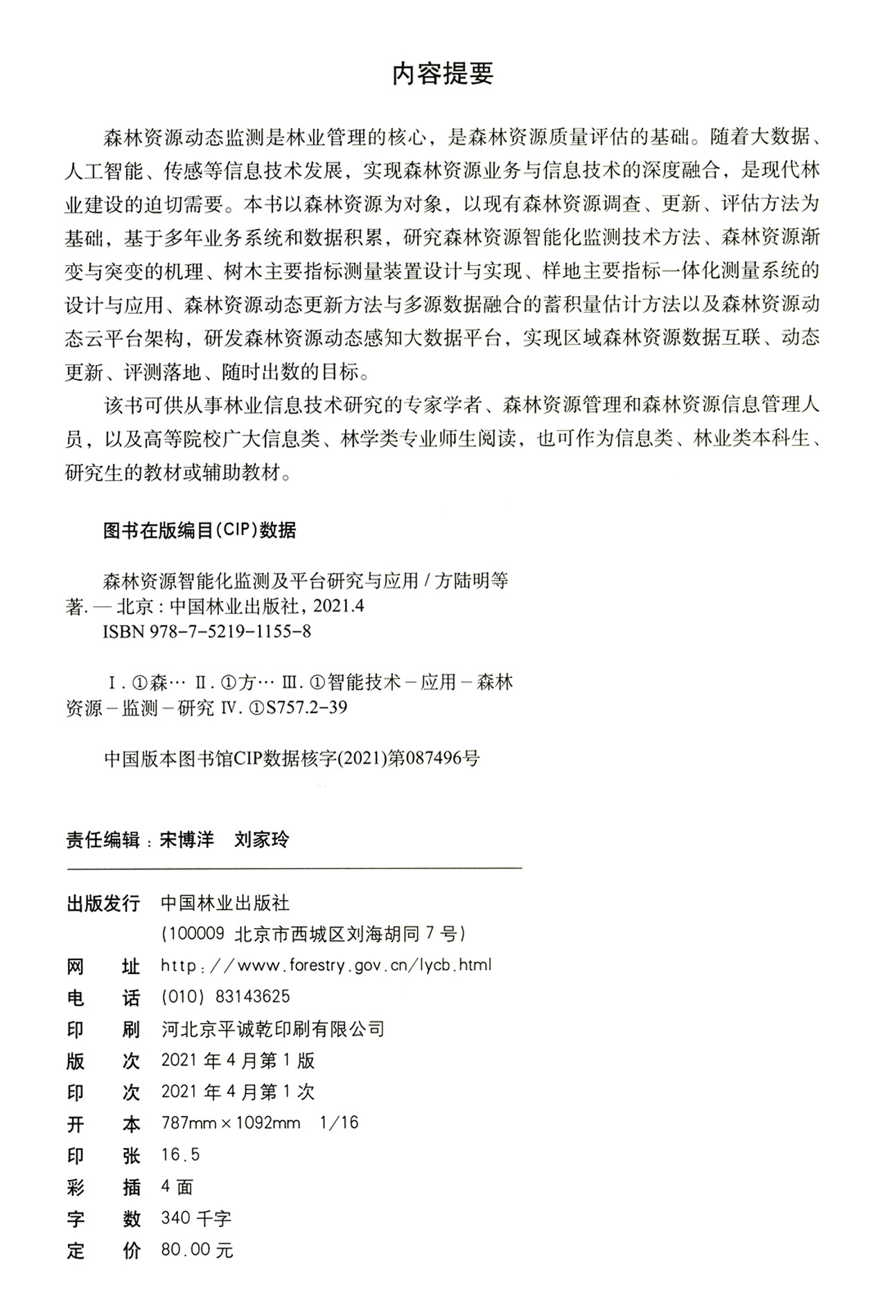 森林资源智能化监测及平台研究与应用 方陆明//吴达胜//楼雄伟//郑辛煜//翁卫松 1155 中国林业出版社