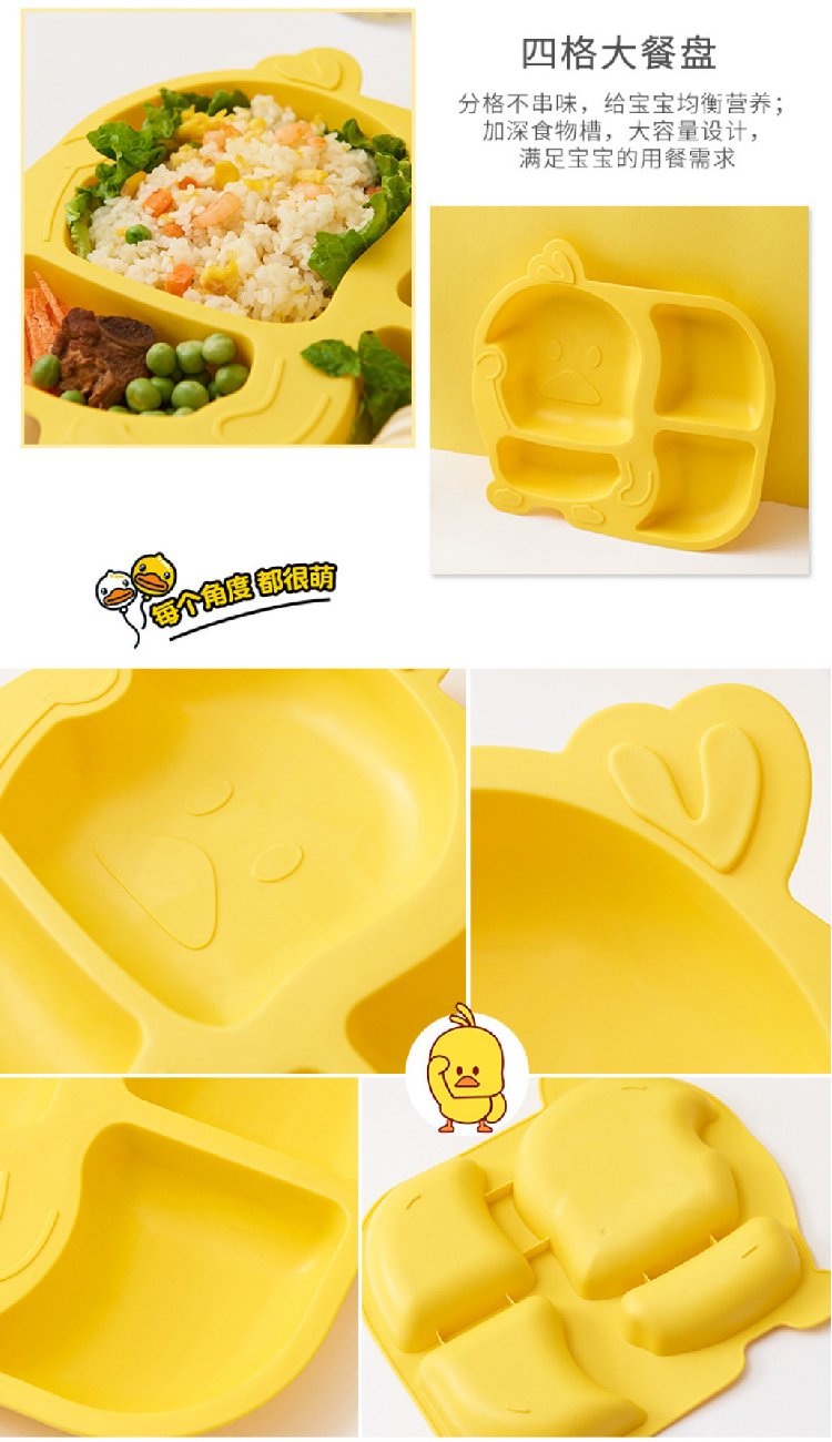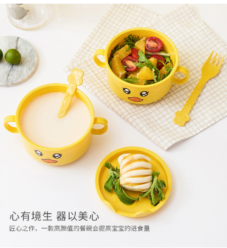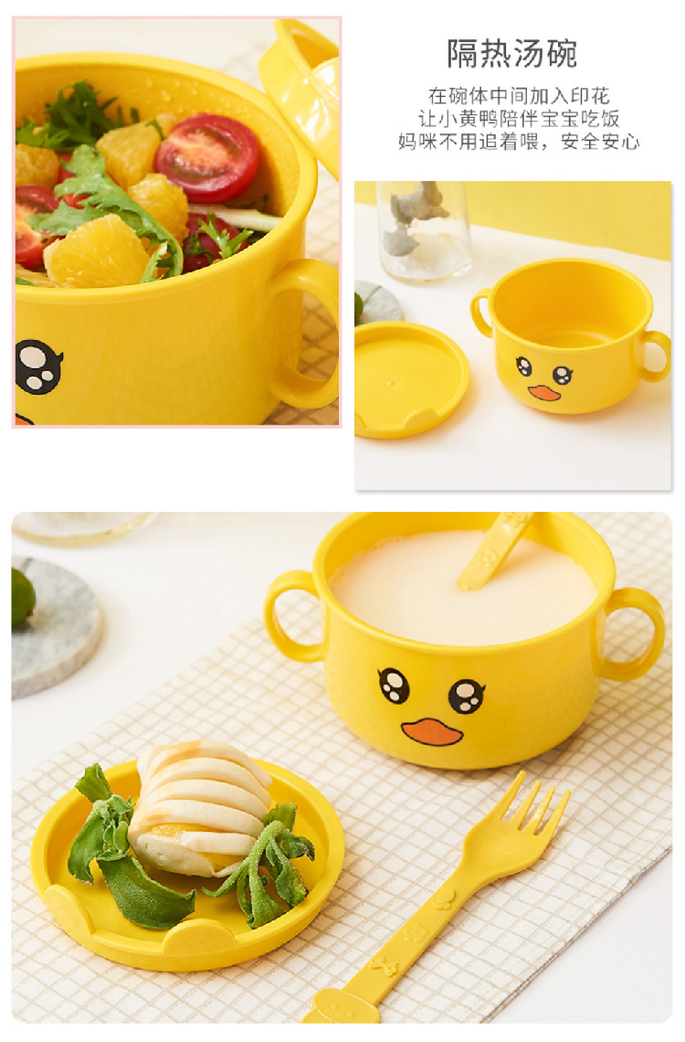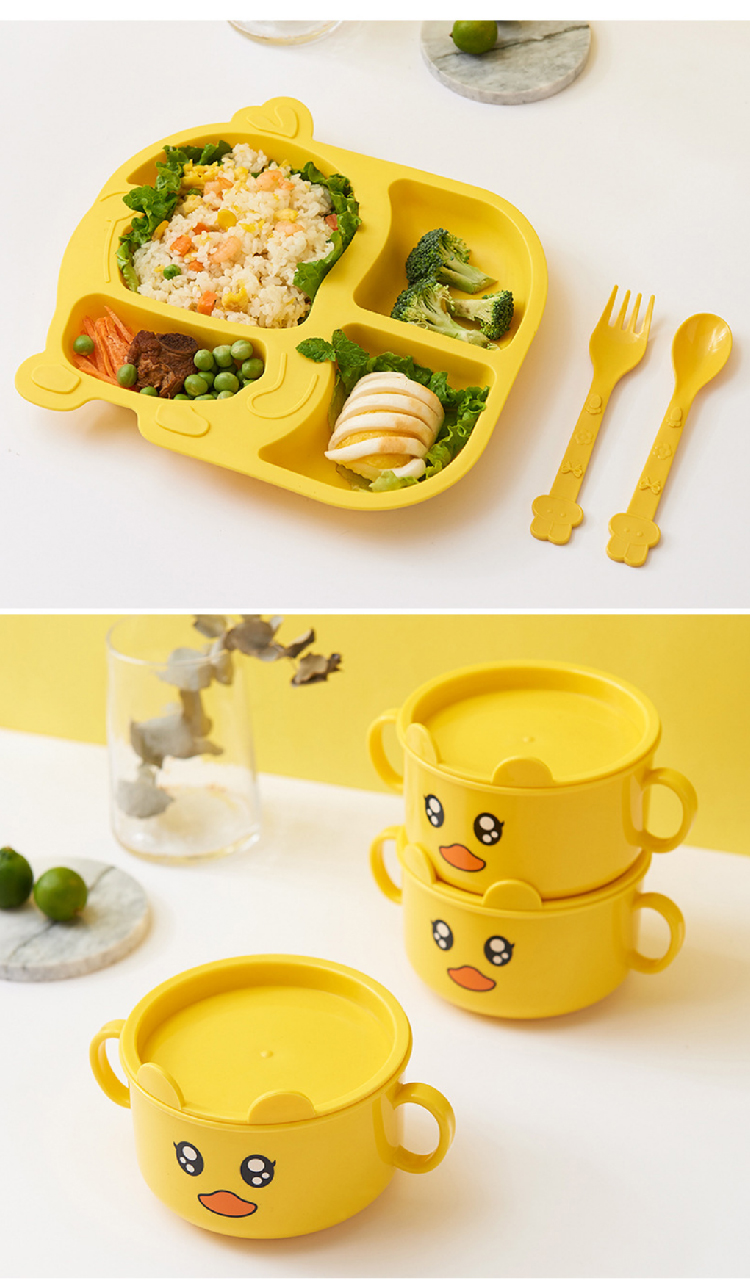 【小黄鸭儿童餐具5件套】创意时尚卡通宝宝餐具餐盘 家用防摔分格卡通套装辅食碗