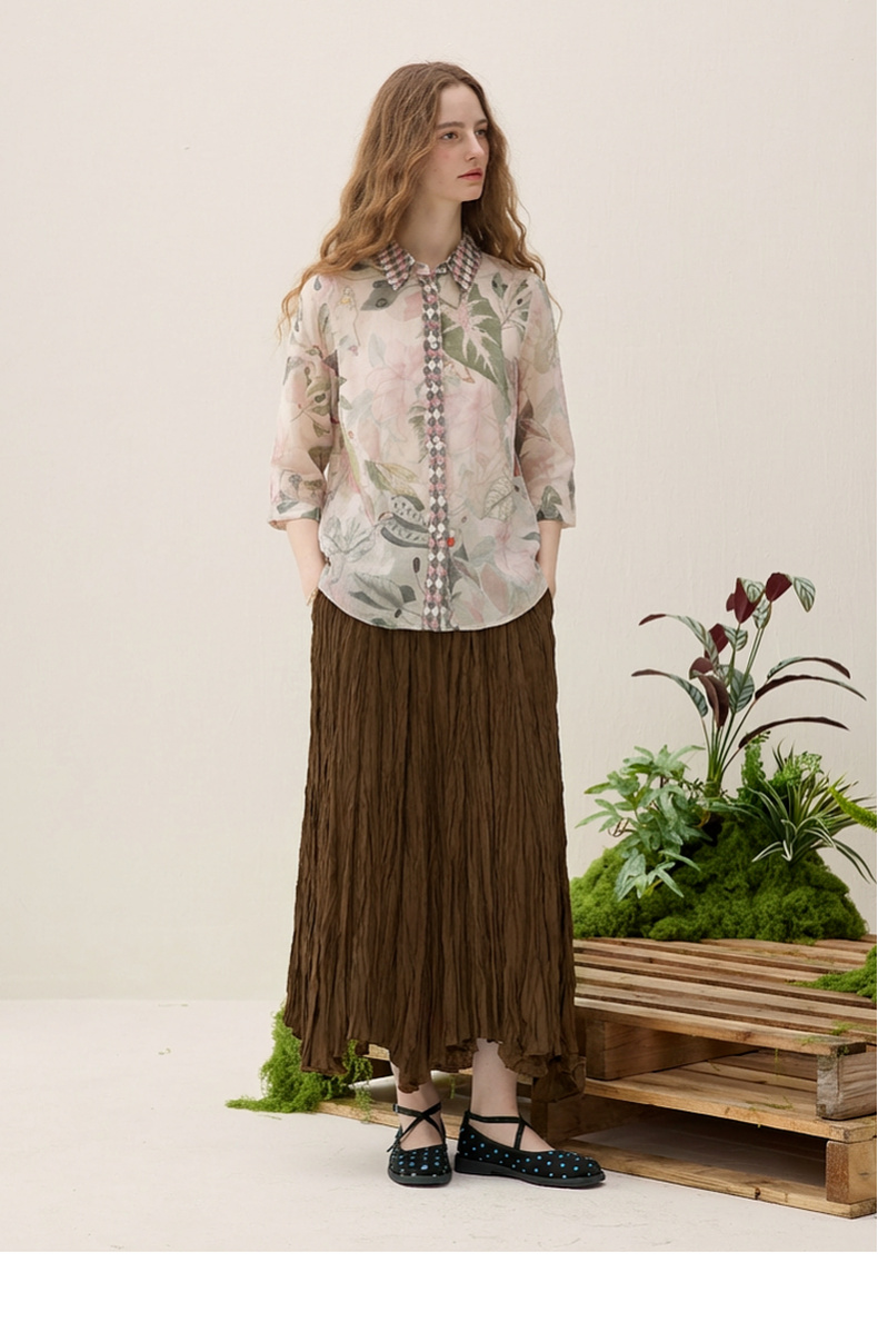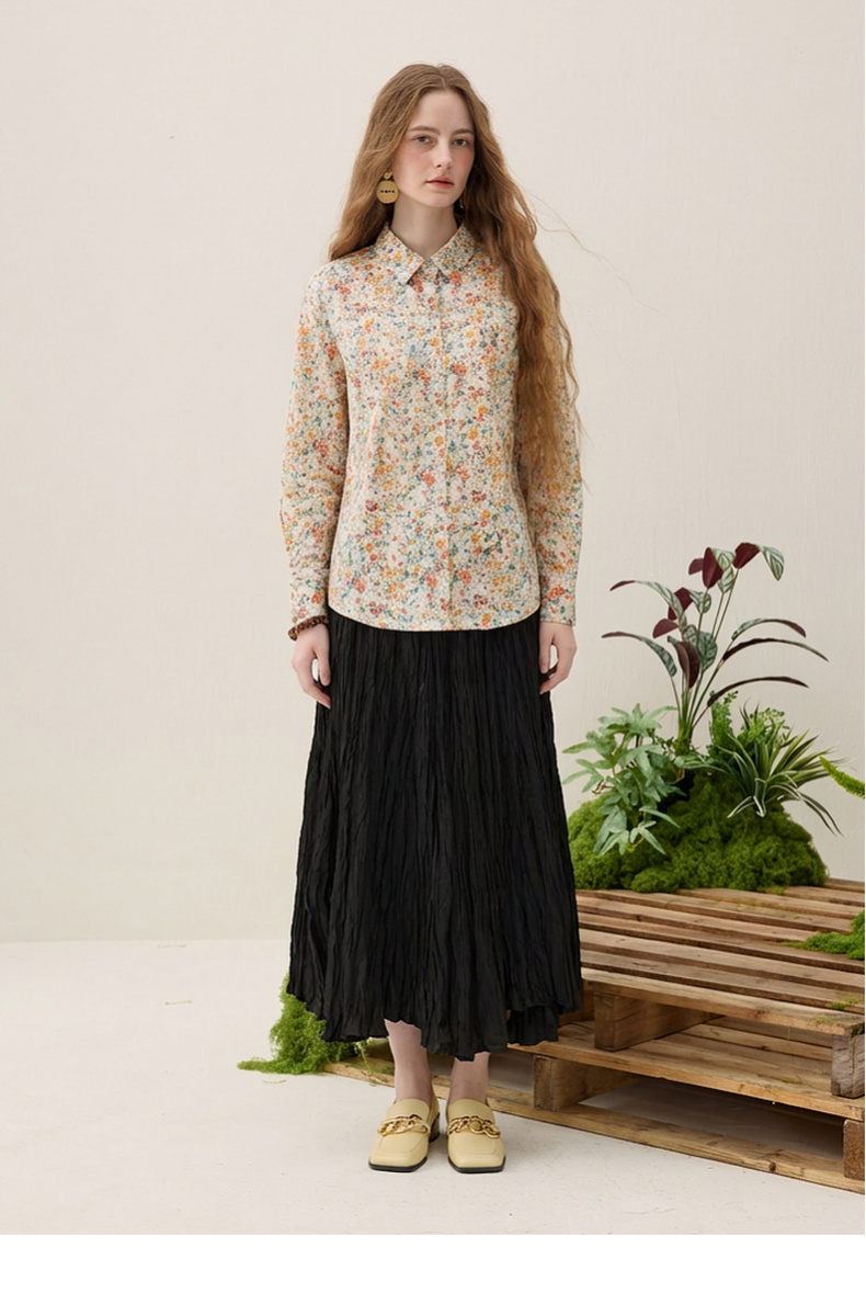 谜底褶皱感半身裙2026春季新品优雅浪漫大摆裙长半裙女265MB5013