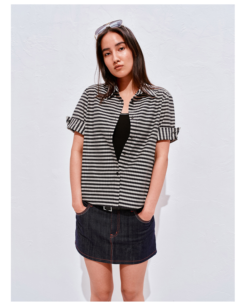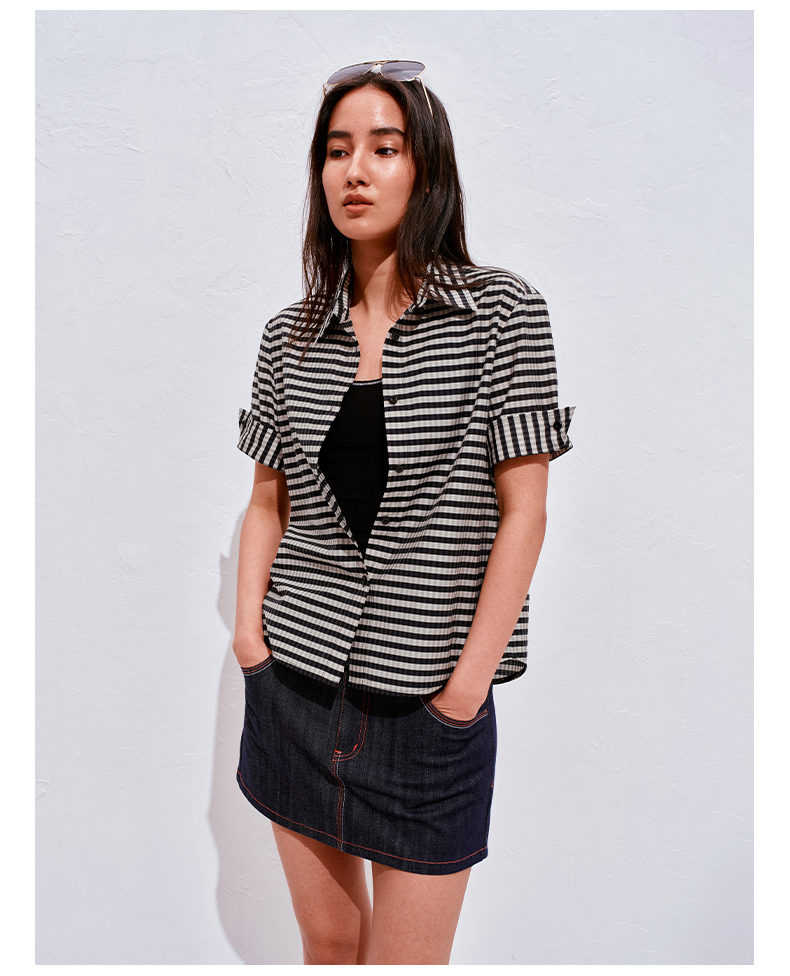 NUTH 凉感液氨纯棉低领修身显瘦短袖t恤女