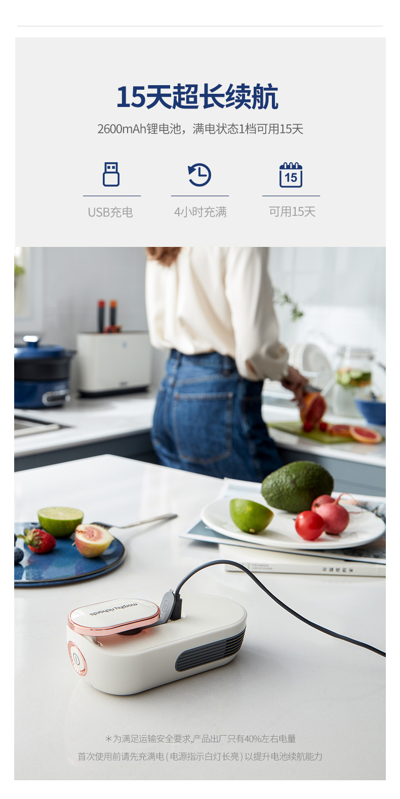 摩飞电器(Morphyrichards)冰箱除味器臭氧杀菌净化器消毒去异味MR2060 椰奶白