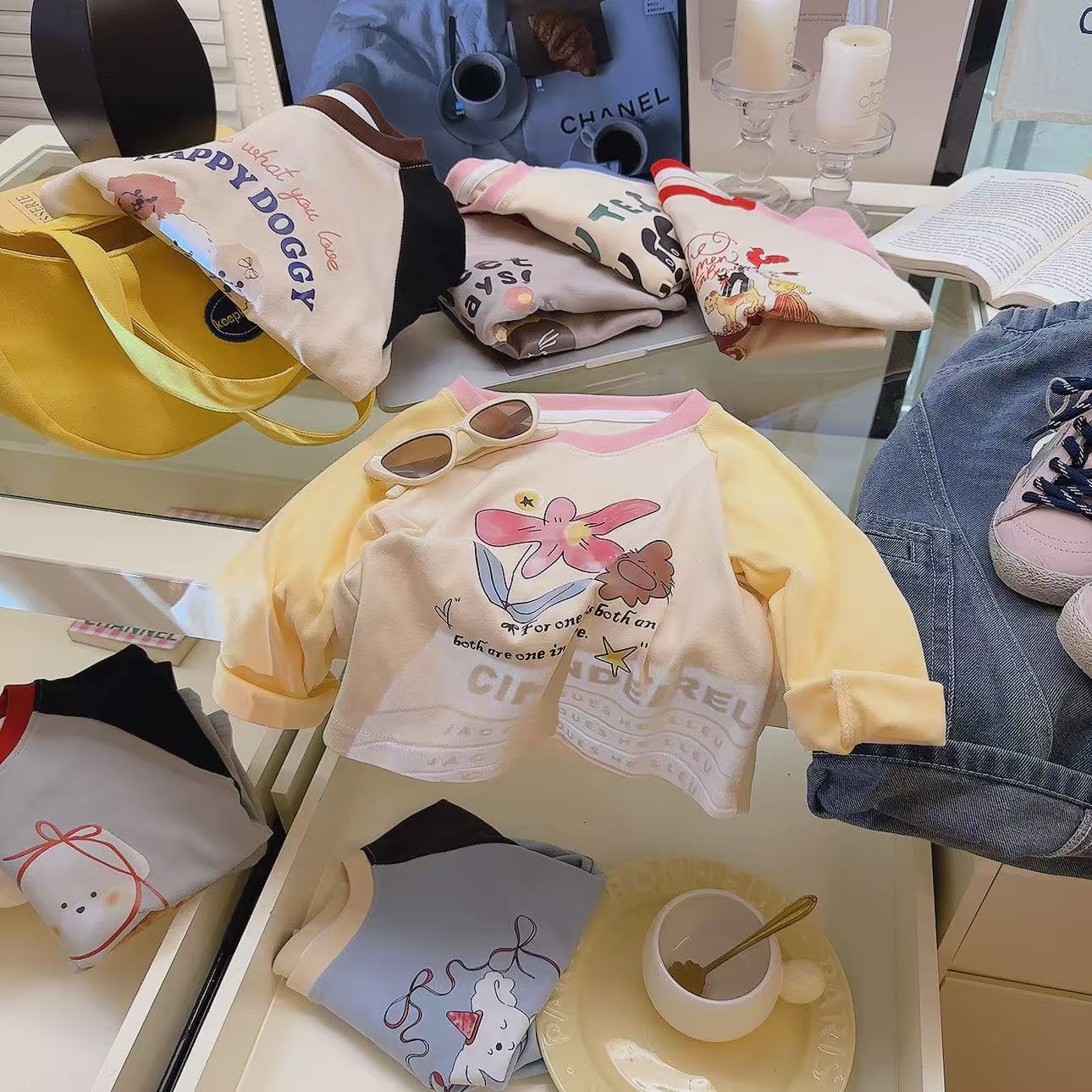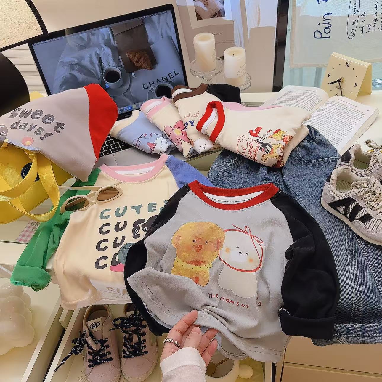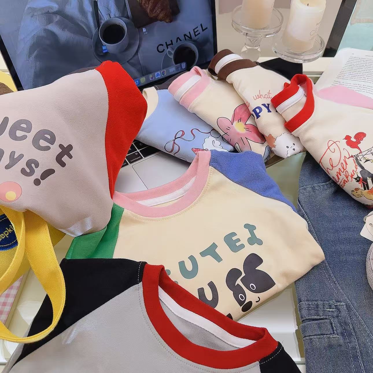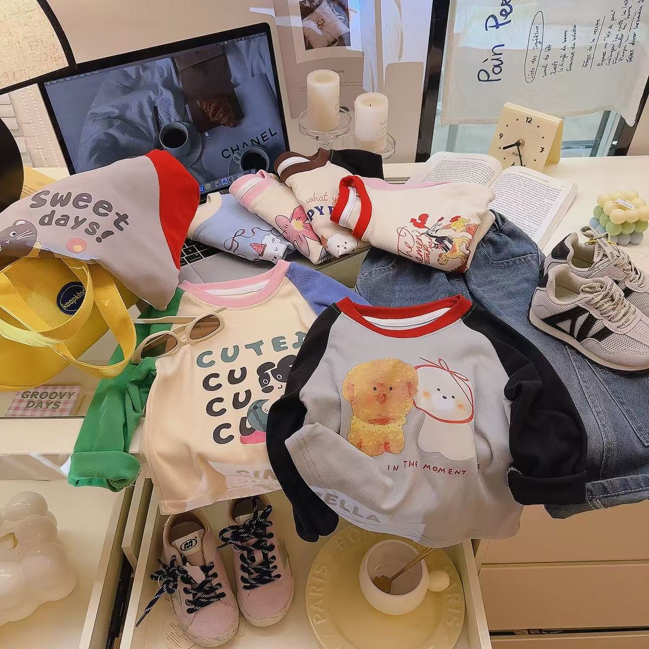 【🥰绝美穿搭39.9元任选3件 】90-160码儿童插肩撞色秋冬款长袖T恤卡通洋气上衣聚