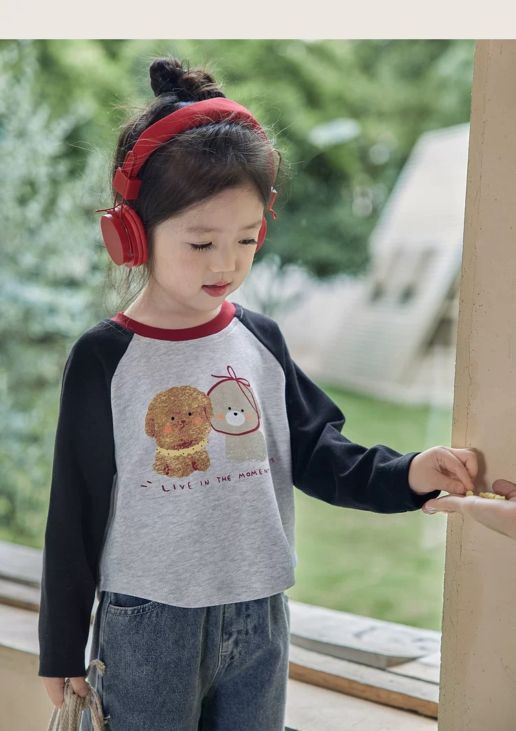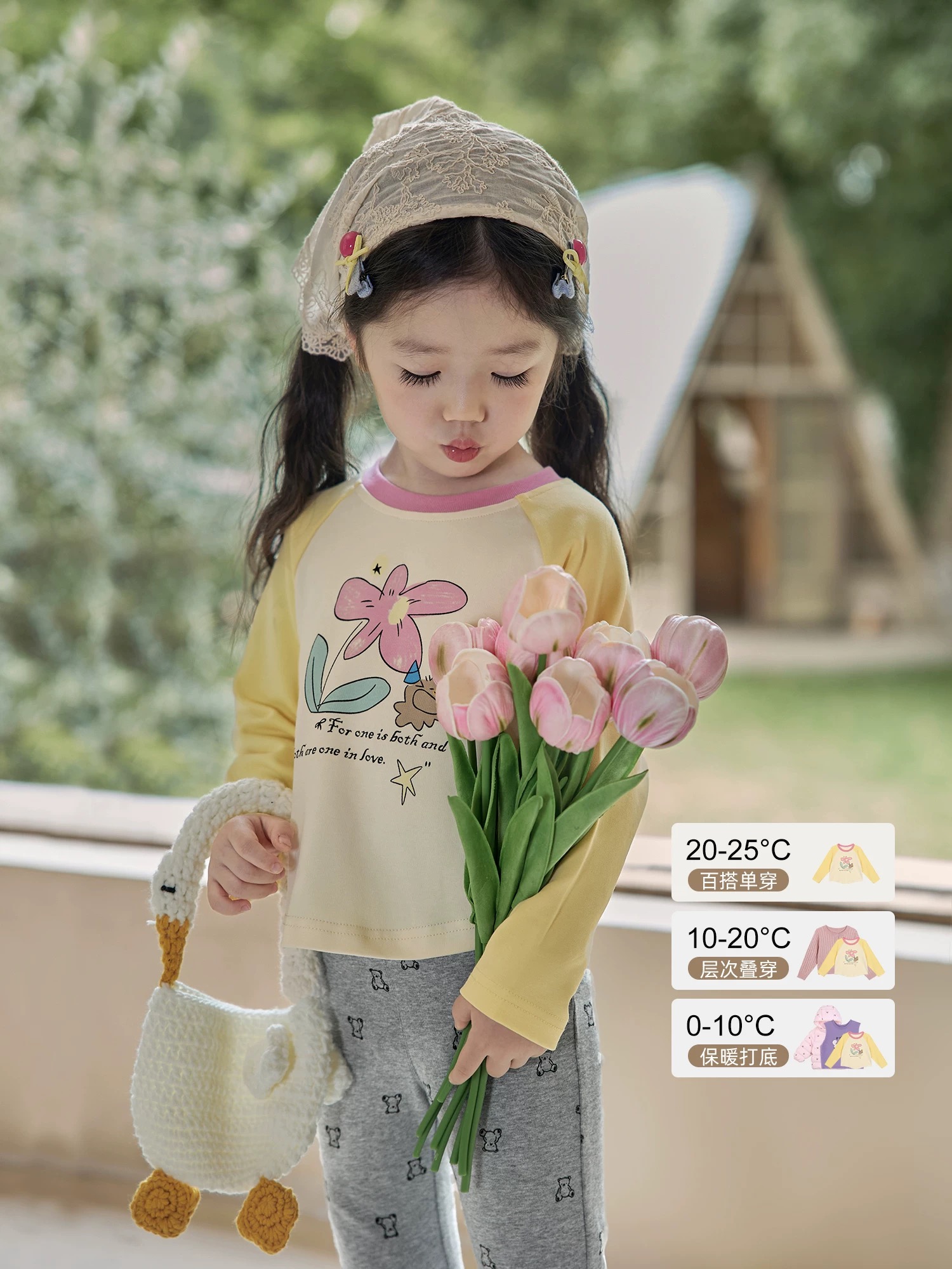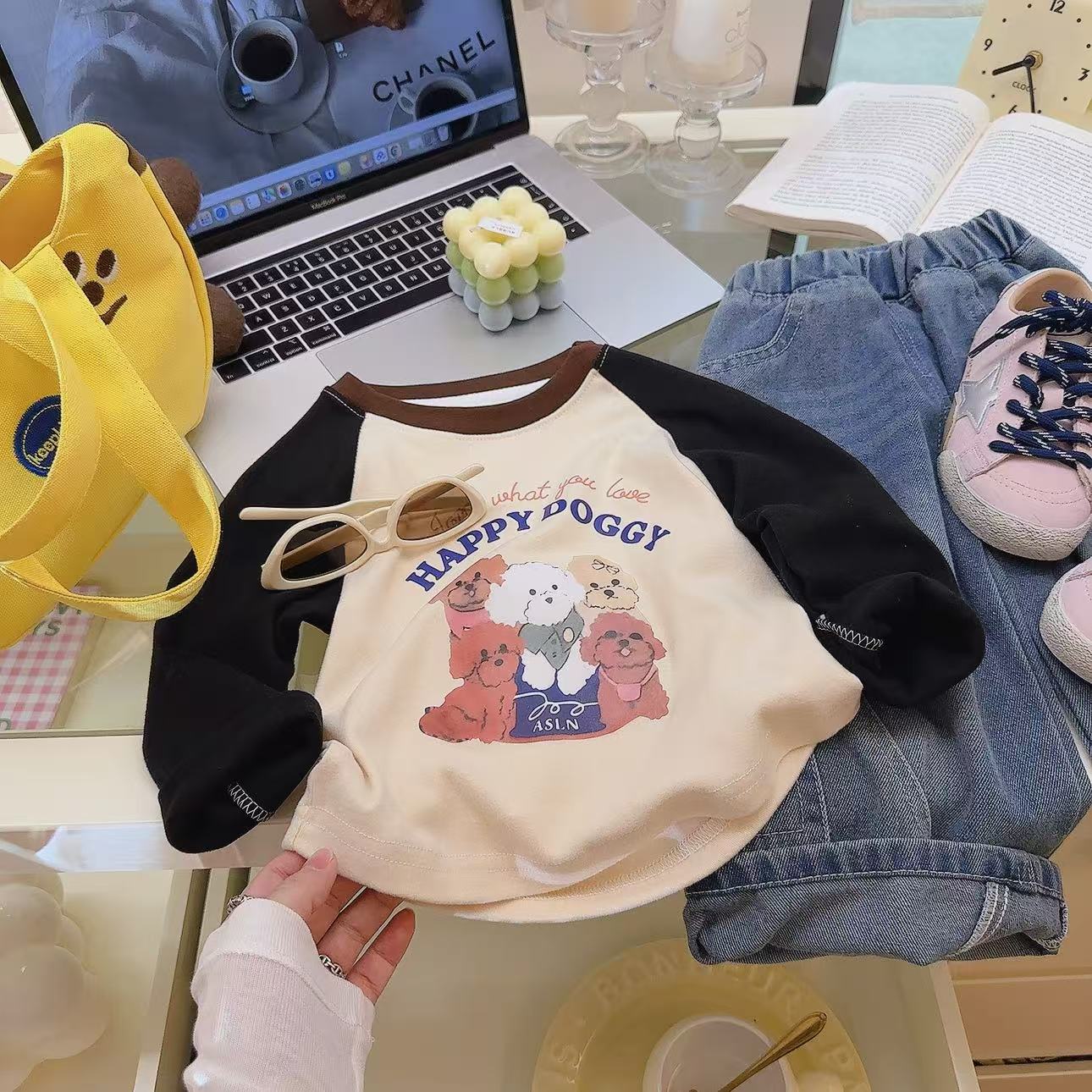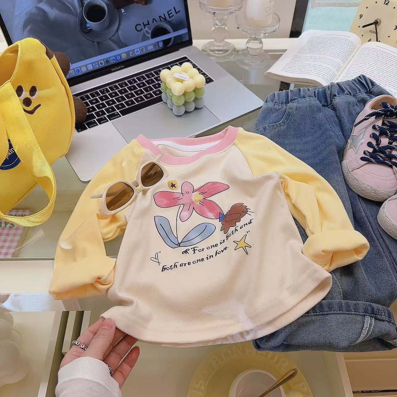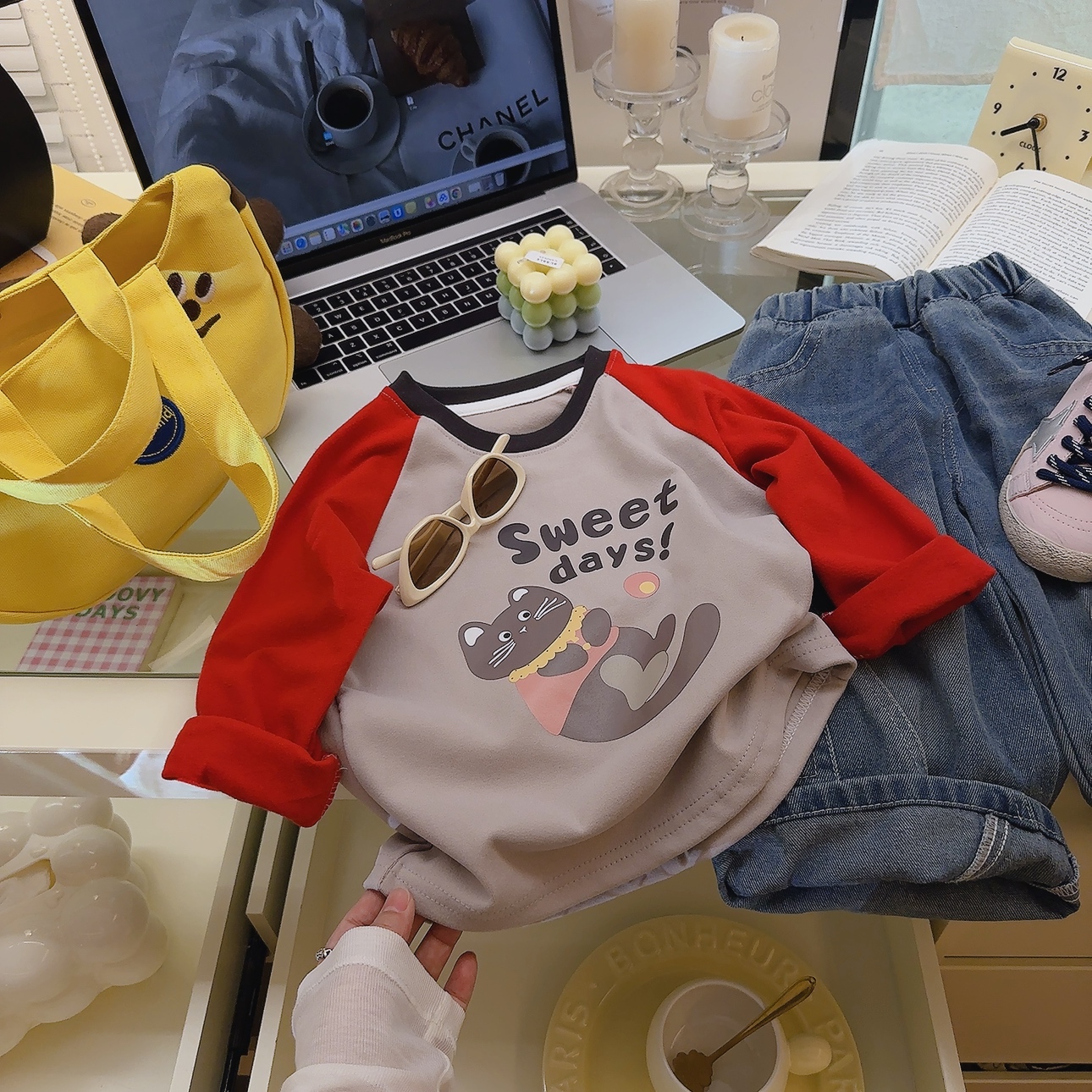 【🥰绝美穿搭39.9元任选3件 】90-160码儿童插肩撞色秋冬款长袖T恤卡通洋气上衣聚