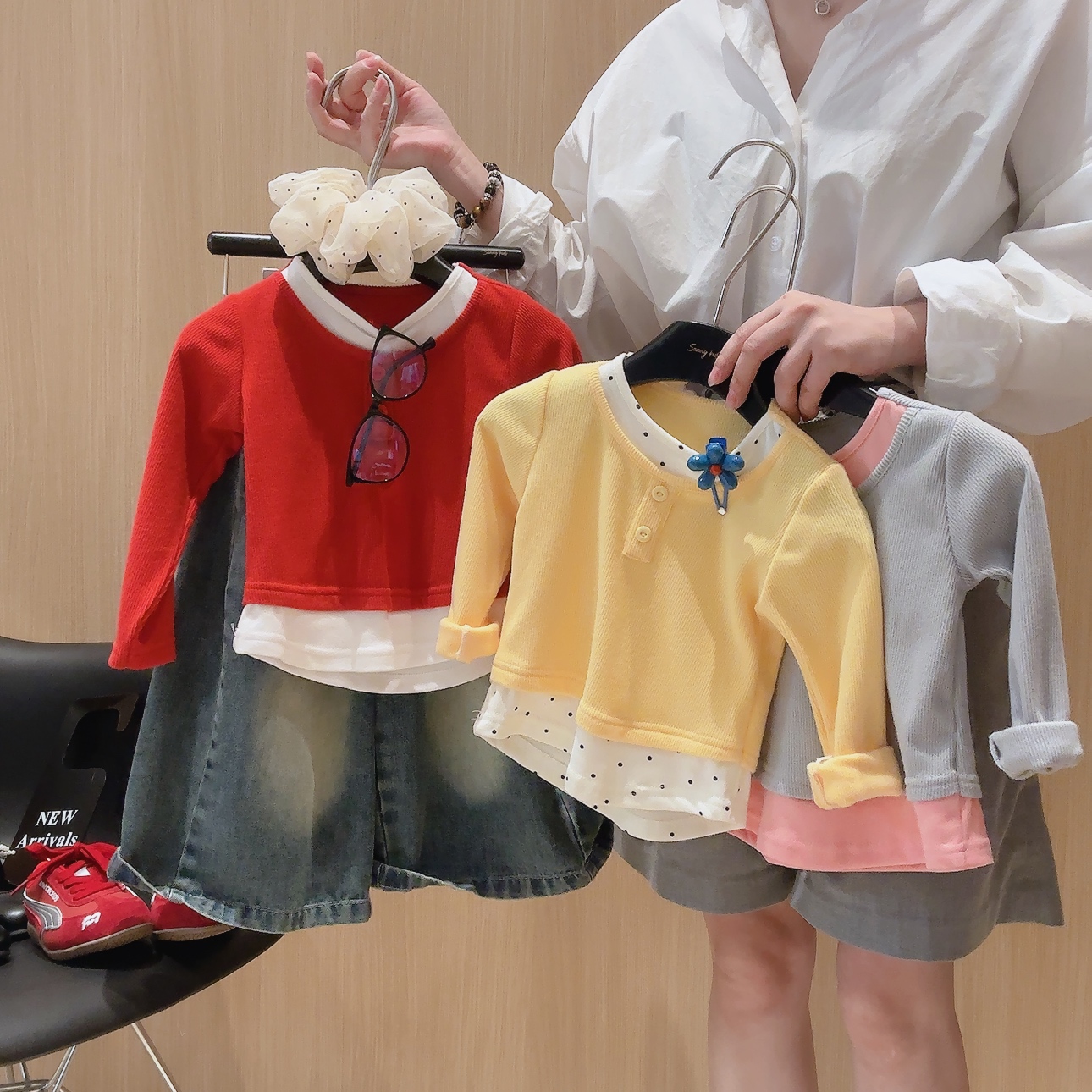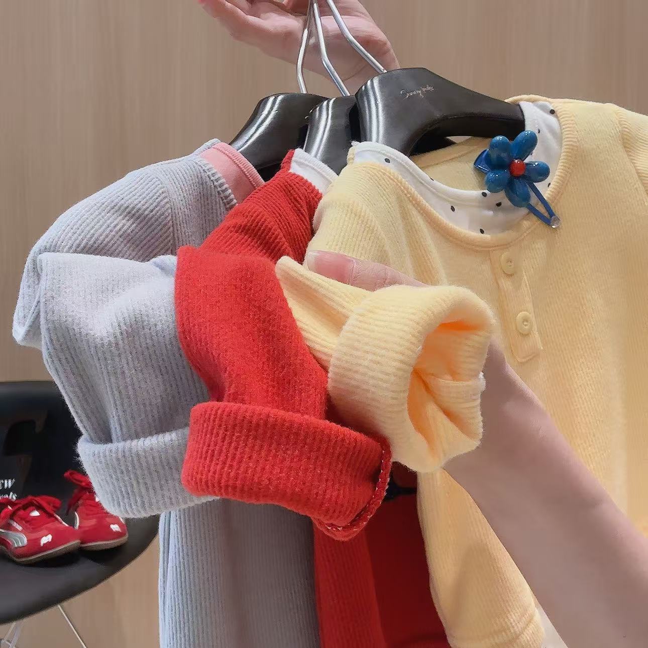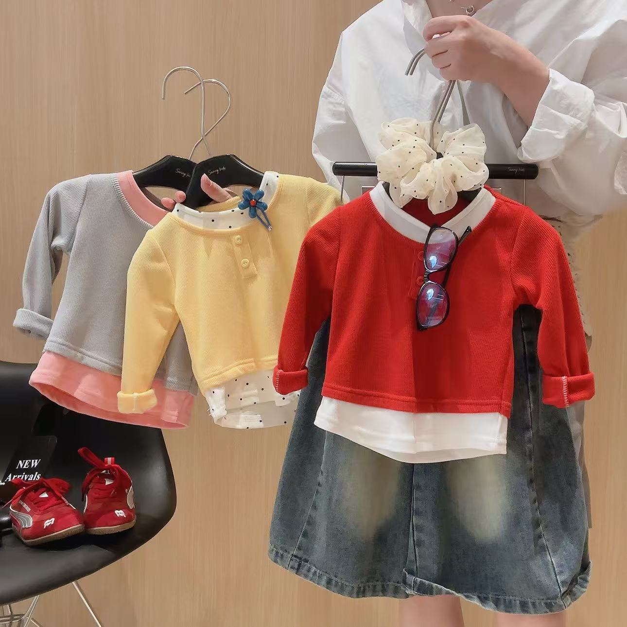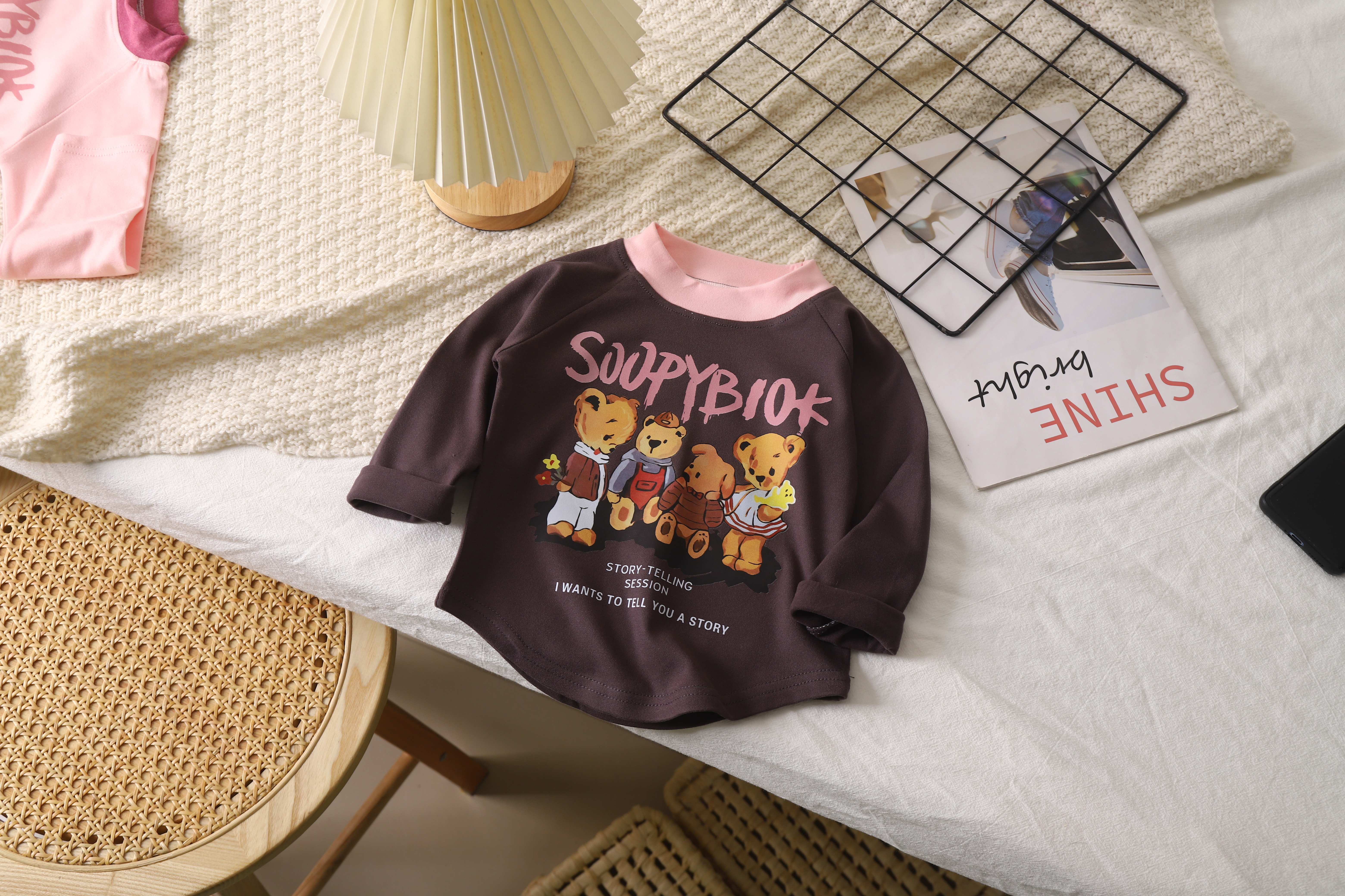 【🥰绝美穿搭39.9元任选3件 】90-160码儿童插肩撞色秋冬款长袖T恤卡通洋气上衣聚