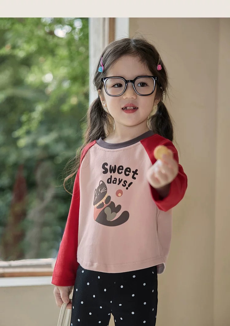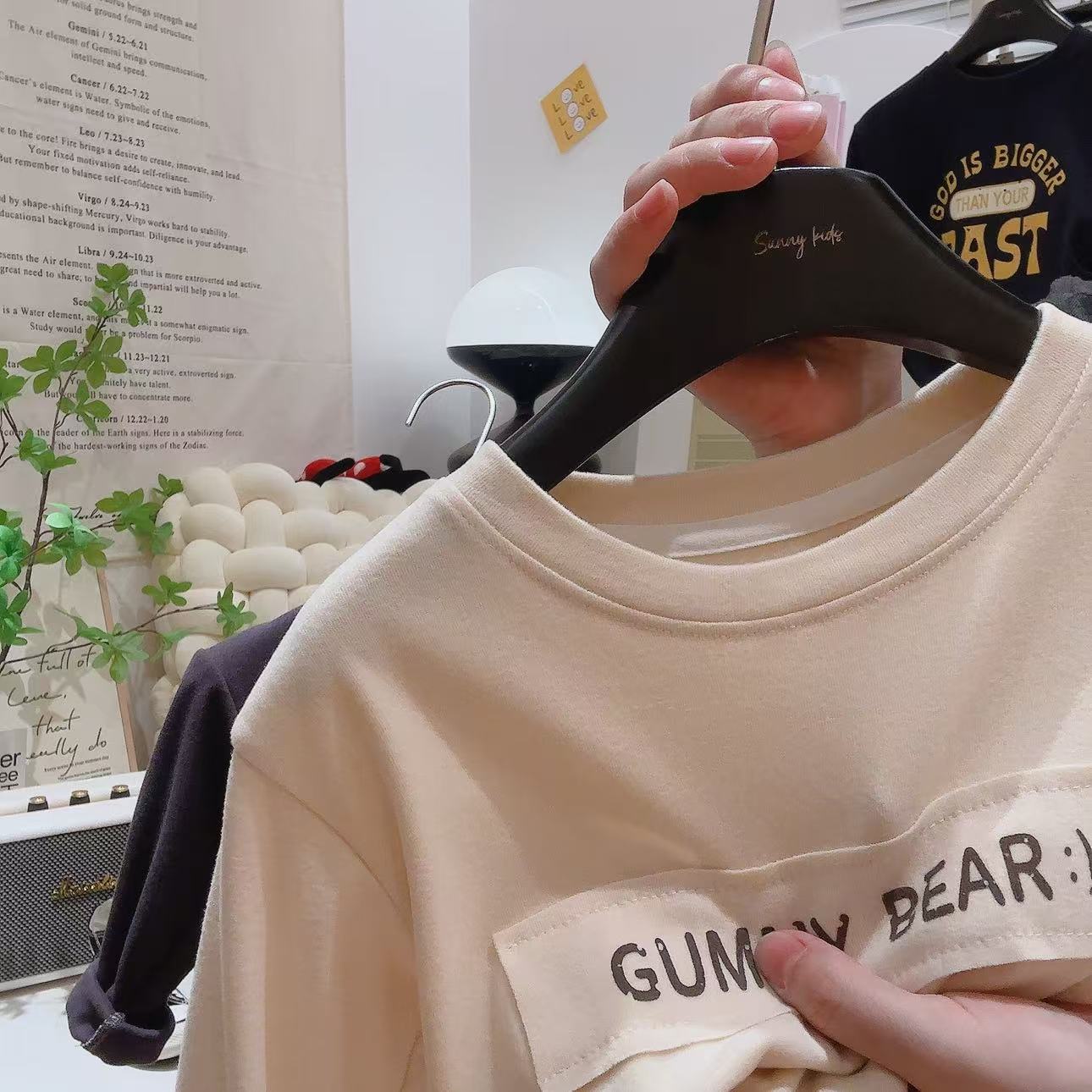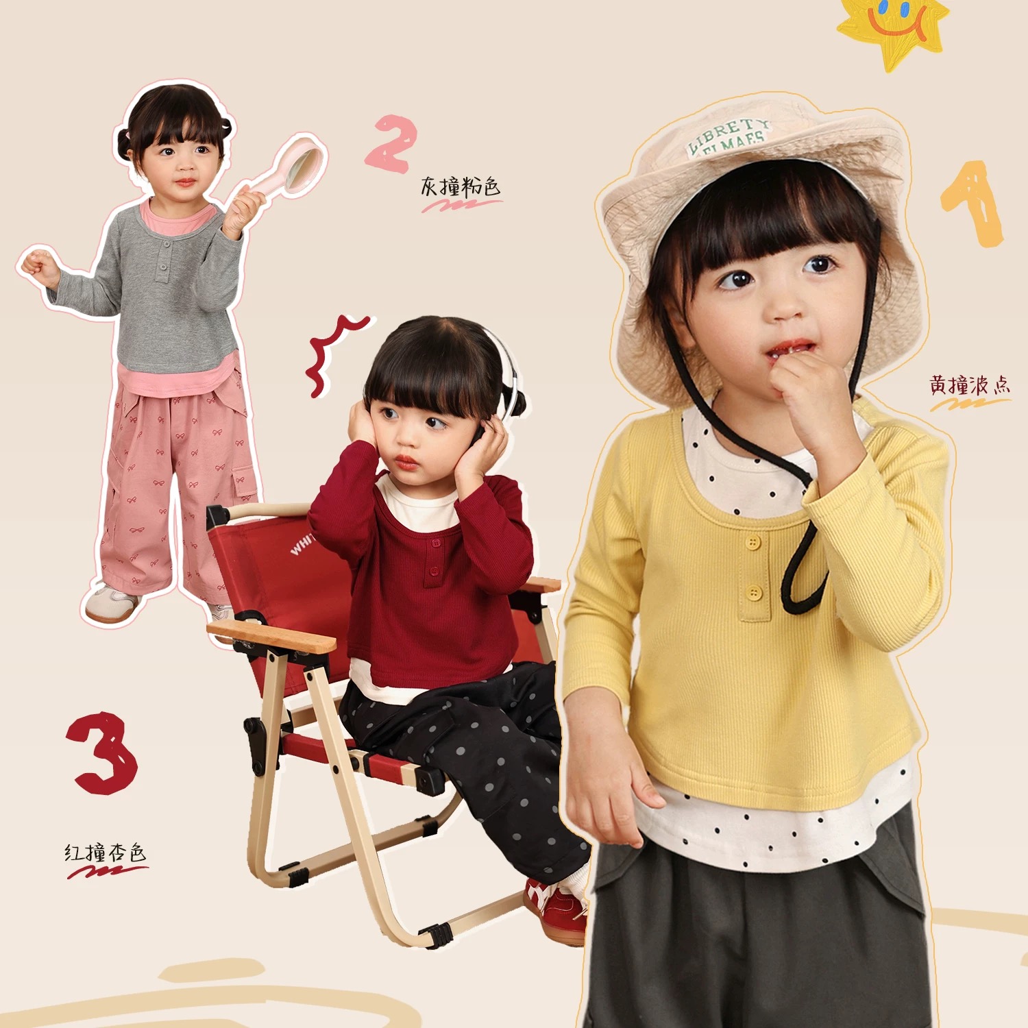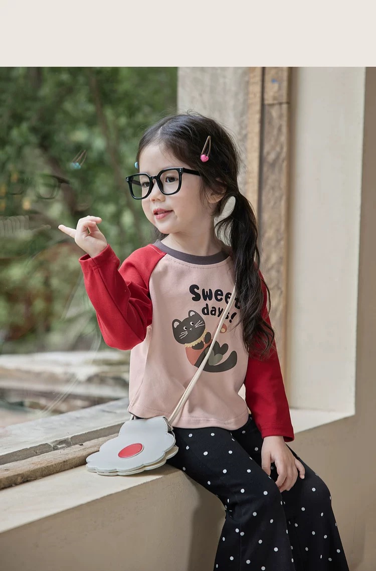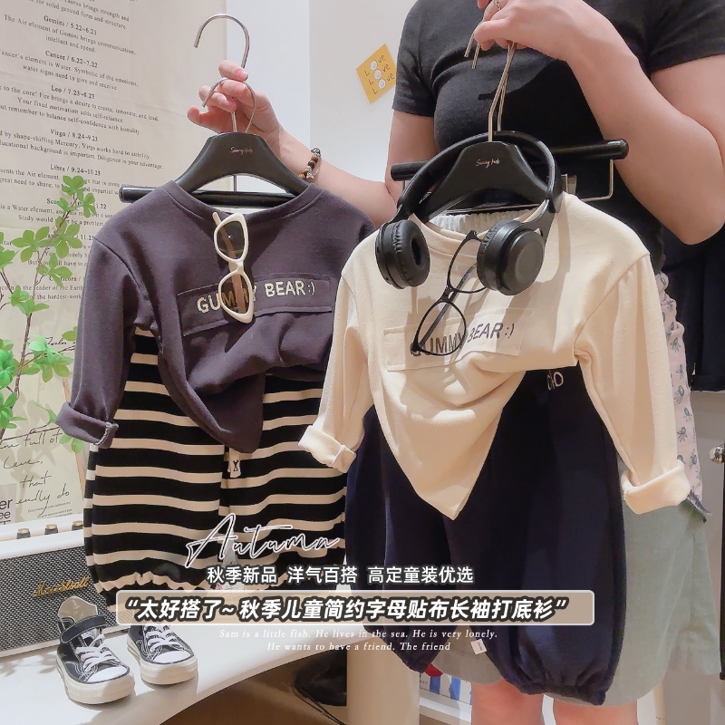 今年最流行的✅【绝美穿搭韩系】儿童拼接插肩袖长袖T,简单大方美式复古,上学、出街、运动、居家都满分💯的一件~