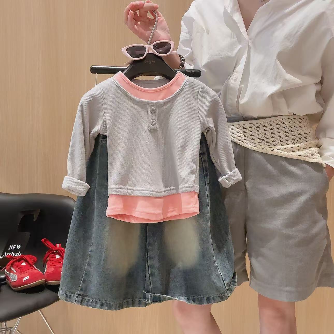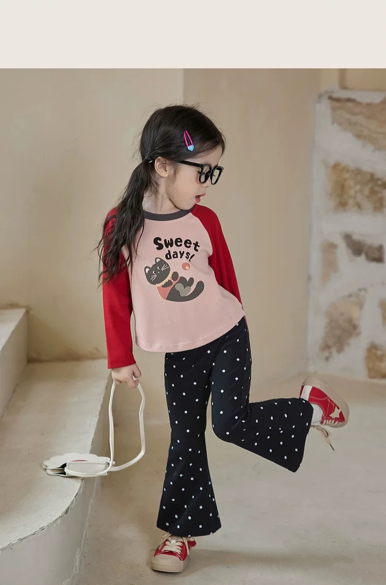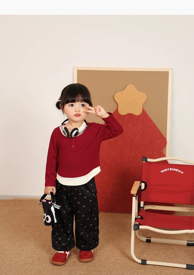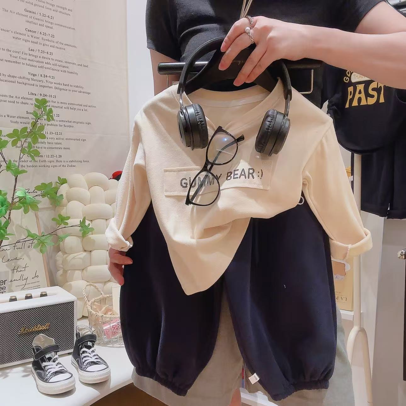 今年最流行的✅【绝美穿搭韩系】儿童拼接插肩袖长袖T,简单大方美式复古,上学、出街、运动、居家都满分💯的一件~