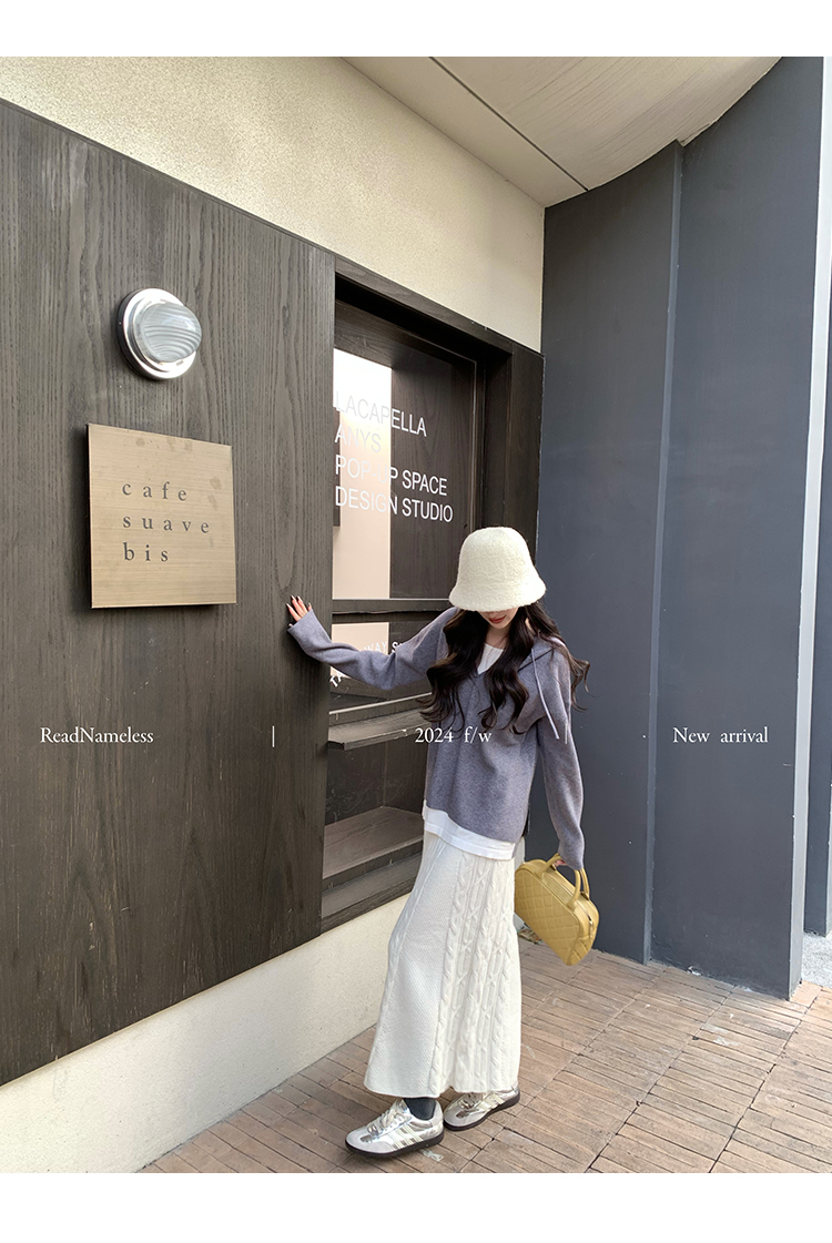 Read Nameless /天柔纱灰色假两件帽衫+奶白麻花针织半裙 2024/10/21