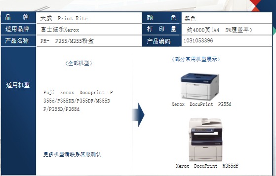 天威 P355 M355粉盒适用富士 施乐P355d M355df P368d 355db CT201939 CT201940 CT350973打印机
