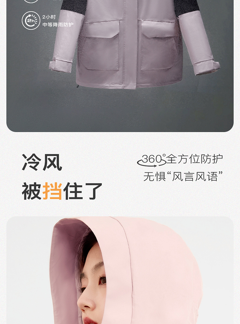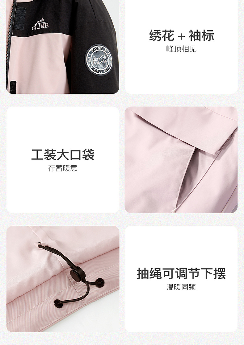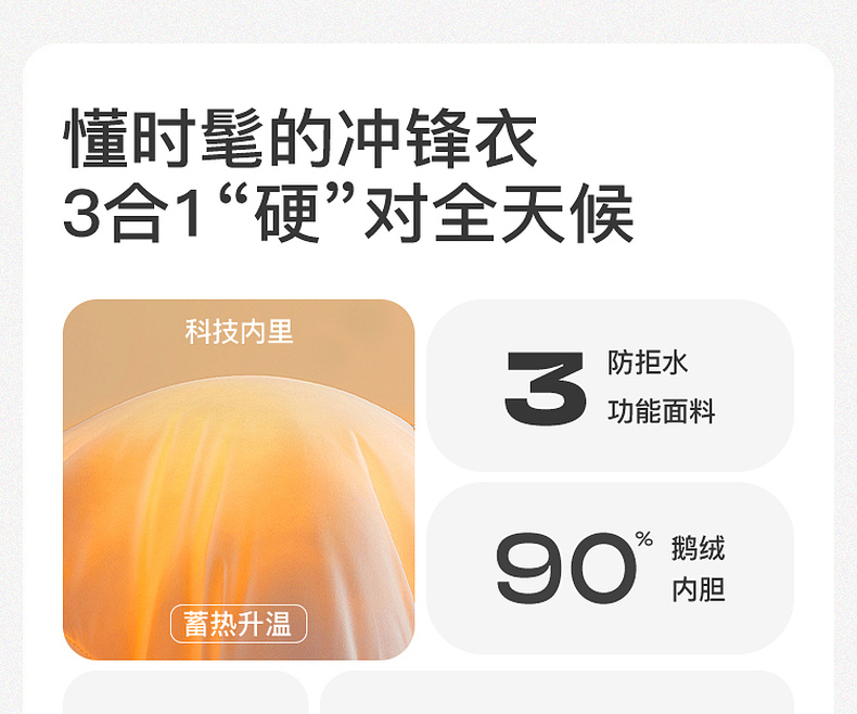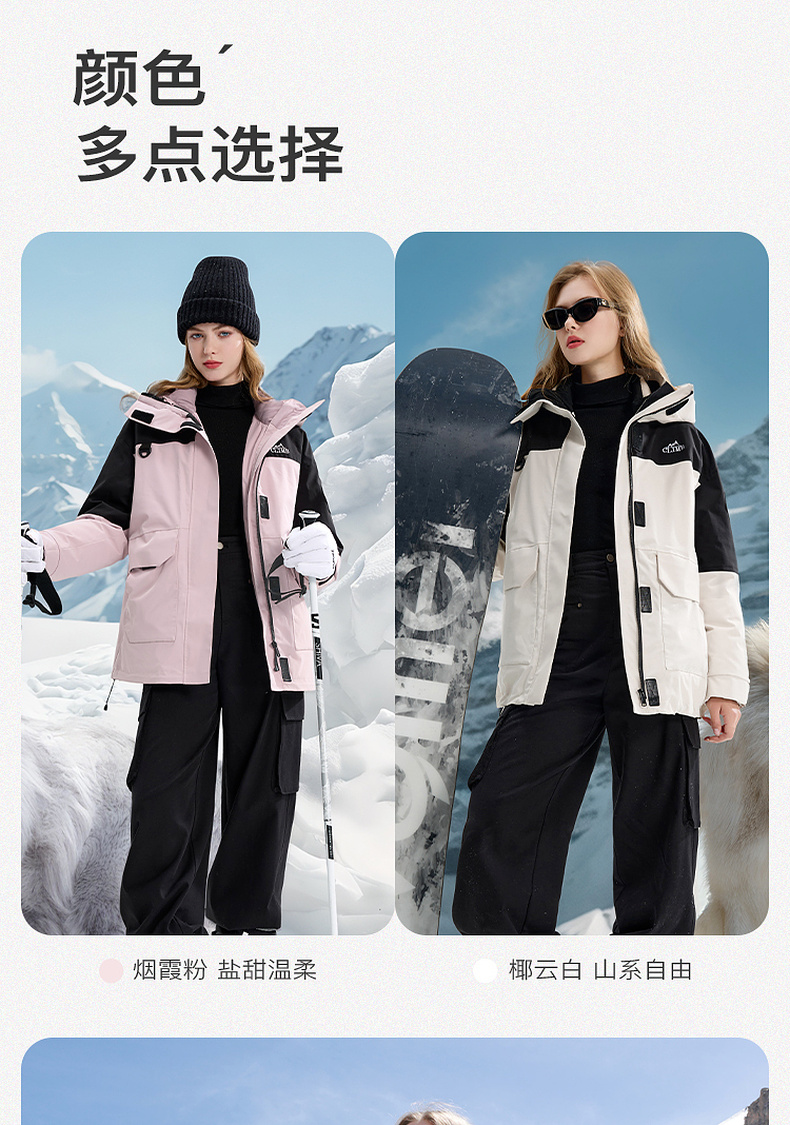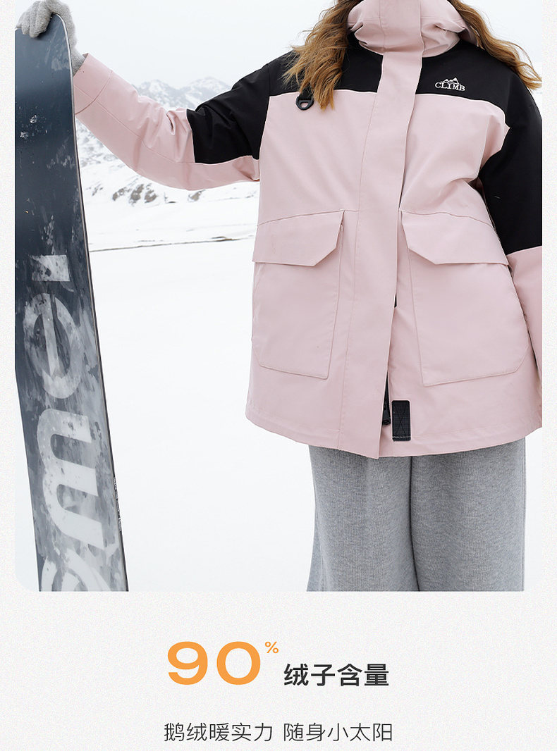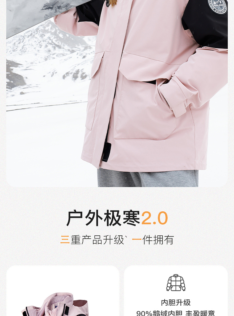 【一件抵3件】三彩冬季新款极寒鹅绒服两件套冲锋衣工装风三防羽绒服户外女M